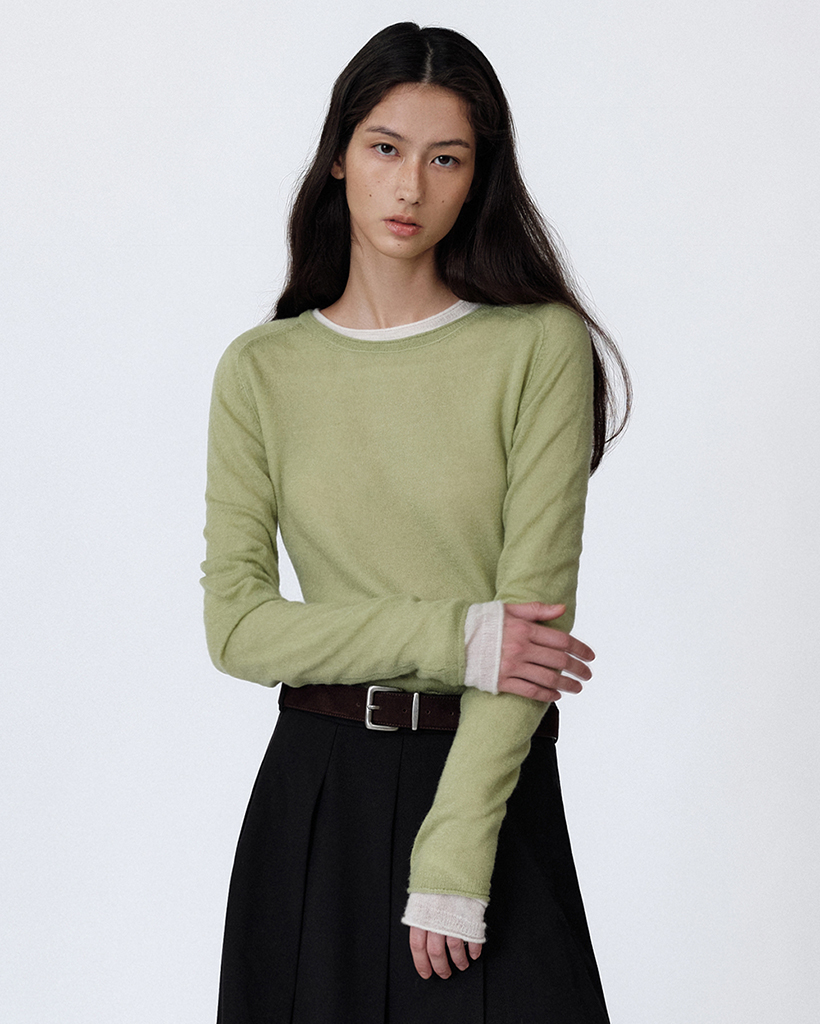 軽くてほのかに透けるシアーテクスチャーが魅力の Sona Sheer Wool Knit(ソナシアウールニット)です。