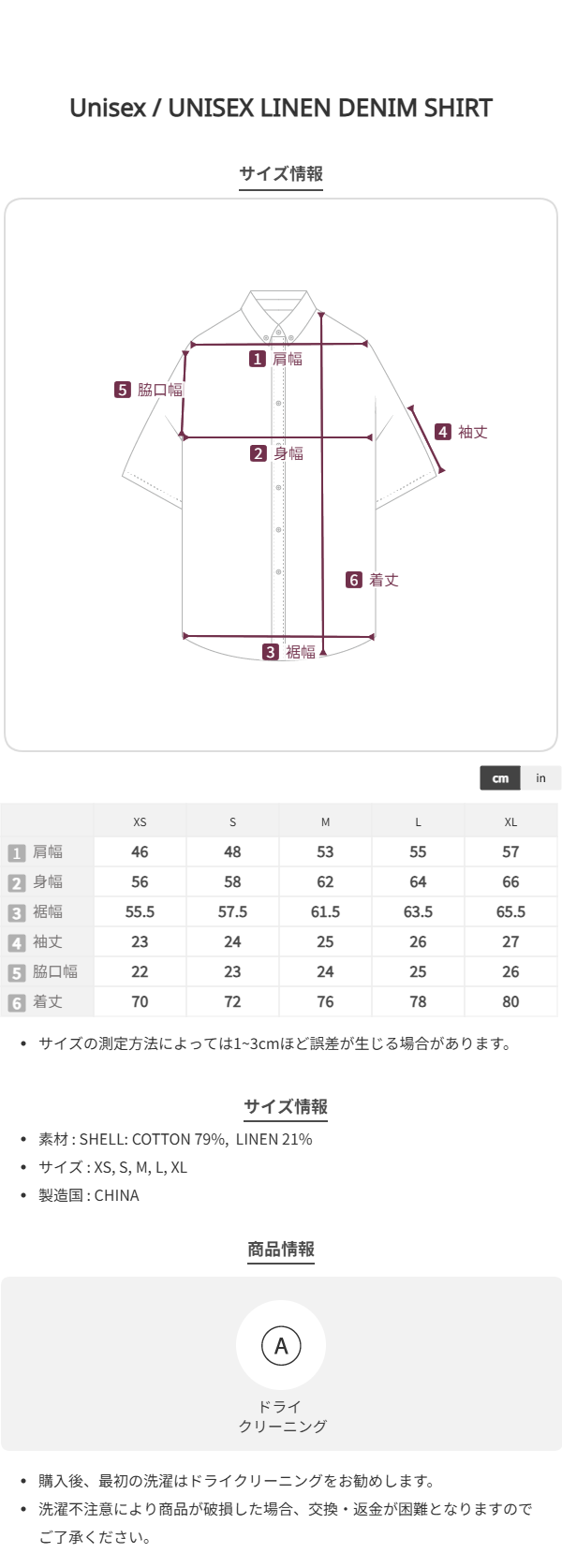 UNISEX LINEN DENIM SHIRT CLASSIC BLUE_M_UDSH6B129B2