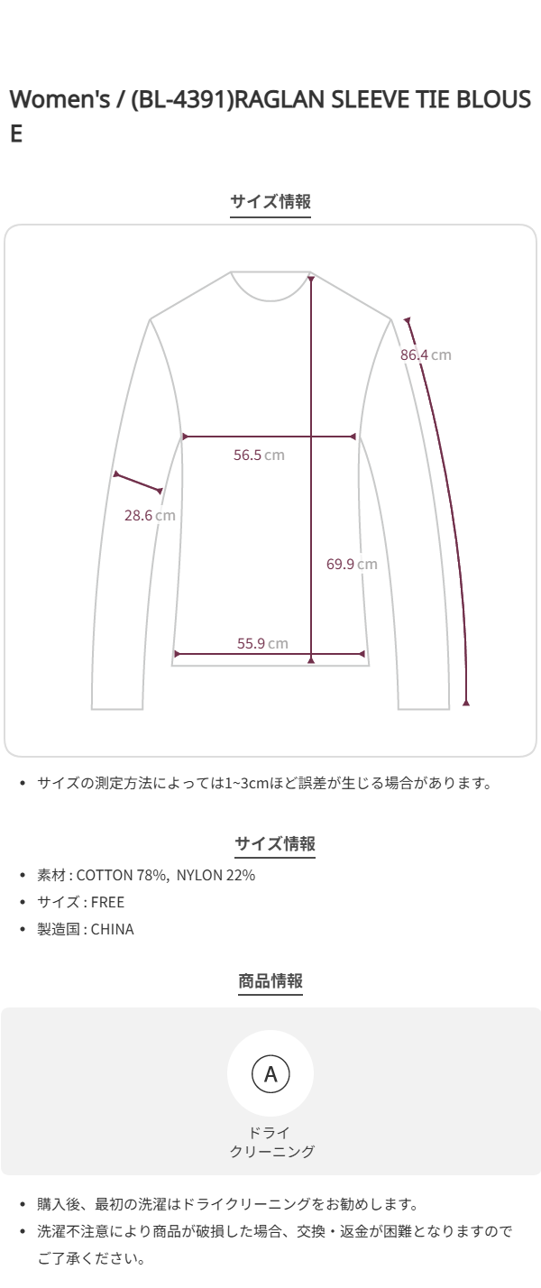(BL-4391)RAGLAN SLEEVE TIE BLOUSE