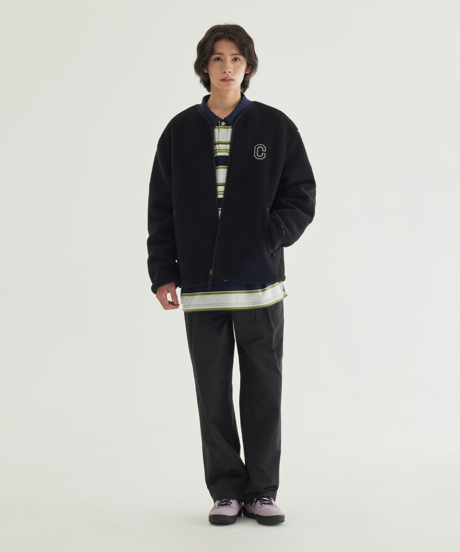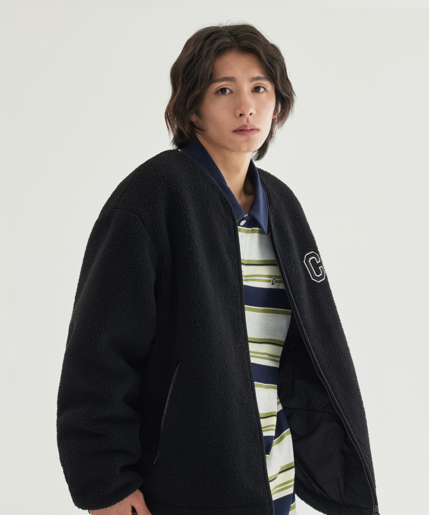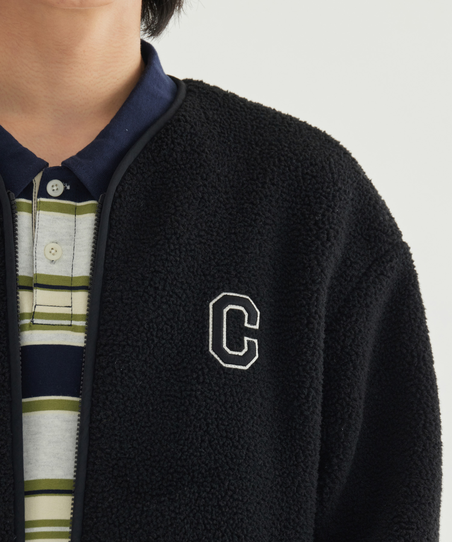 COLLARLESS SHERPA JACKET - Black