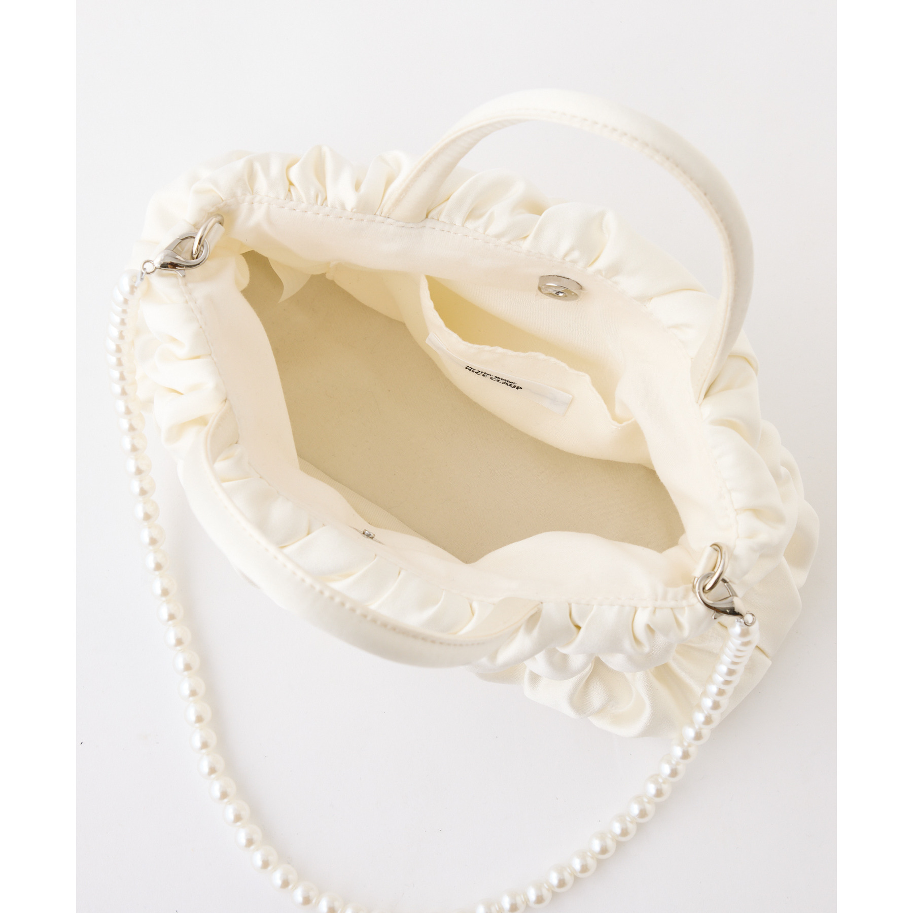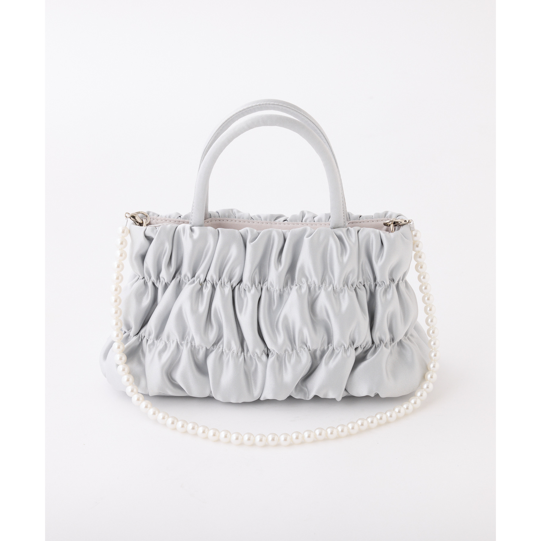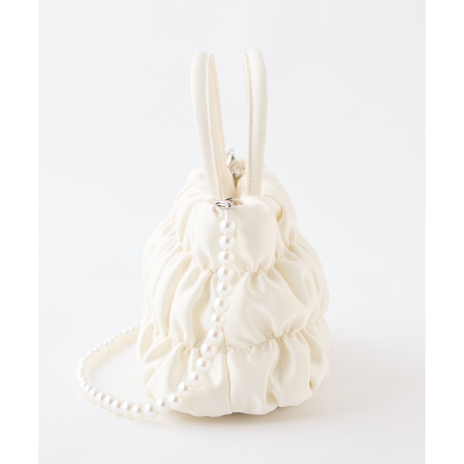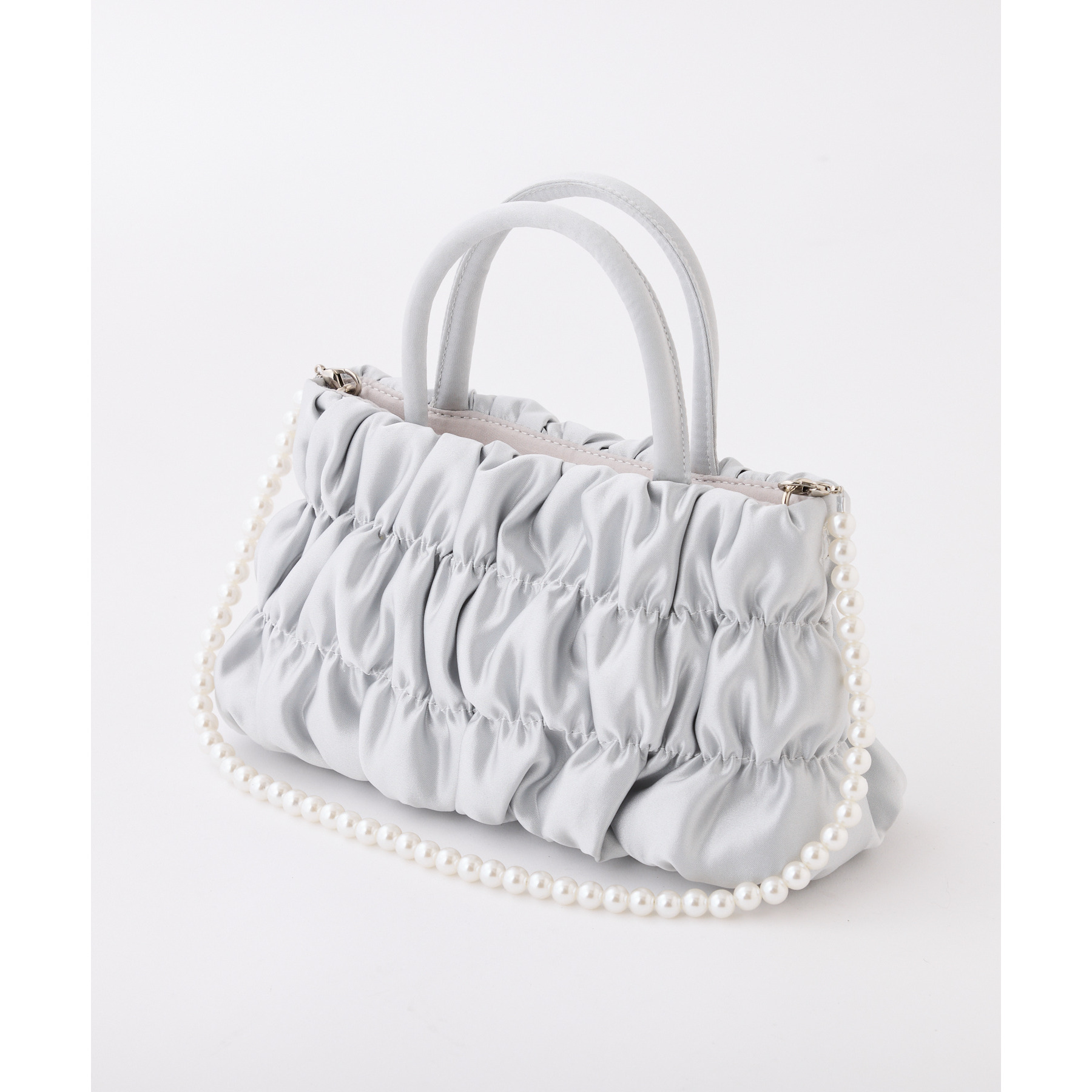 柔らかなシャーリングデザインに、華やかなパールショルダーがアクセントのバッグ