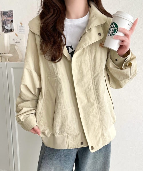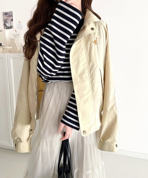 シンプルな中にも個性を薫らせるJaVaの胸刺繍ブルゾン。