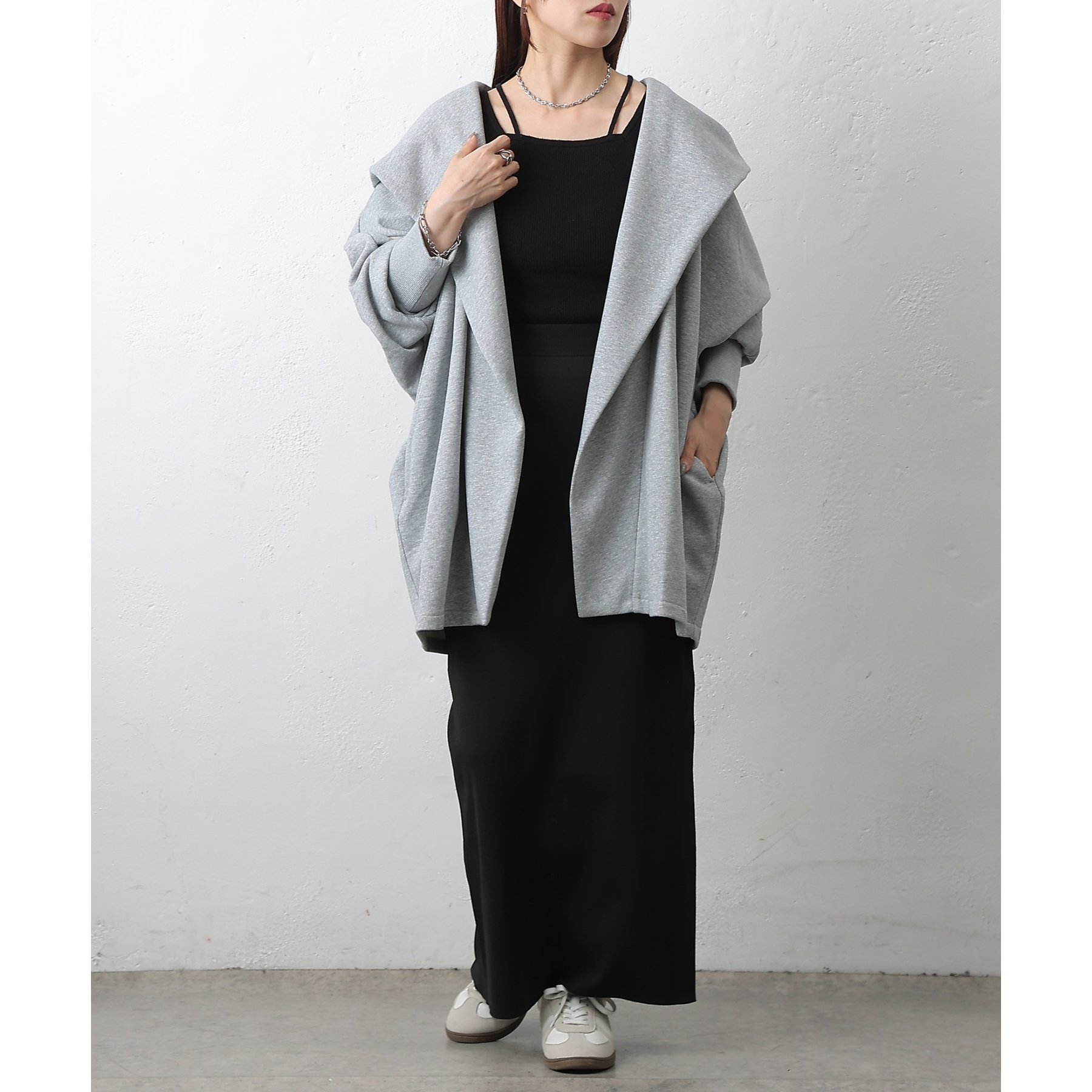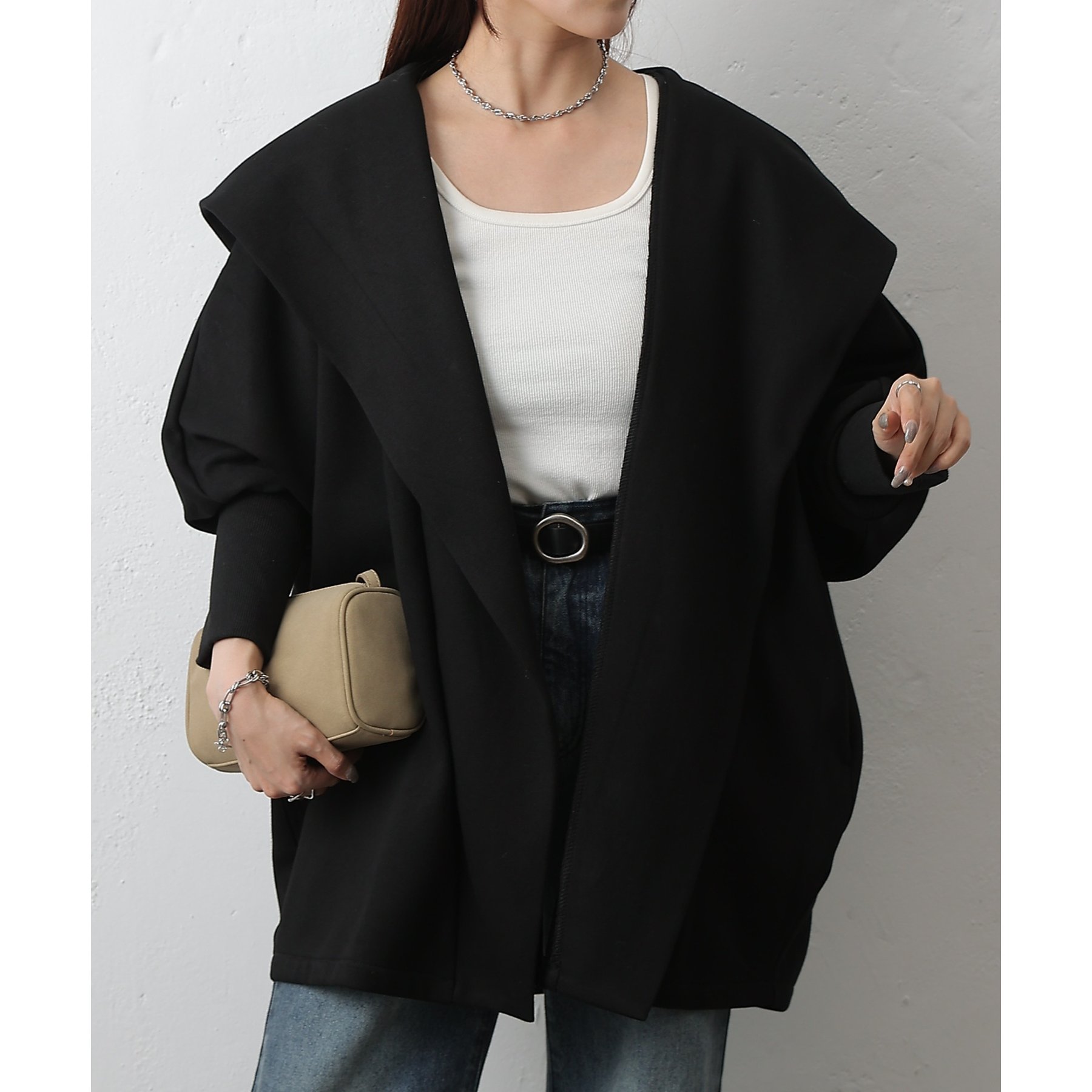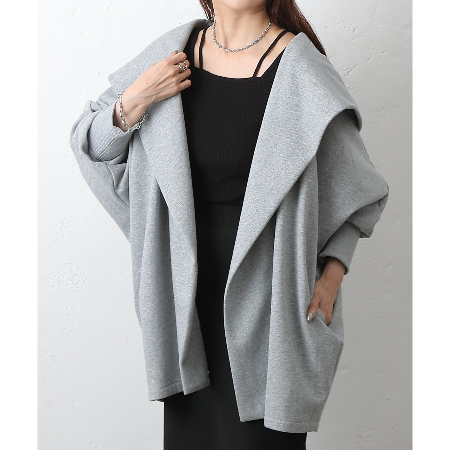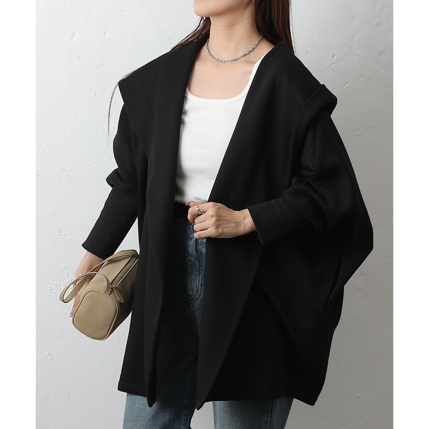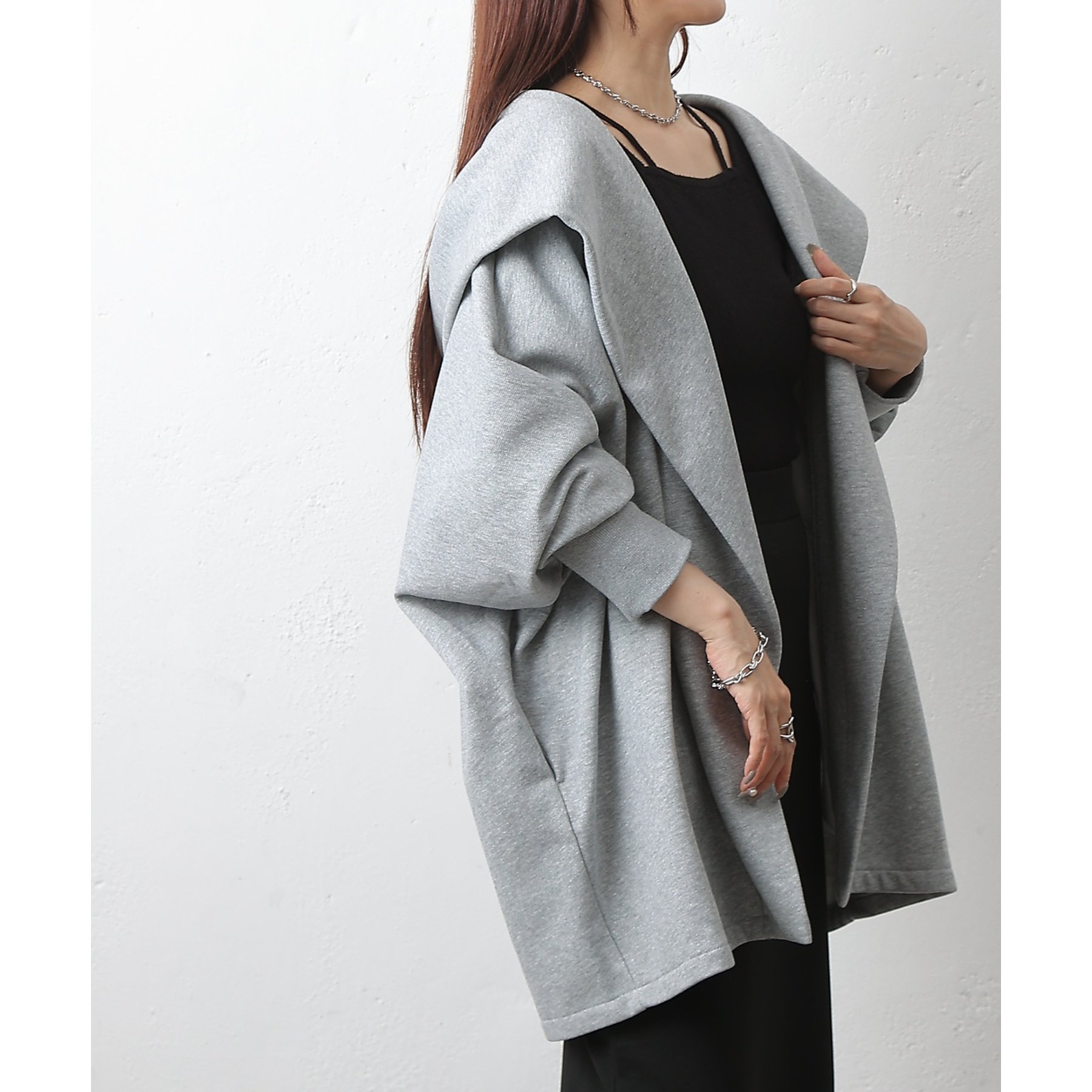 柔らかい素材でストレスフリーに着ていただける、1枚持っているととても便利なアウターです。