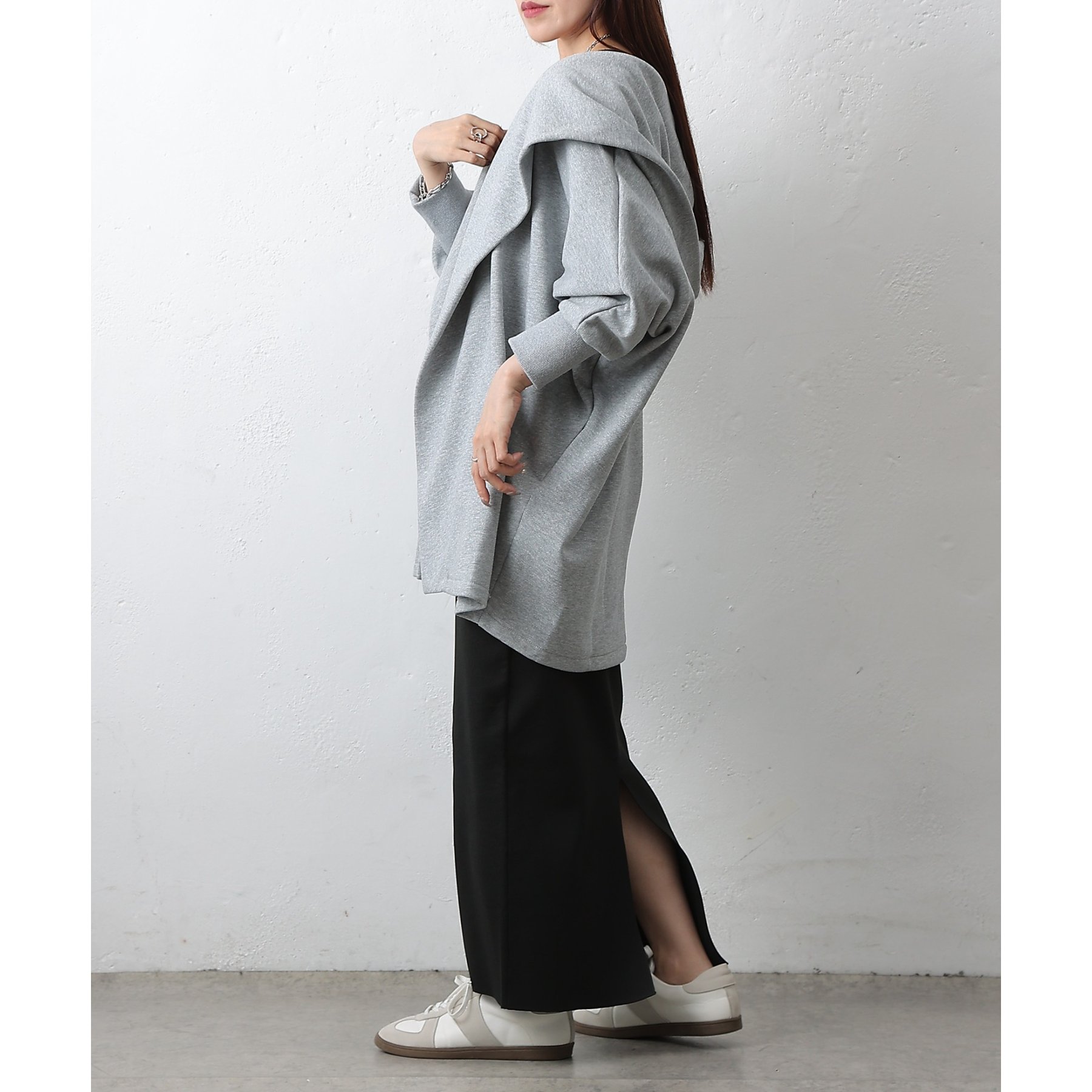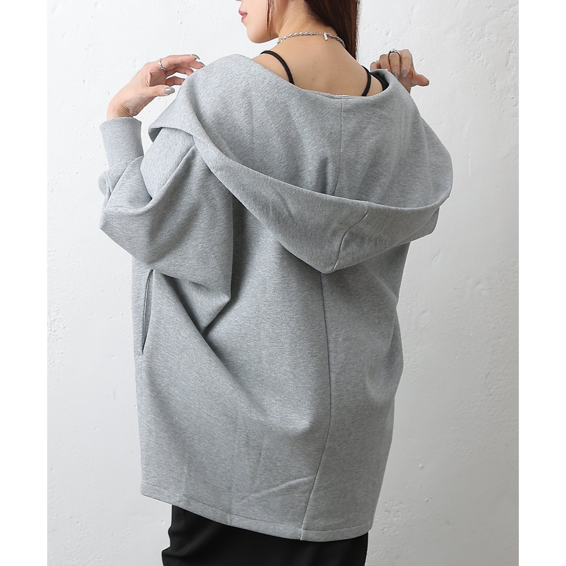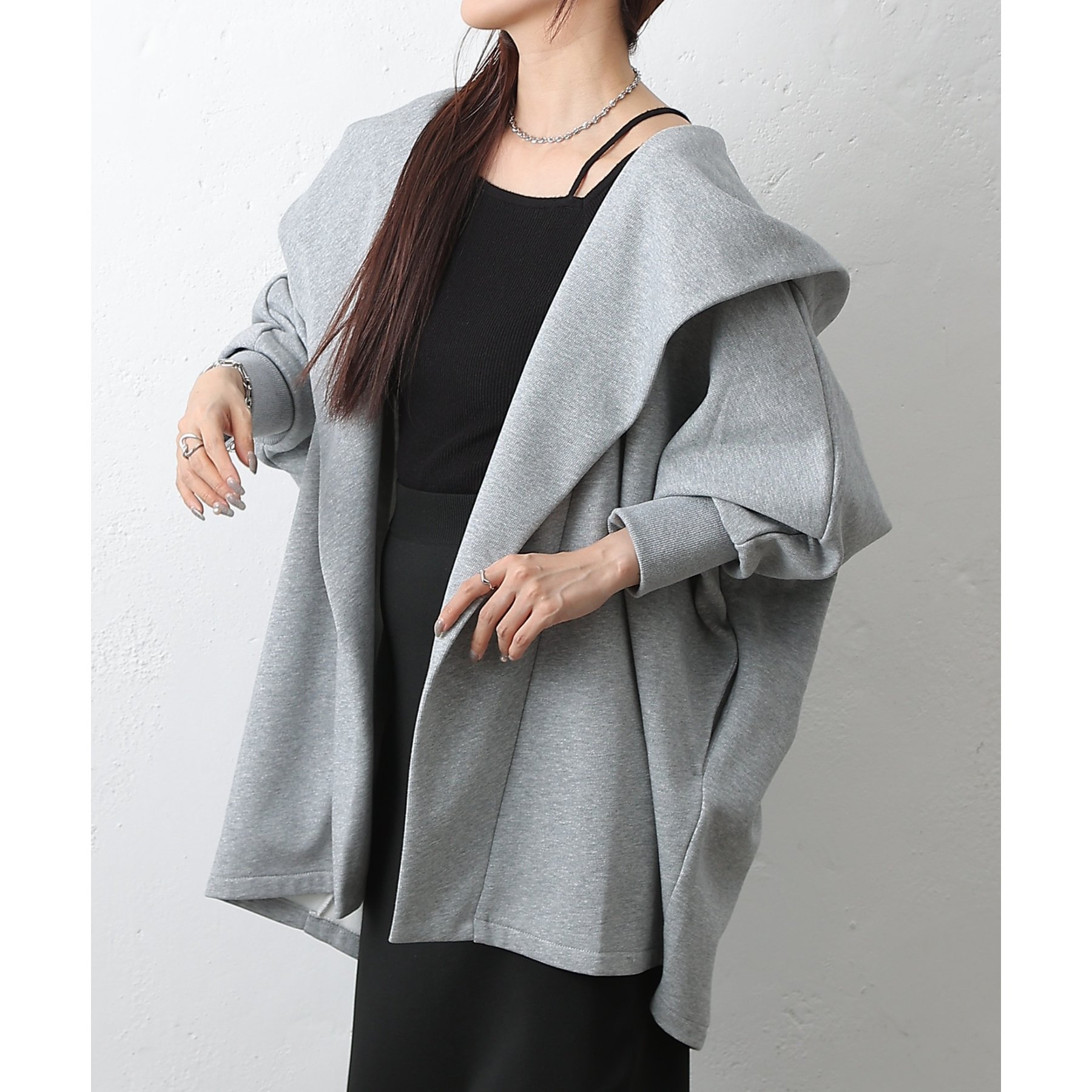 裏毛フリースのフード付きドルマンガウンです。