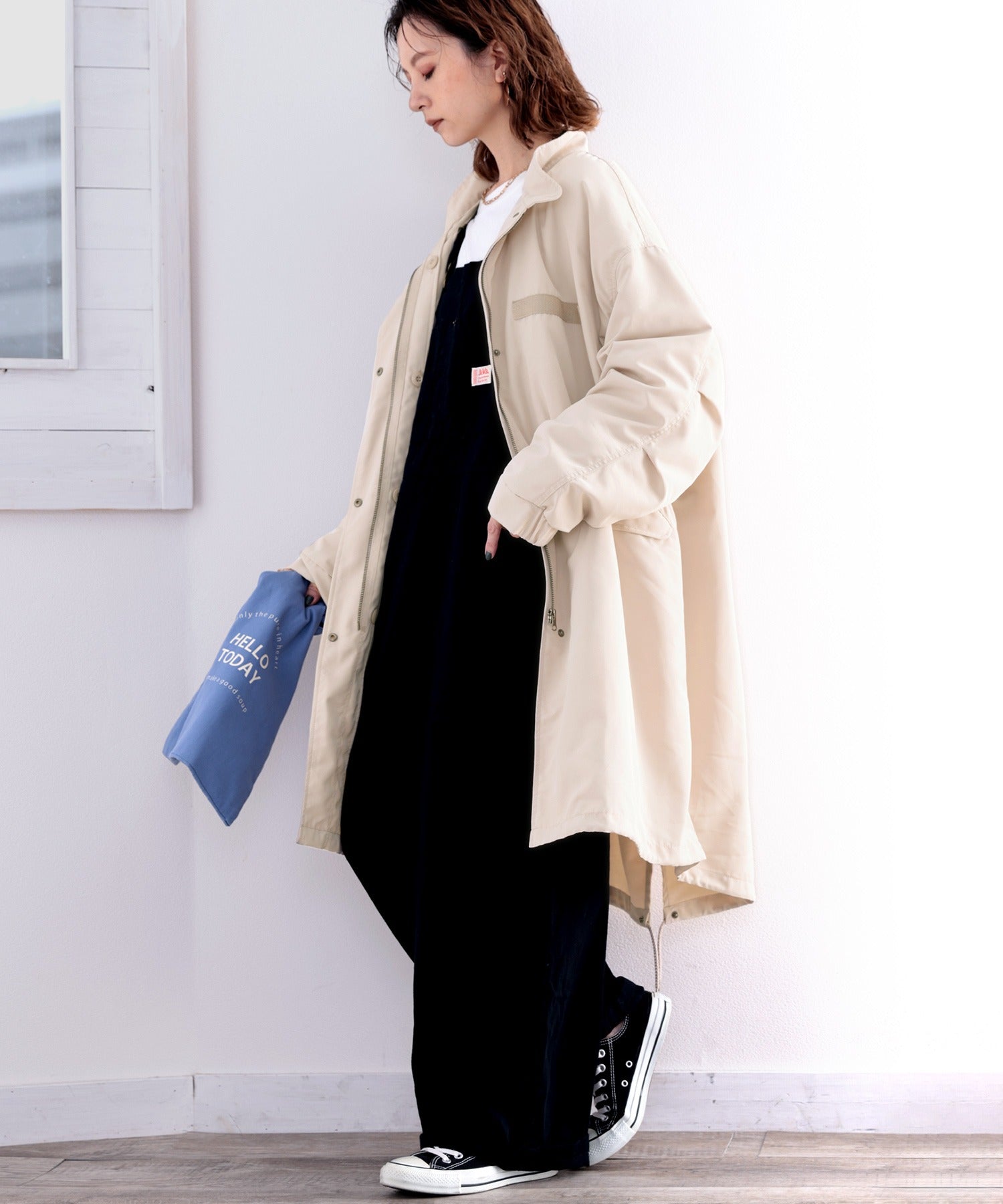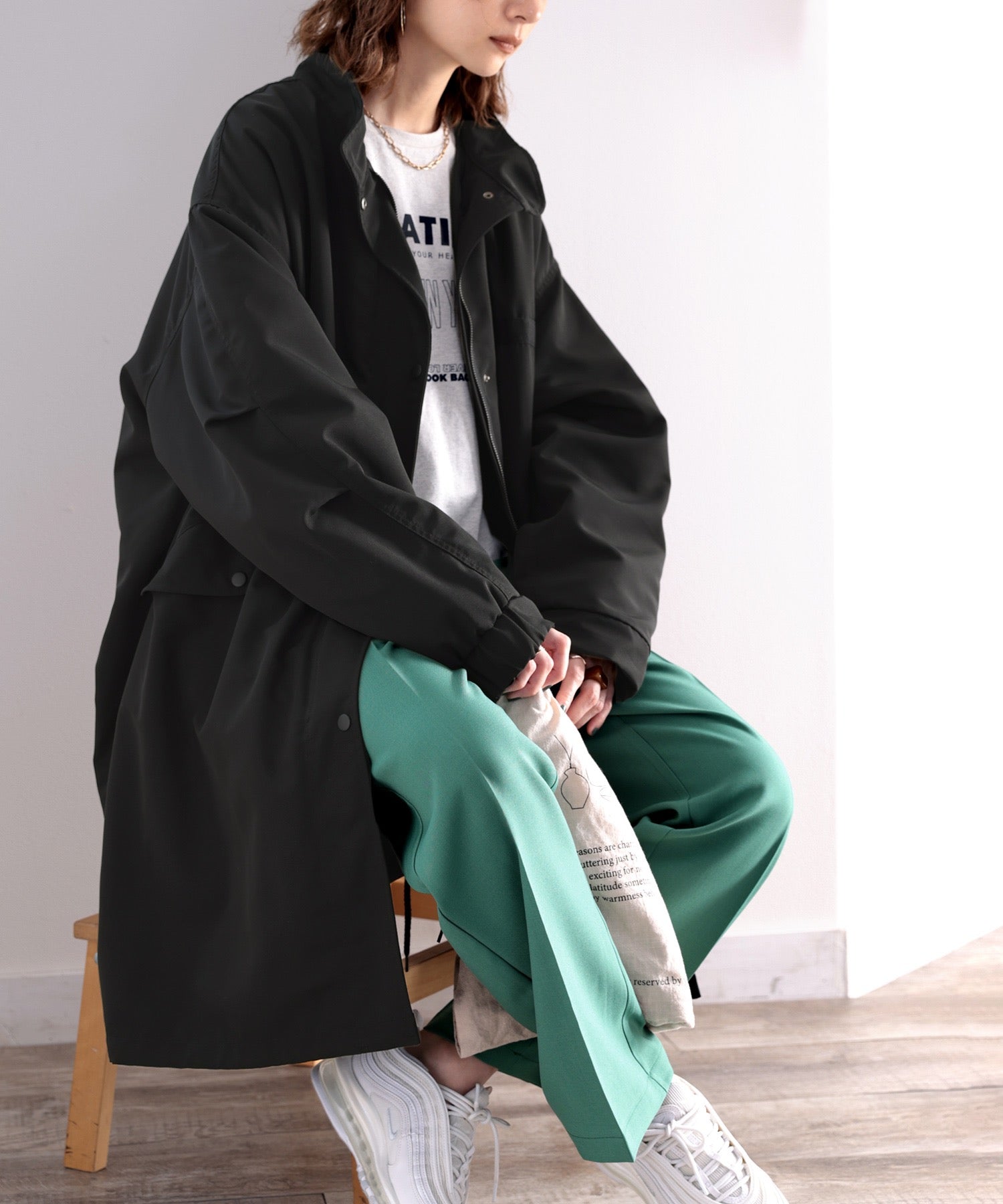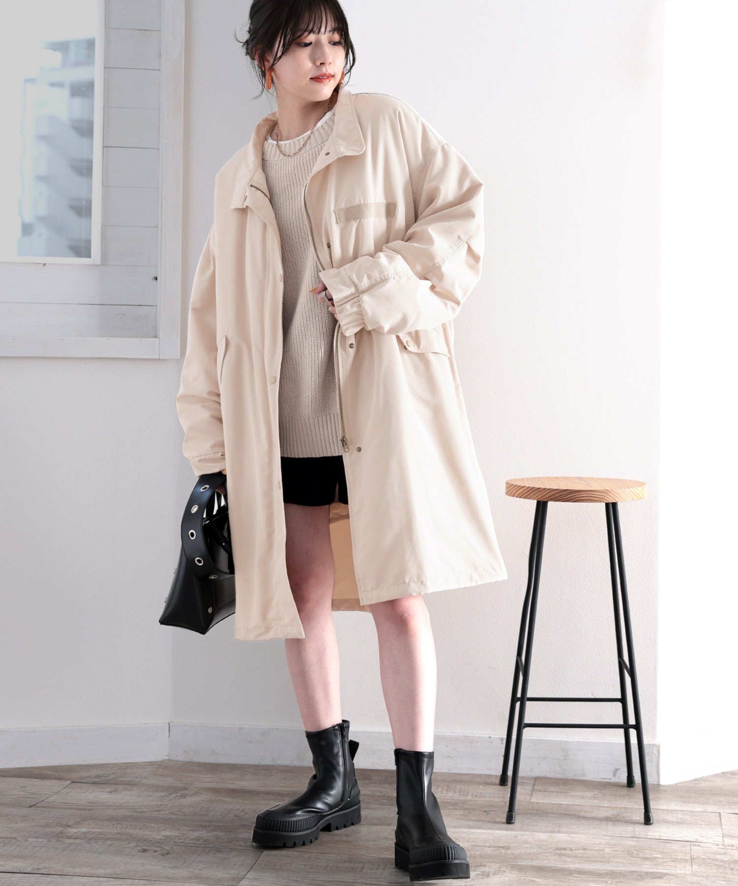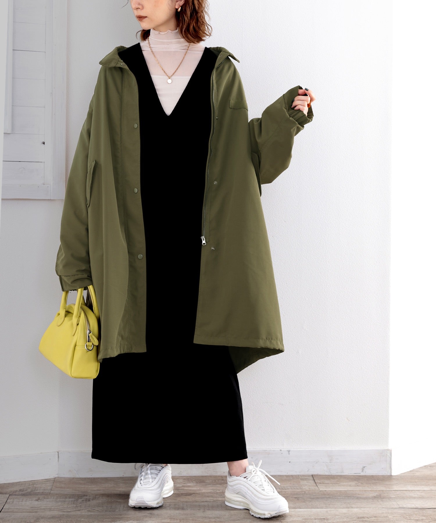 ミリタリーっぽさもありながら、女性らしい着こなしができる1着。