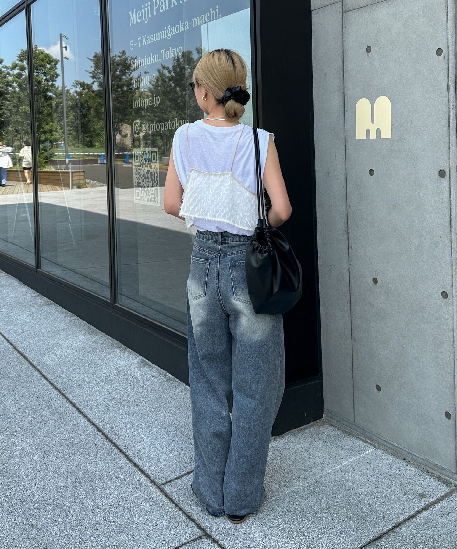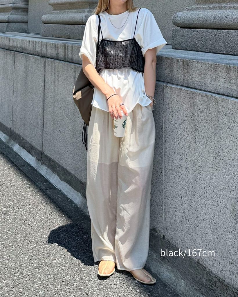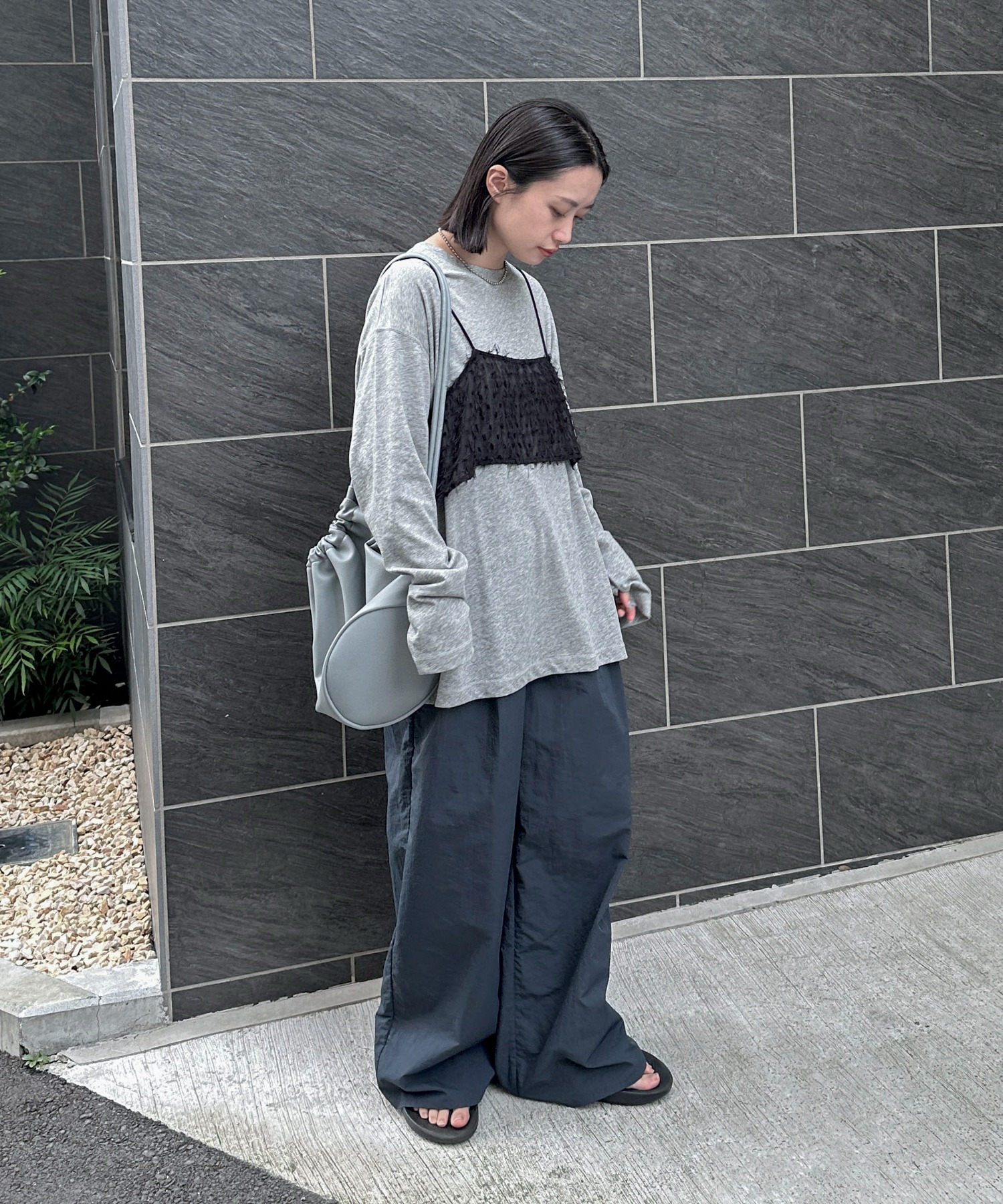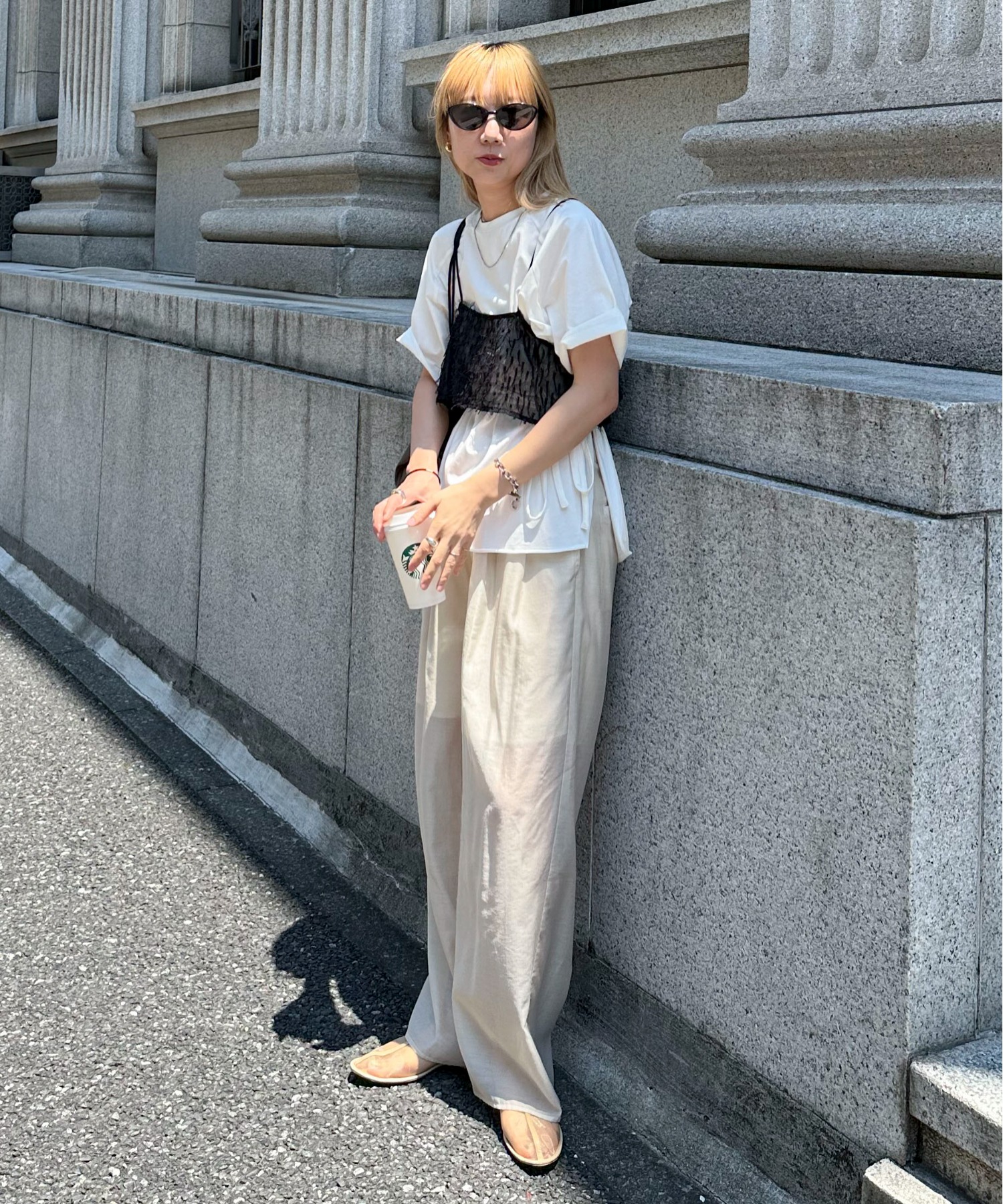 締め付け感のないふんわりとした涼し気なシルエットに華奢なサテン時の丸紐のコントラストがポイント◎