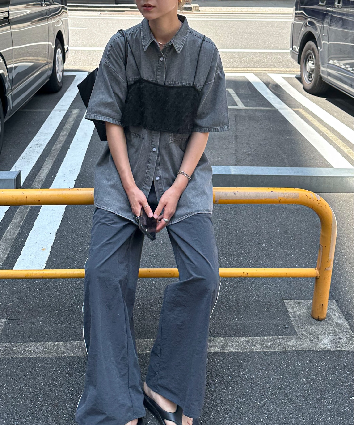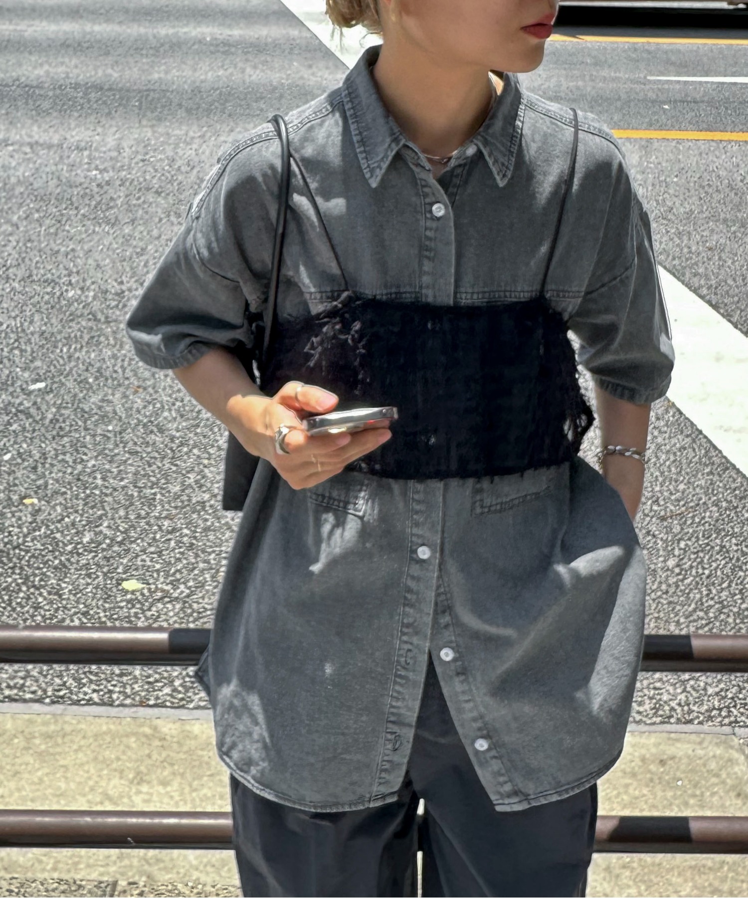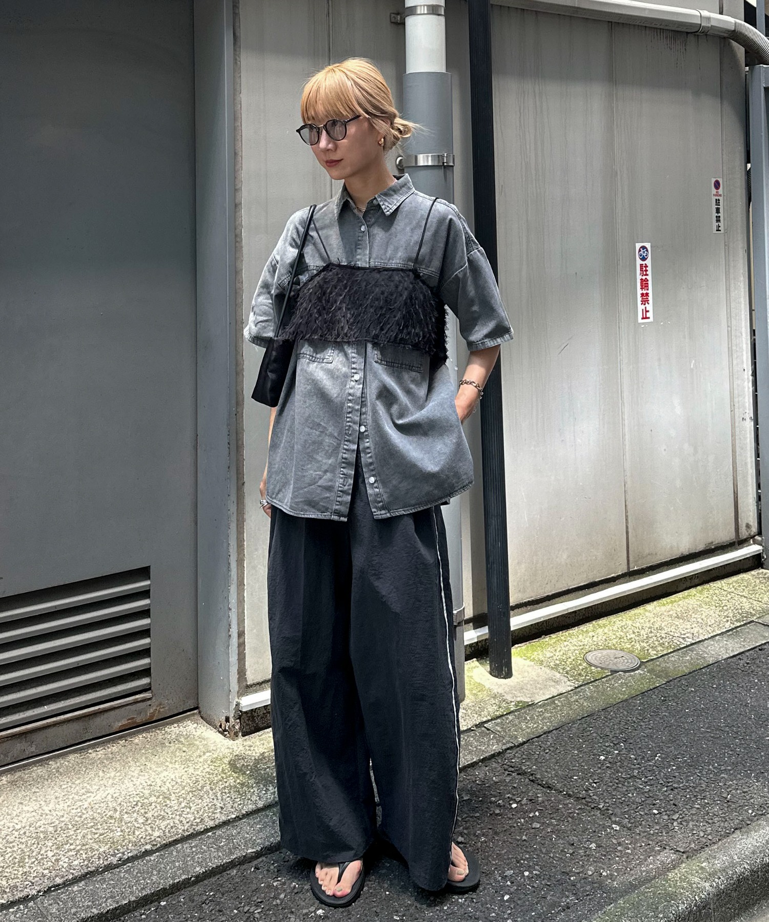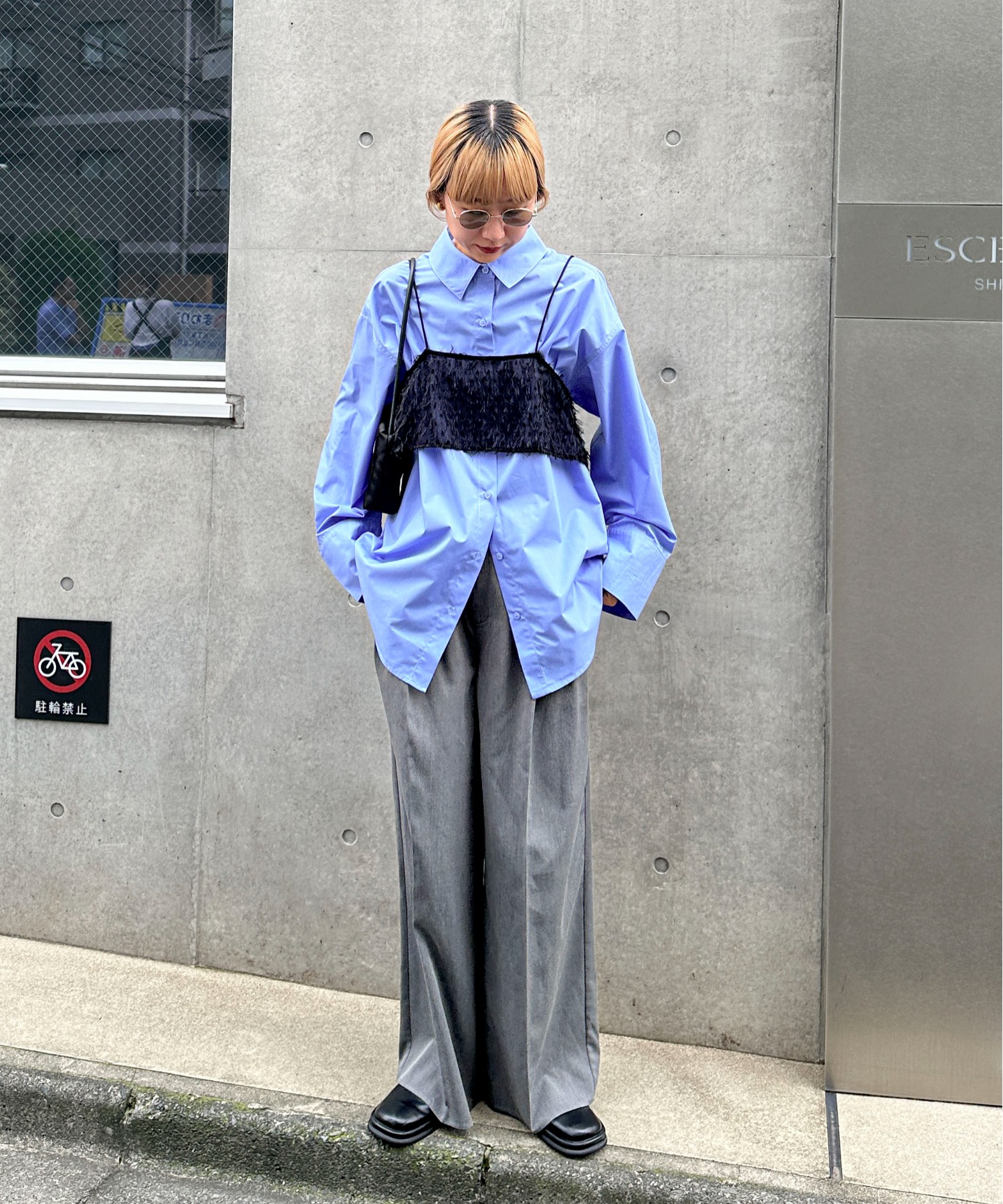 セットでの着用も可能な同素材のオーバーシャツと合わせるのも素敵でおススメです。