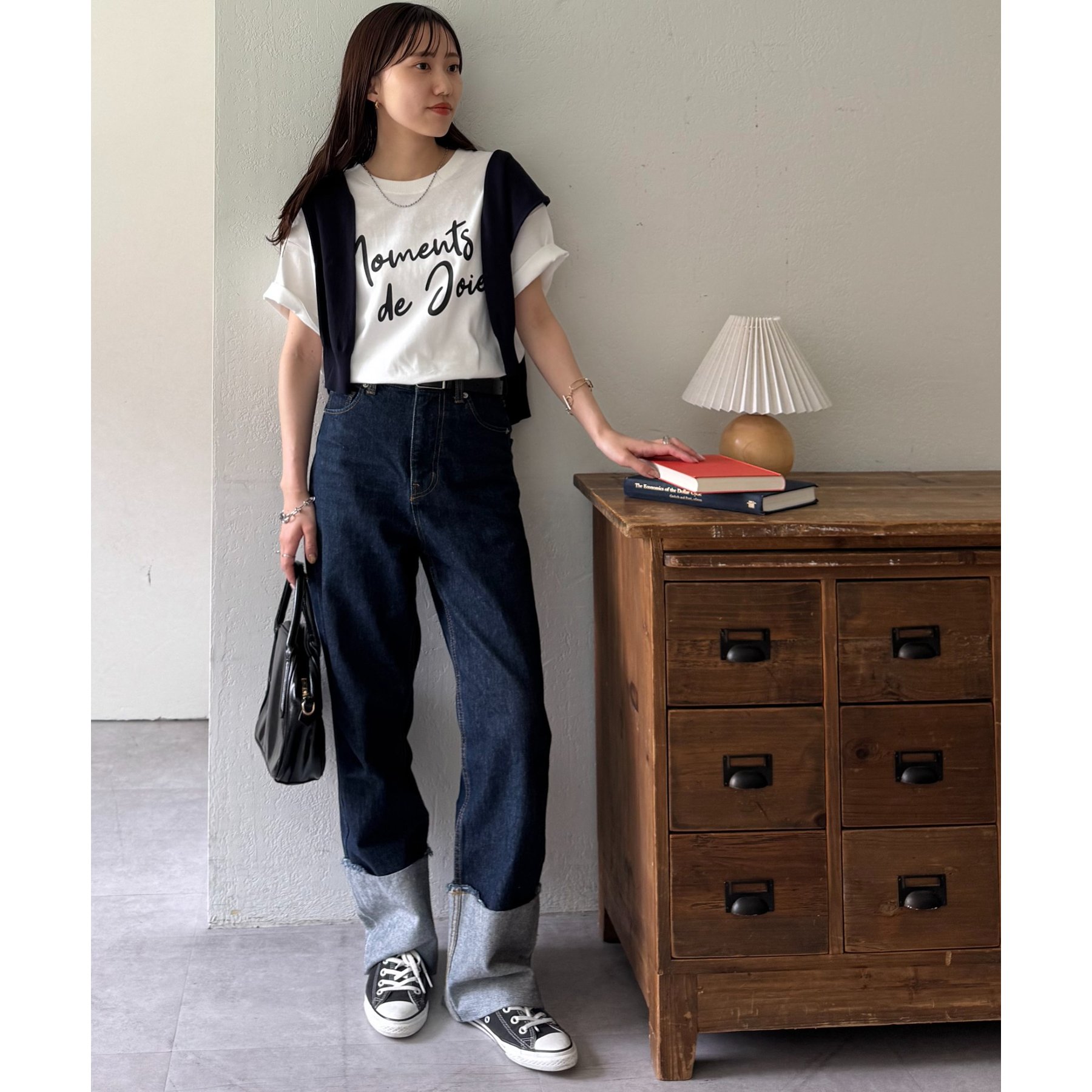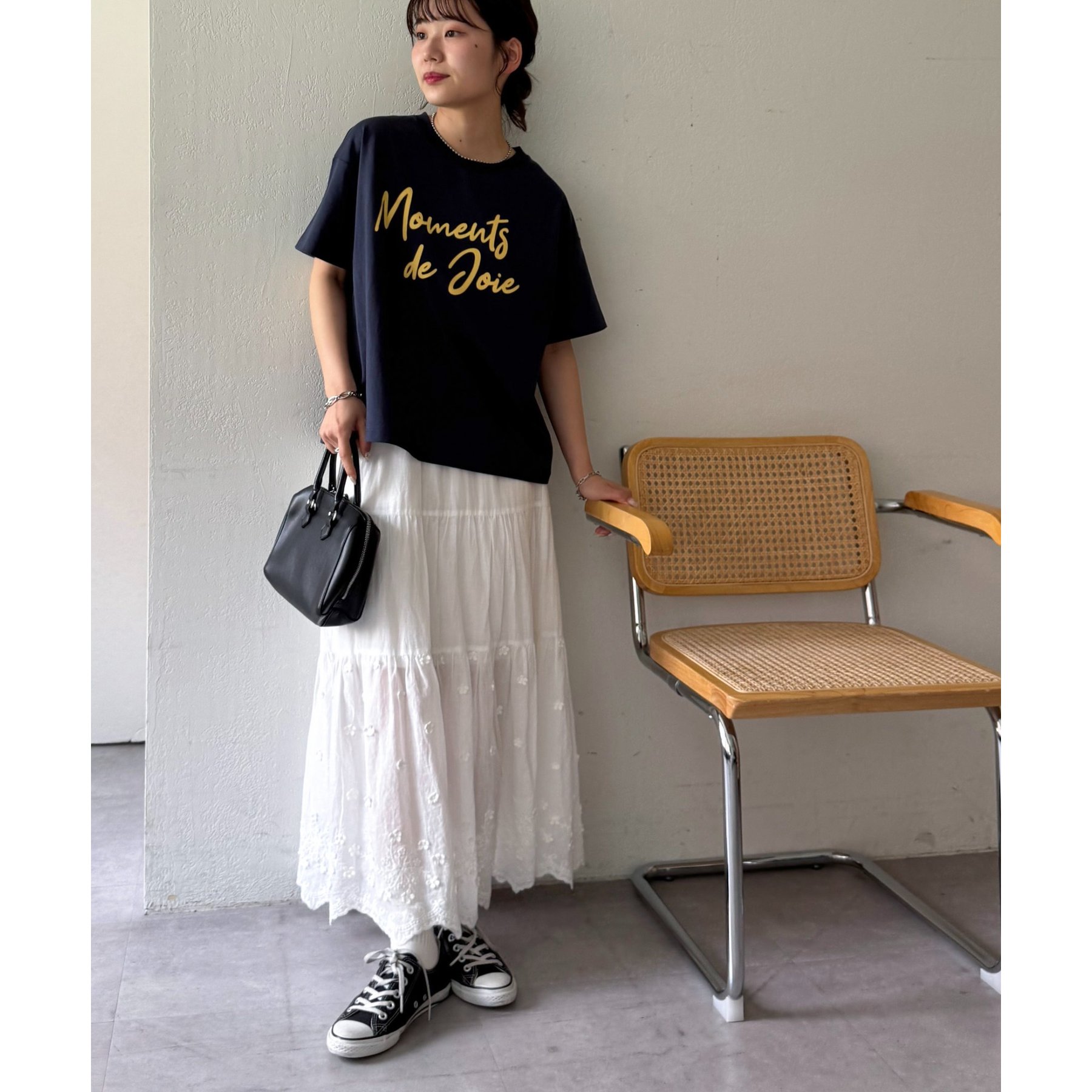 フェミニンなティアードスカートなどとの相性もよく、合わせるボトムスを選びません。