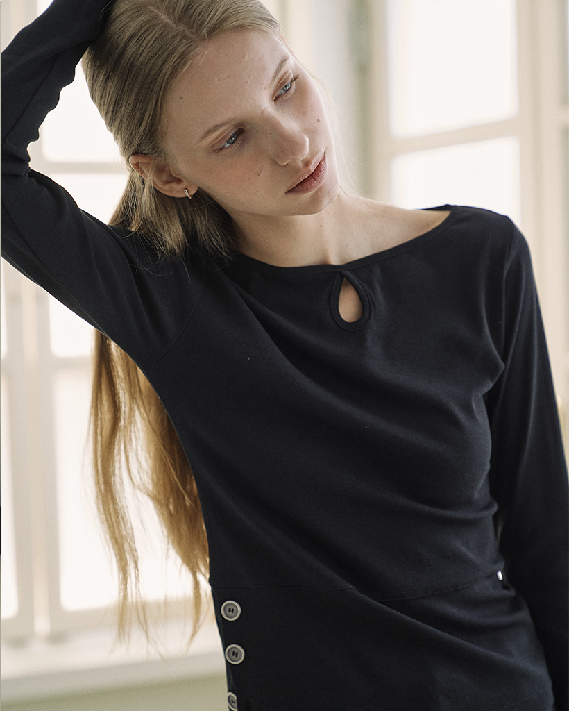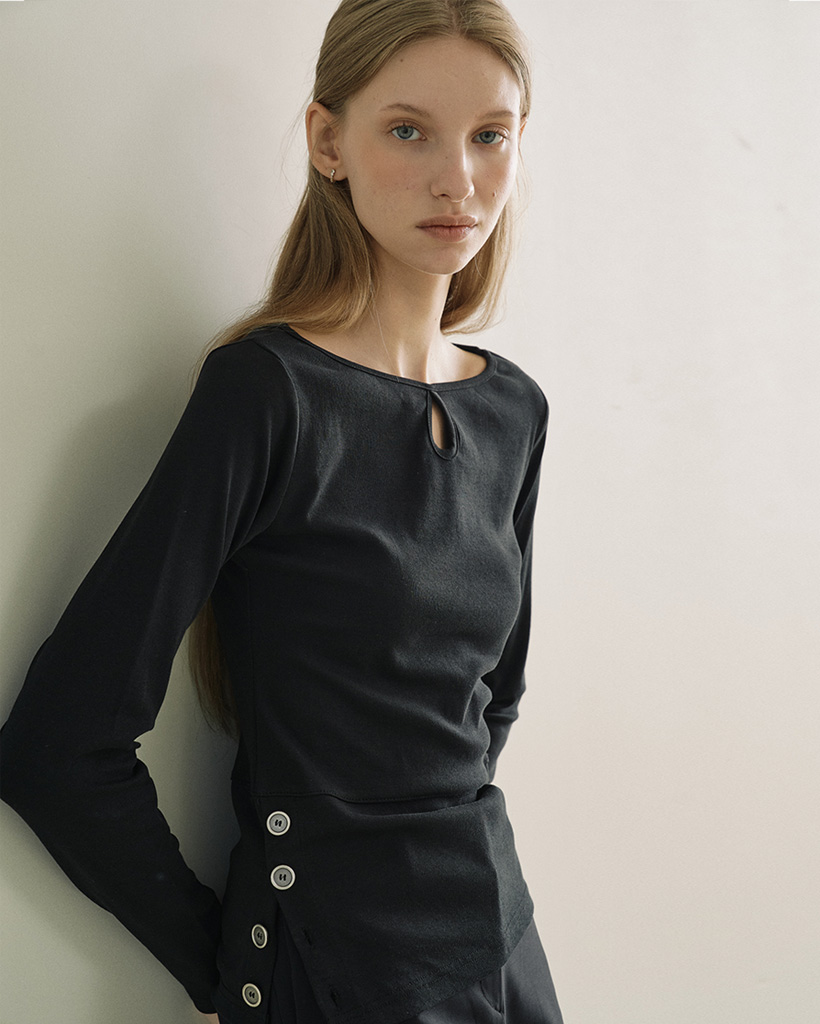 Side button hole t-shirt black