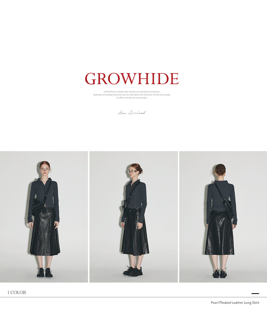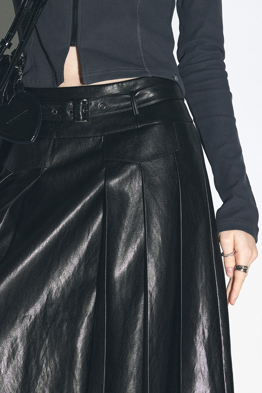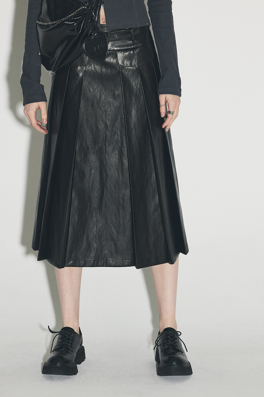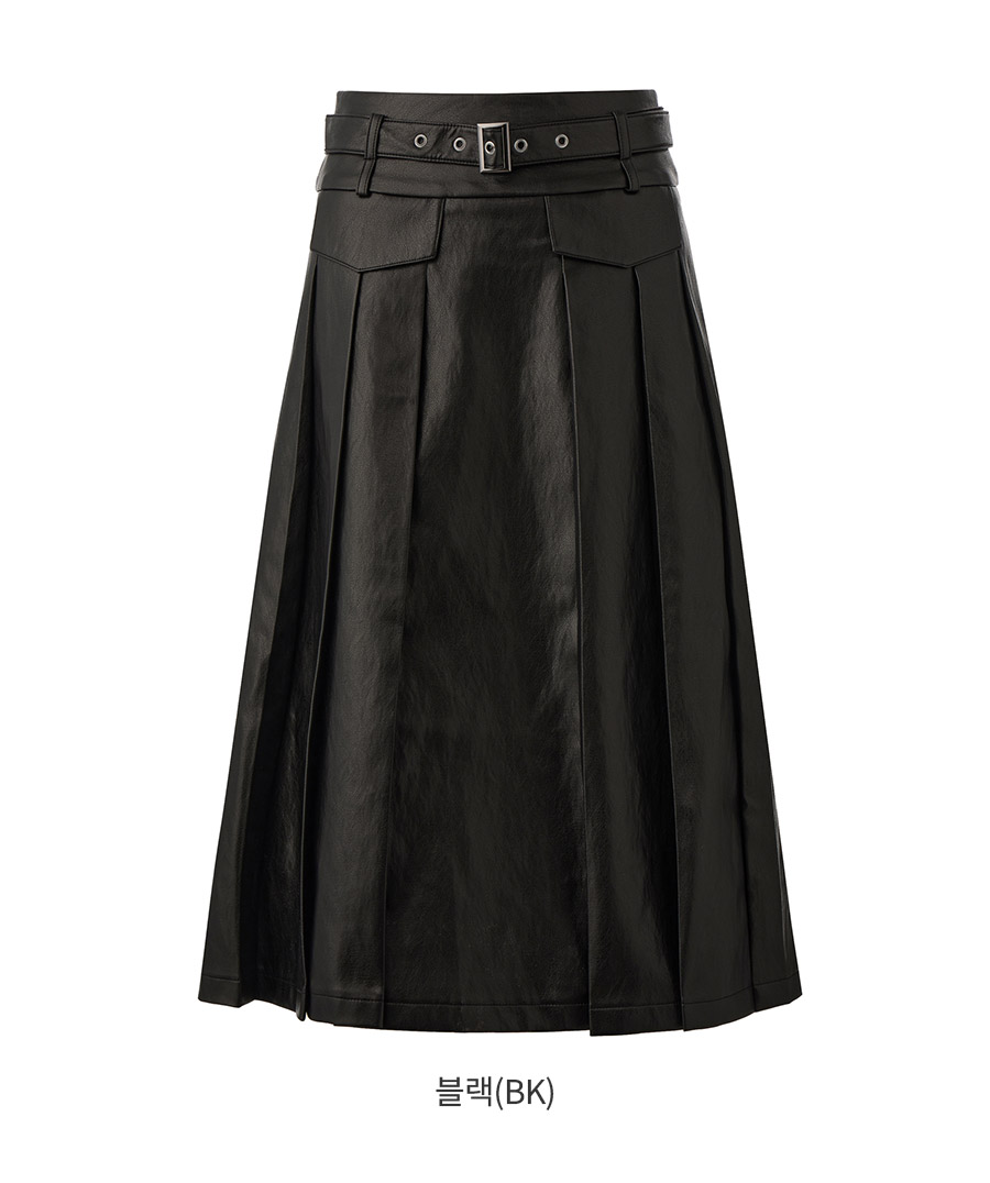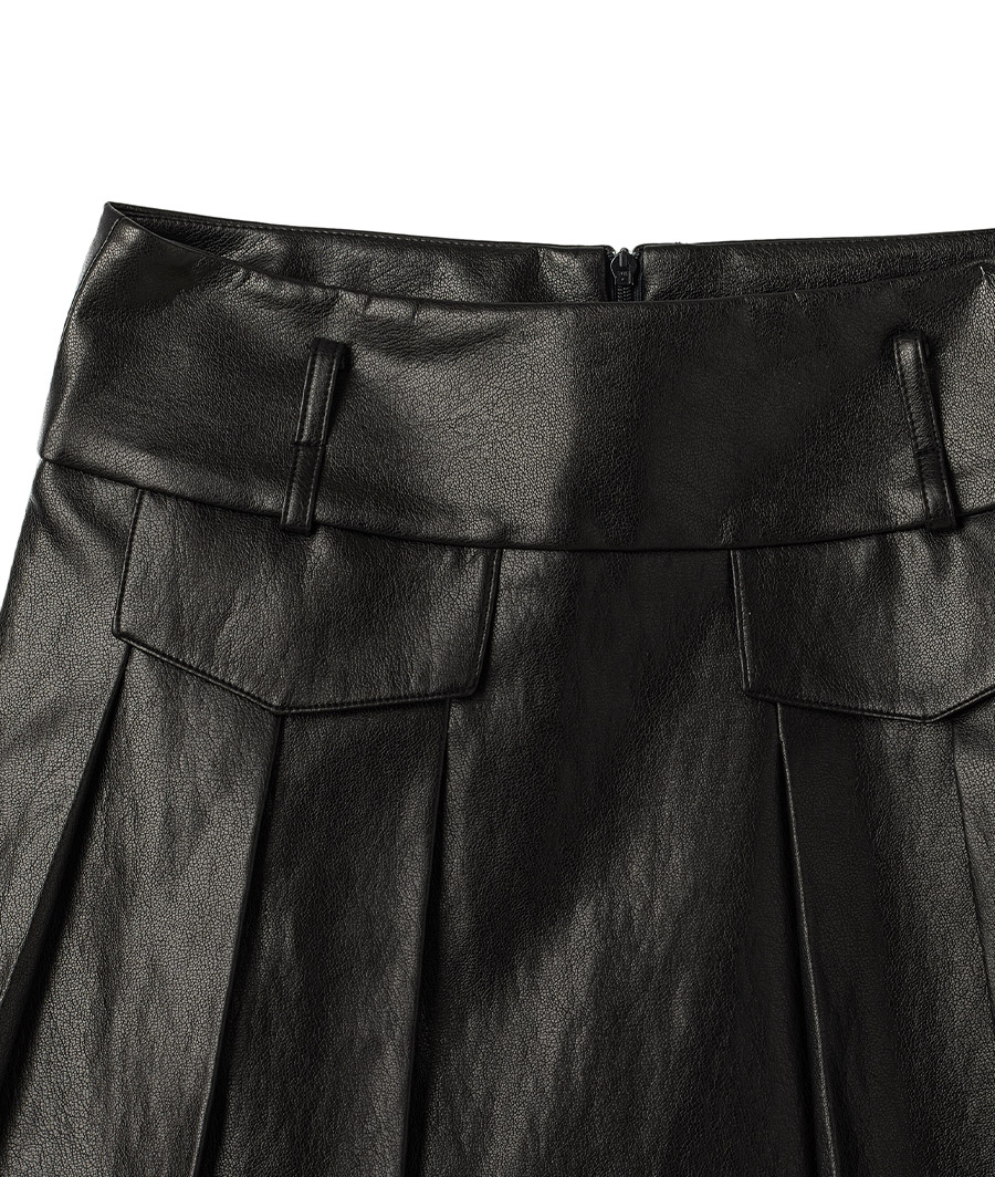 [Influencer pick] [GROWHIDE] Pearl Pleats Vegan Leather Long Skirt