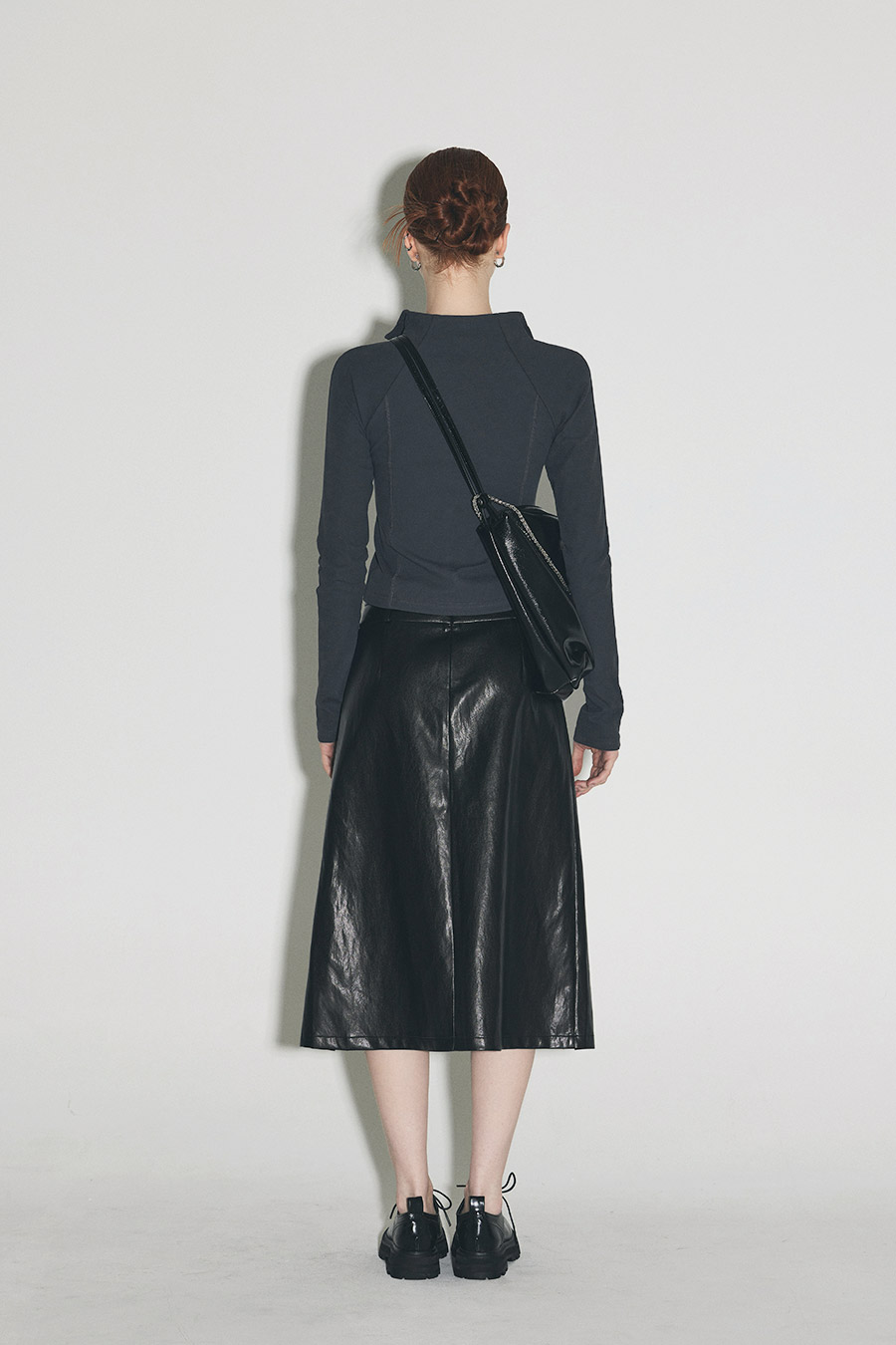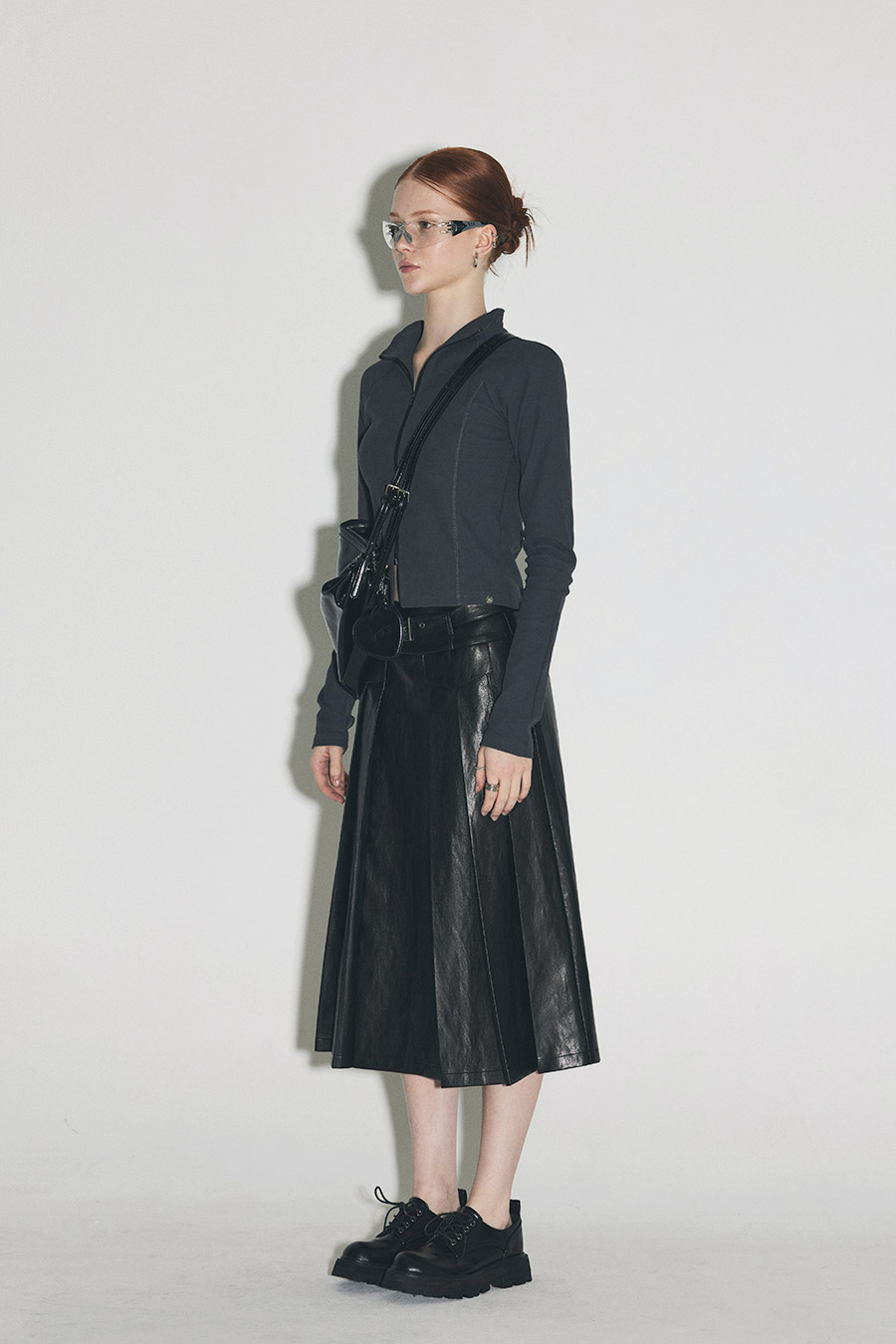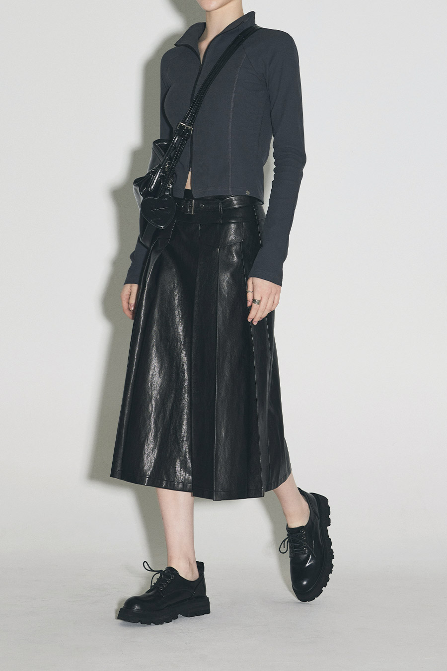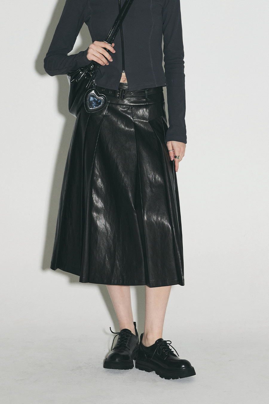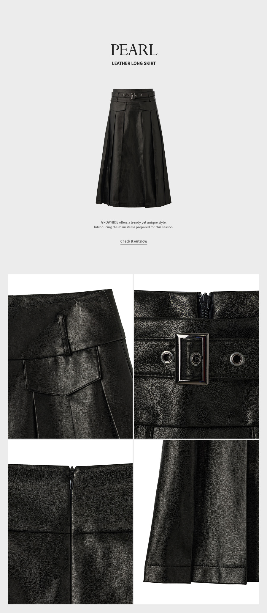 [Influencer pick] [GROWHIDE] Pearl Pleats Vegan Leather Long Skirt