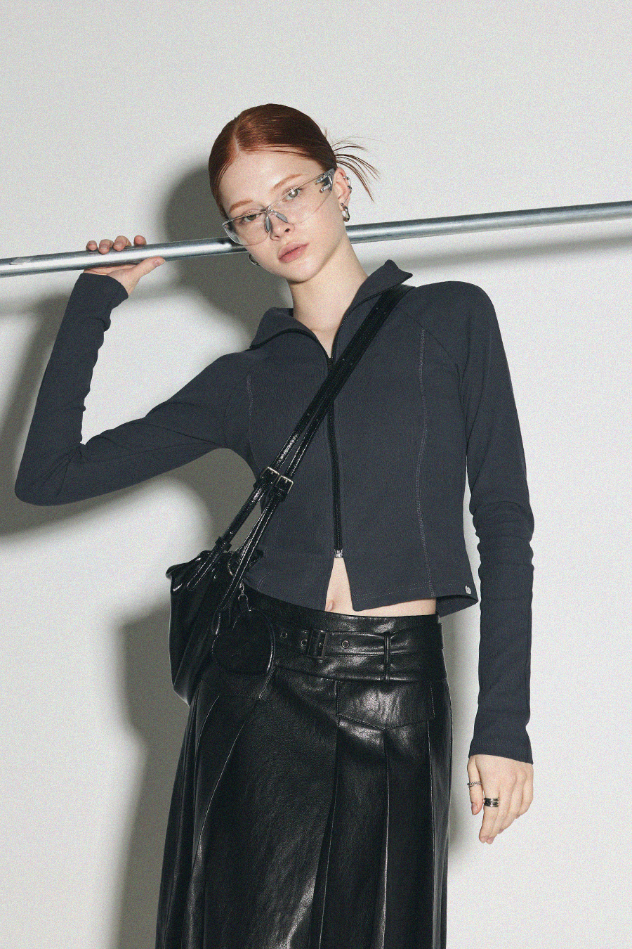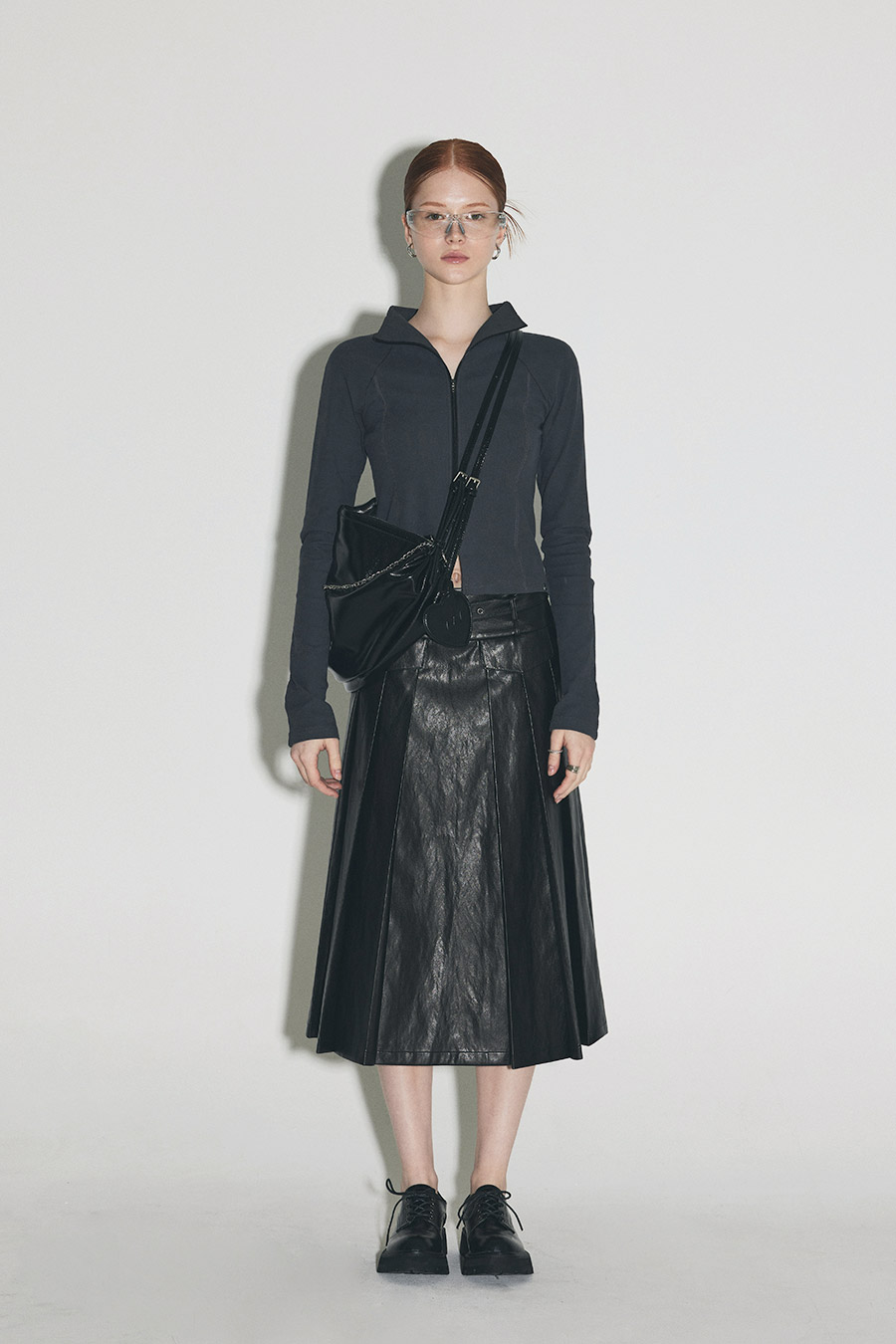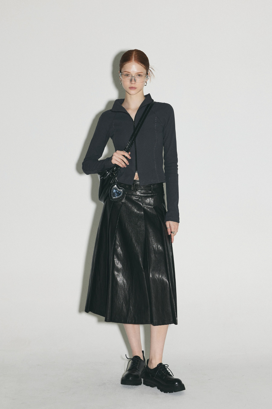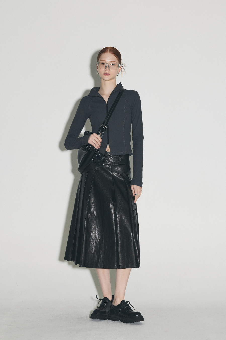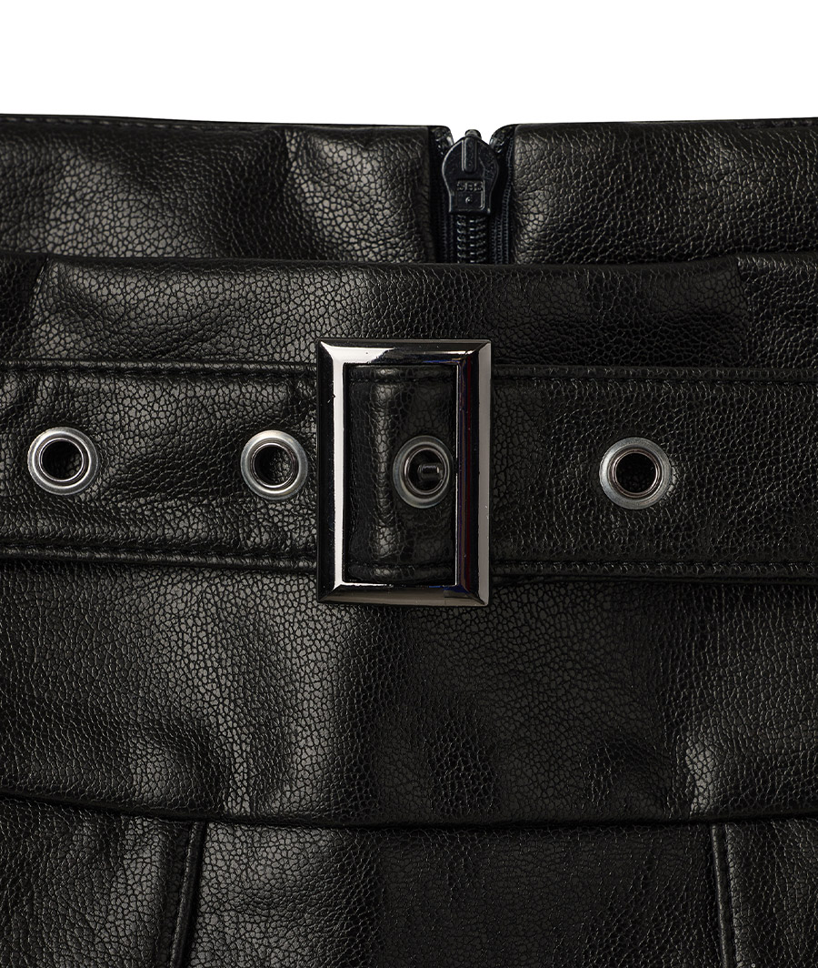 [Influencer pick] [GROWHIDE] Pearl Pleats Vegan Leather Long Skirt