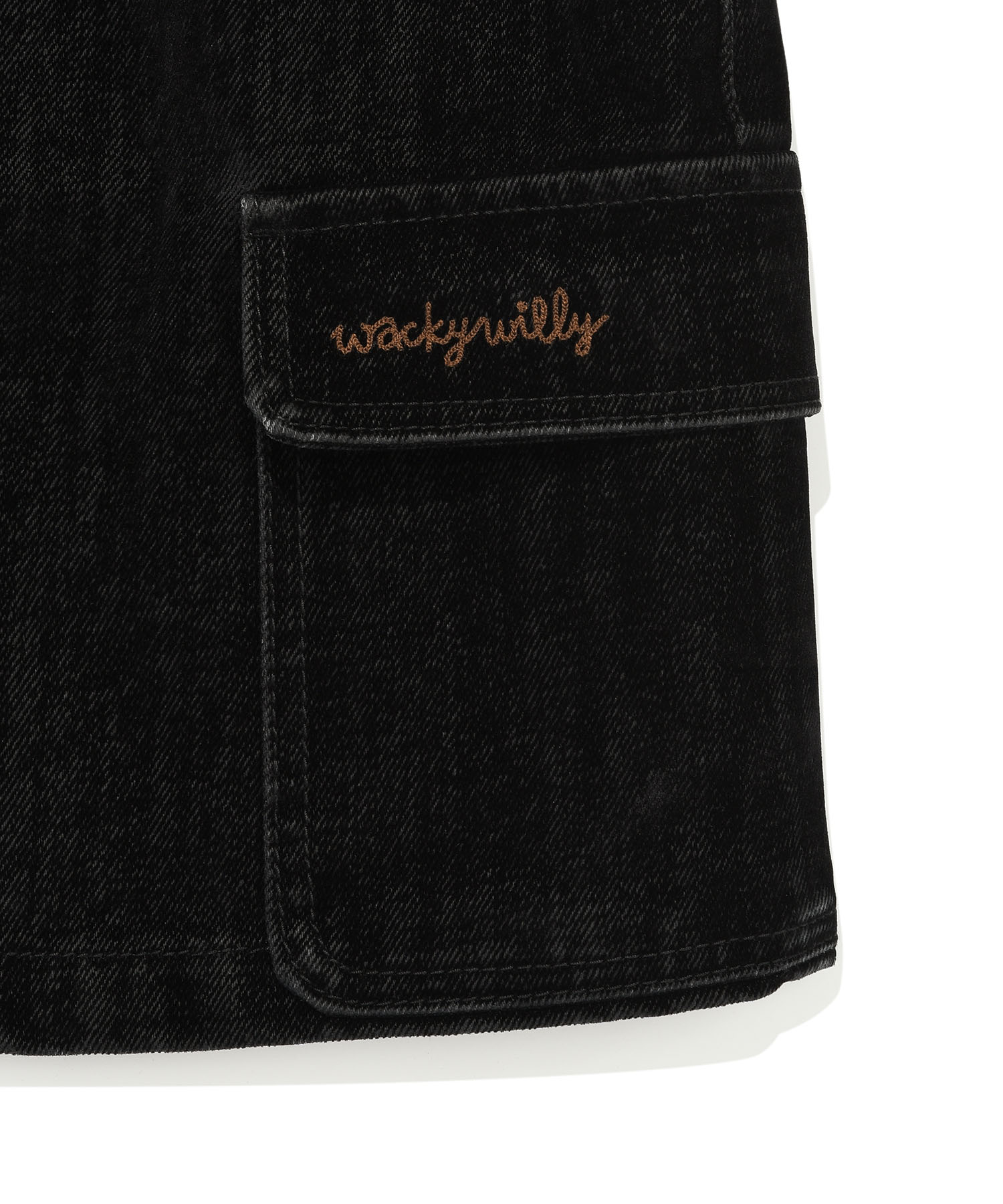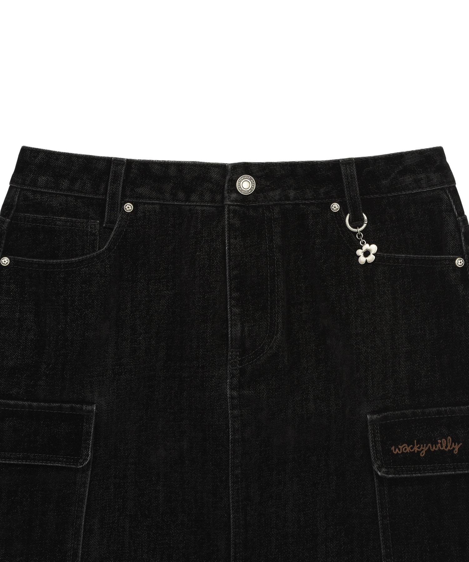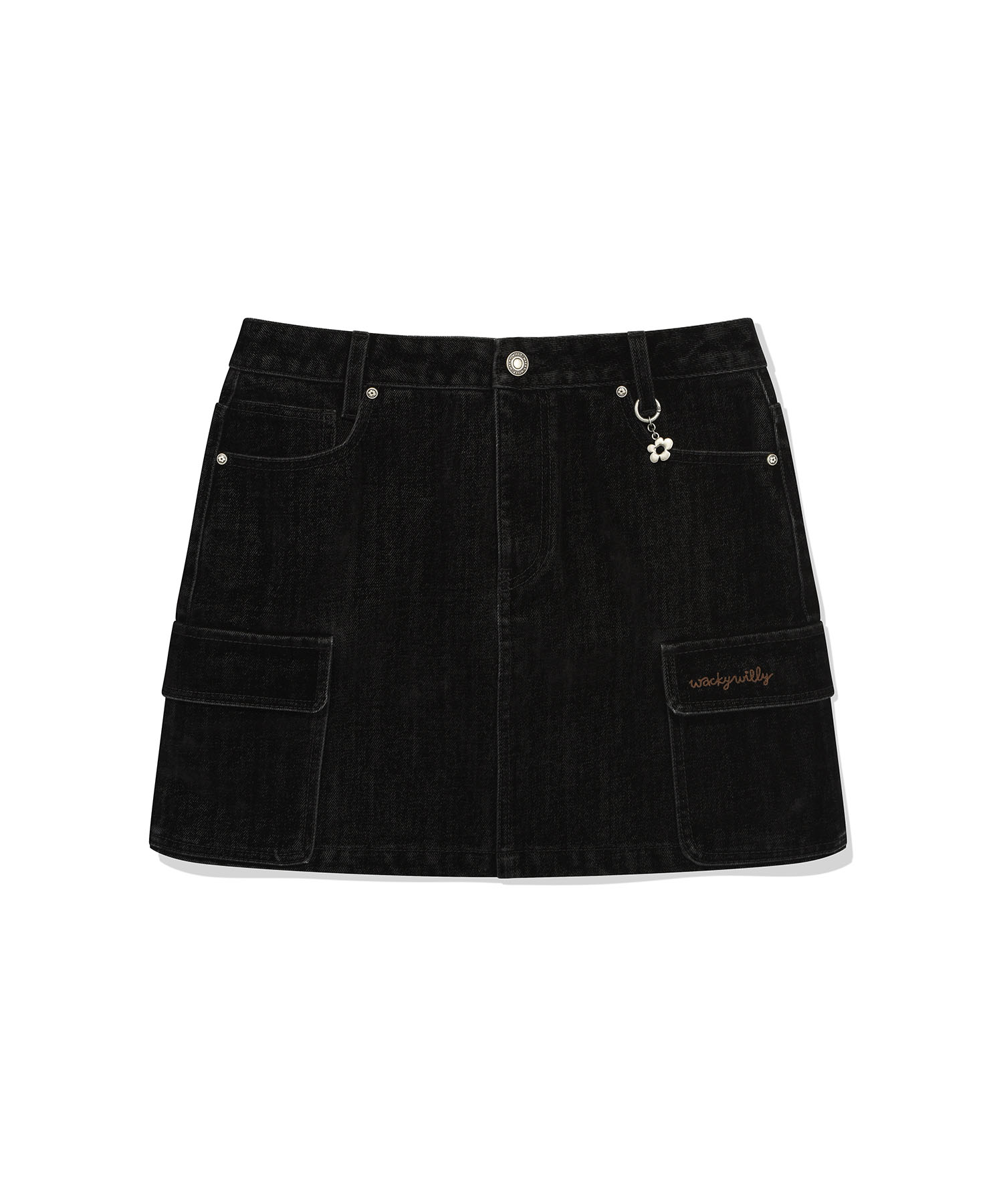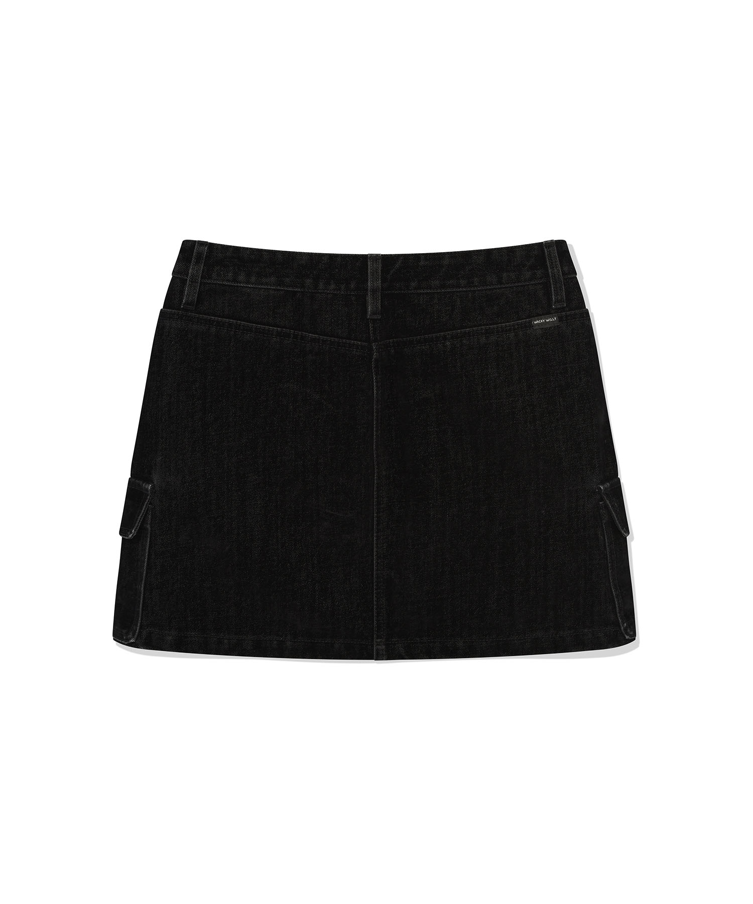 [GISELLE Wearing] Women's Velvet Denim Cargo Mini Skirt, Black