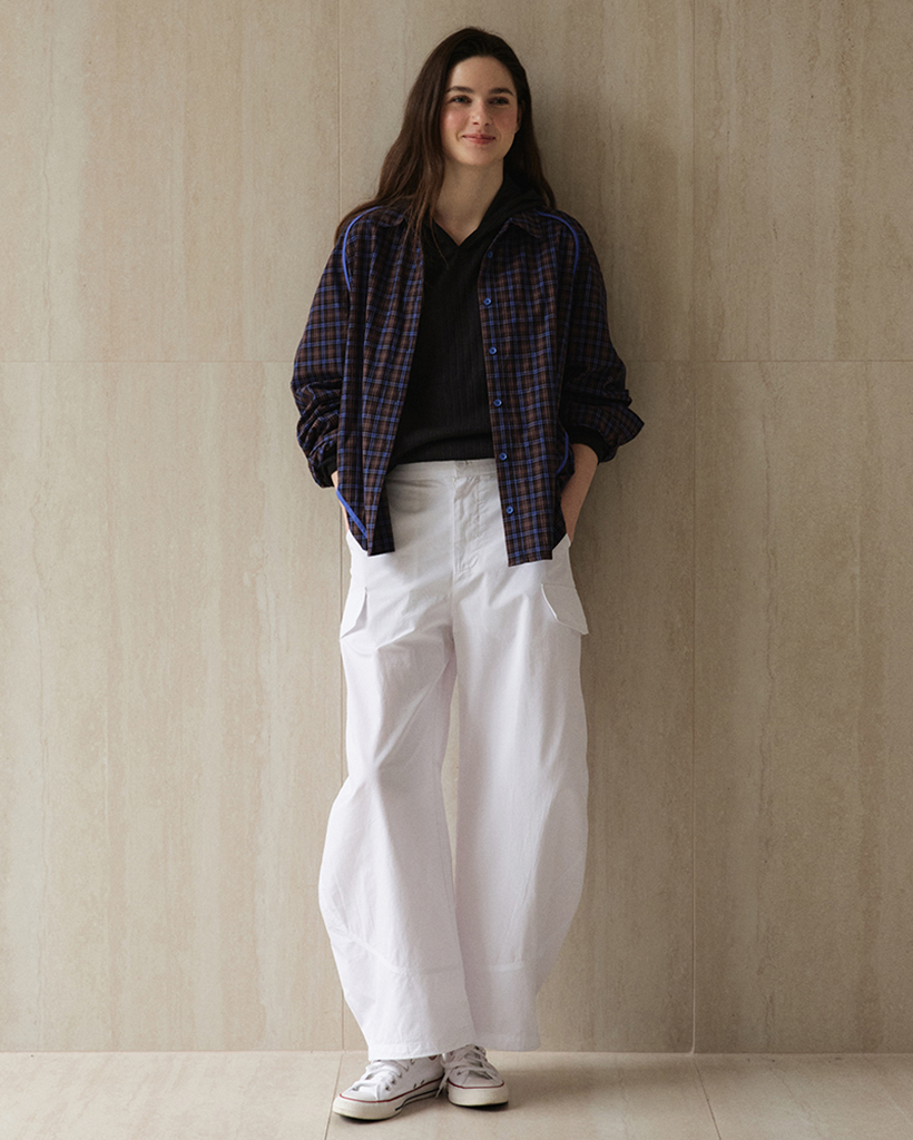 ワイドに落ちるシルエットが快適な着用感を提供します。