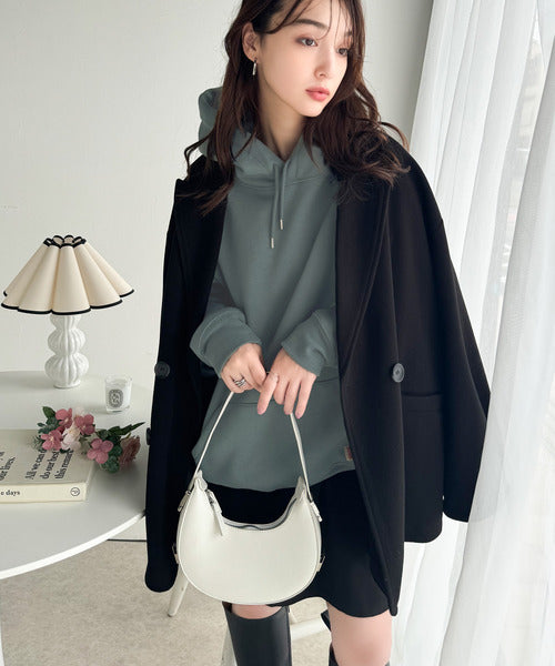たっぷりとしたオーバーサイズの着丈で包み込まれる心地よさ。