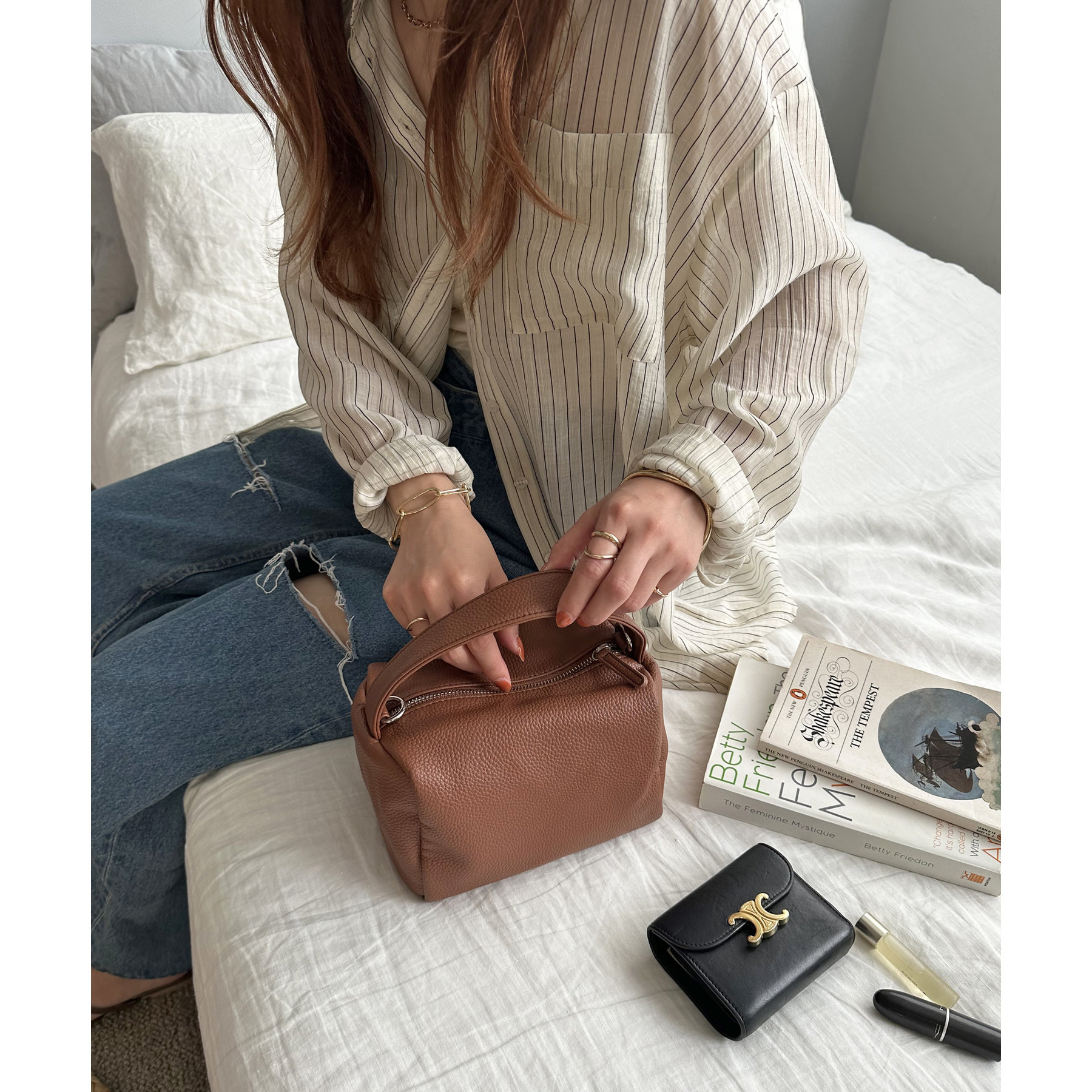 以前からずっと大人気のワンハンドルバッグ。流行り廃りのないシンプルなデザインなので、大人カジュアルから甘めやキレイめなスタイリングまで毎日のコーディネートに幅広く合わせていただけます♪ベーシックカラーから映えるカラー展開で、スタイリングの差し色にも使えます♪コンパクトながら、マチをしっかり取っているので、荷物もしっかり入り、機能面にも優れています。また、ショルダーの紐は取り外し可能なので2wayでご使用いただけます◎くたっと柔らかい生地感で、季節問わず1年中お使い頂けるバッグです。