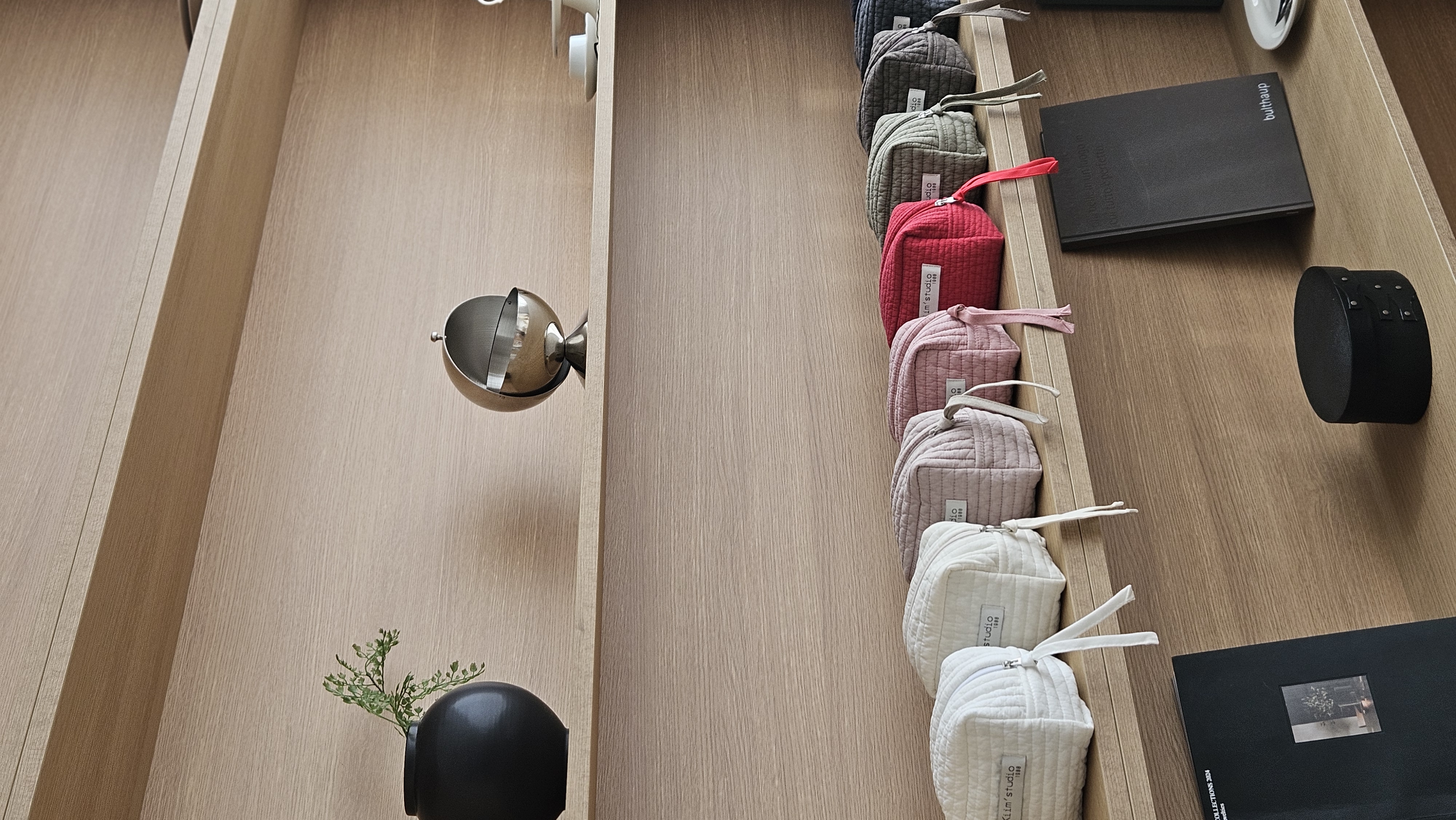 コンパクトでも無駄のない収納で、名刺、カードケース、リップバームまで手軽に整理できます。