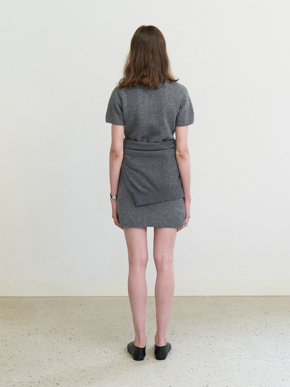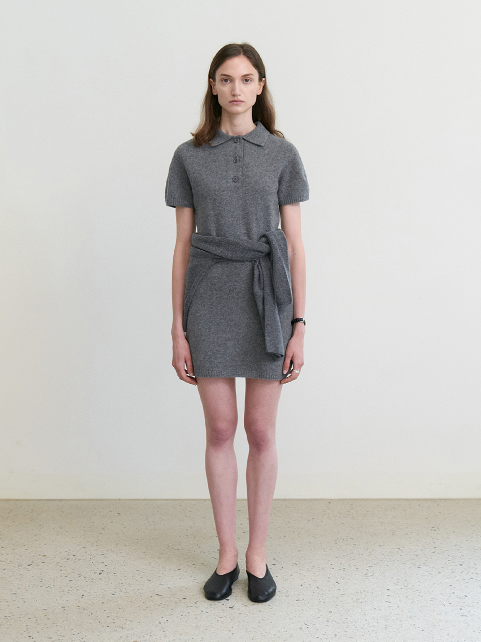 Cashmere collar mid one-piece_GREY