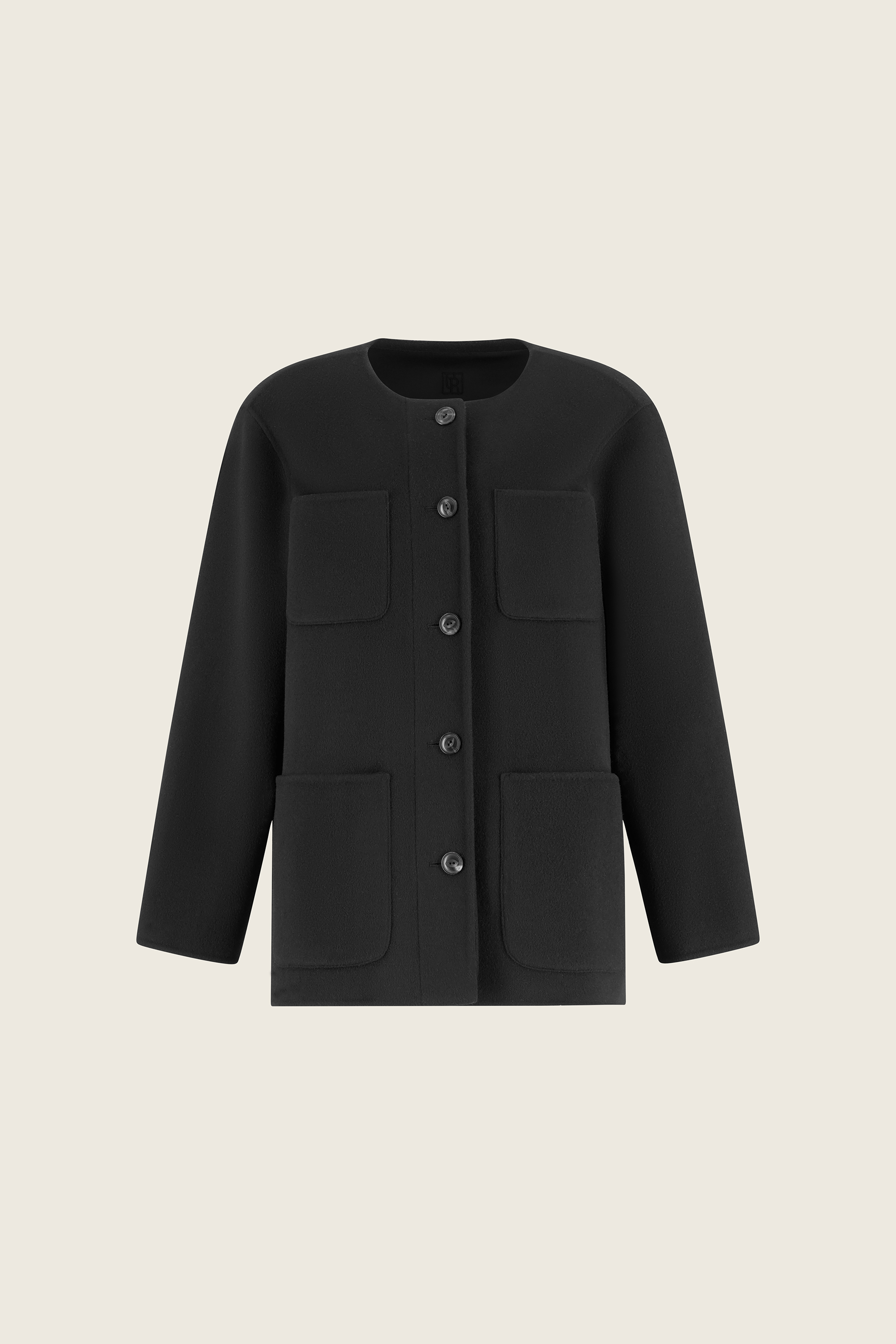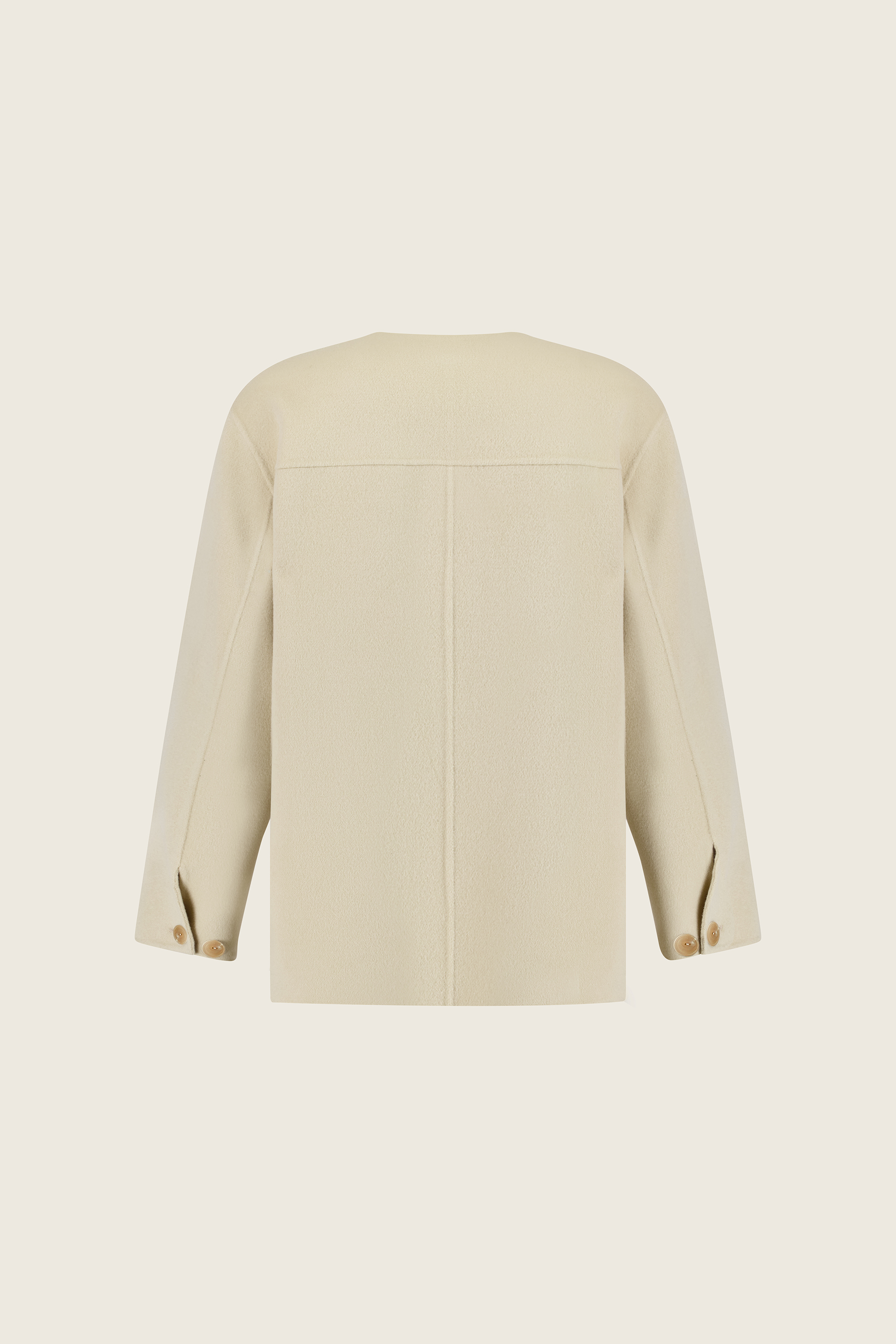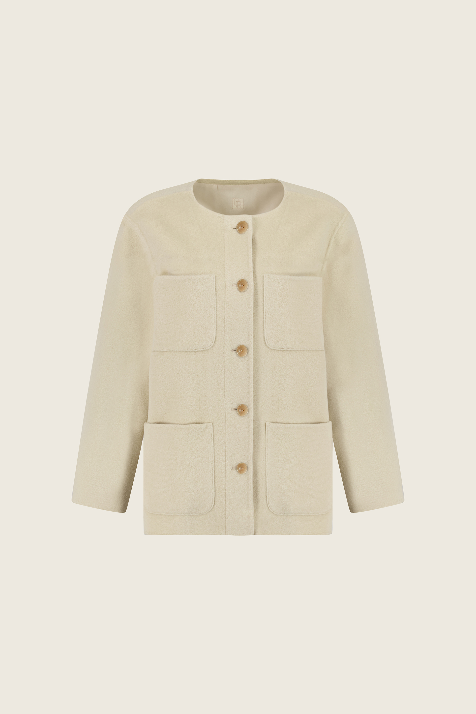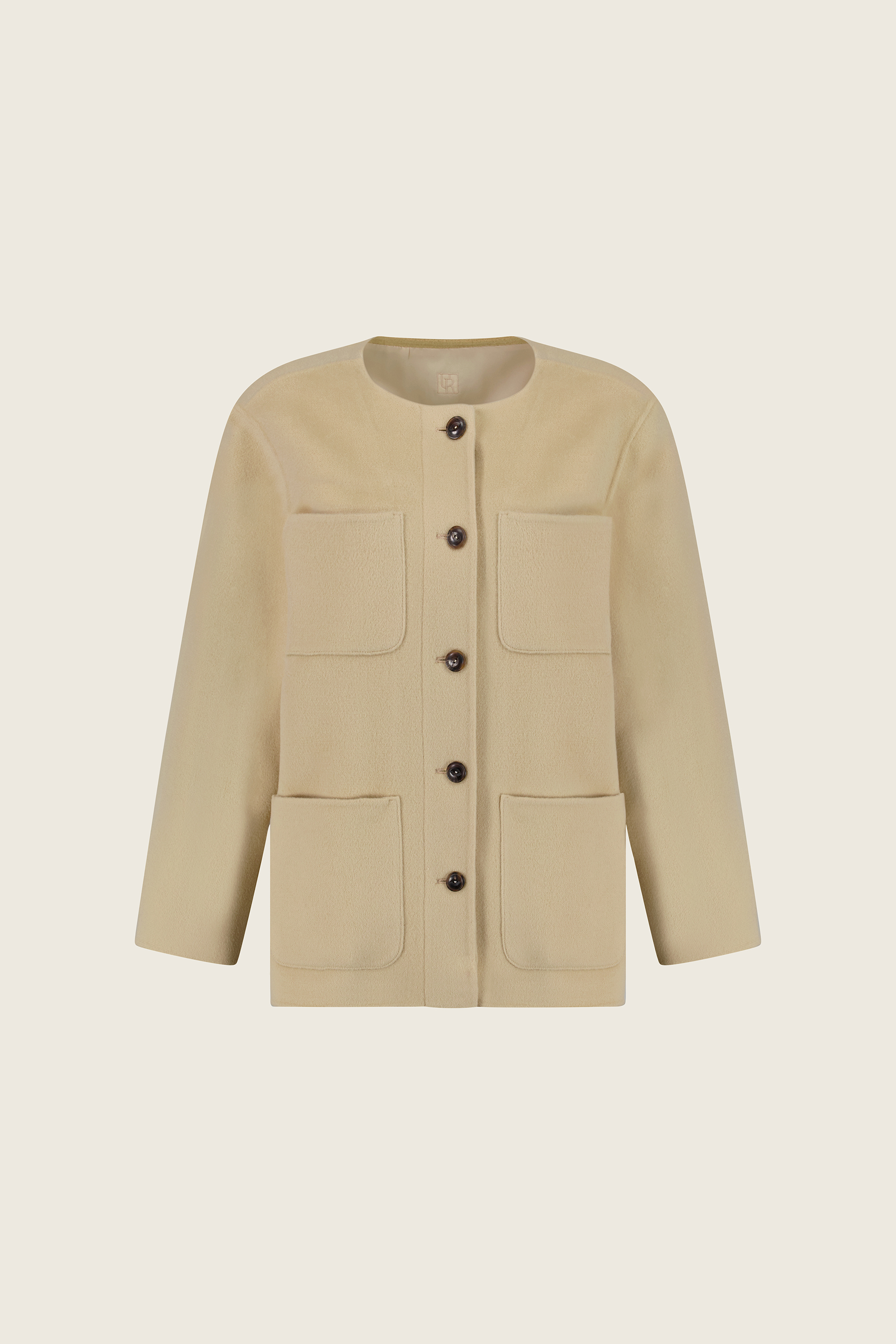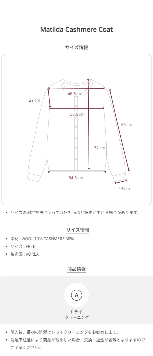 カシミヤ30%混紡/裏地(ボディ⅔、袖⅔)/裏地ロゴ刺繍/パッチポケット/スリーブ・ヨーク切り替えライン/ダブルフライフロント/水牛ボタン/内側マザーオブパール製ハンドメイドタグ