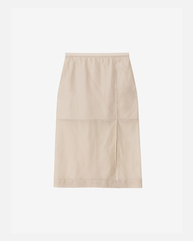 軽やかでしなやかな素材にほのかな光沢をまとわせたミディ丈スカートです。