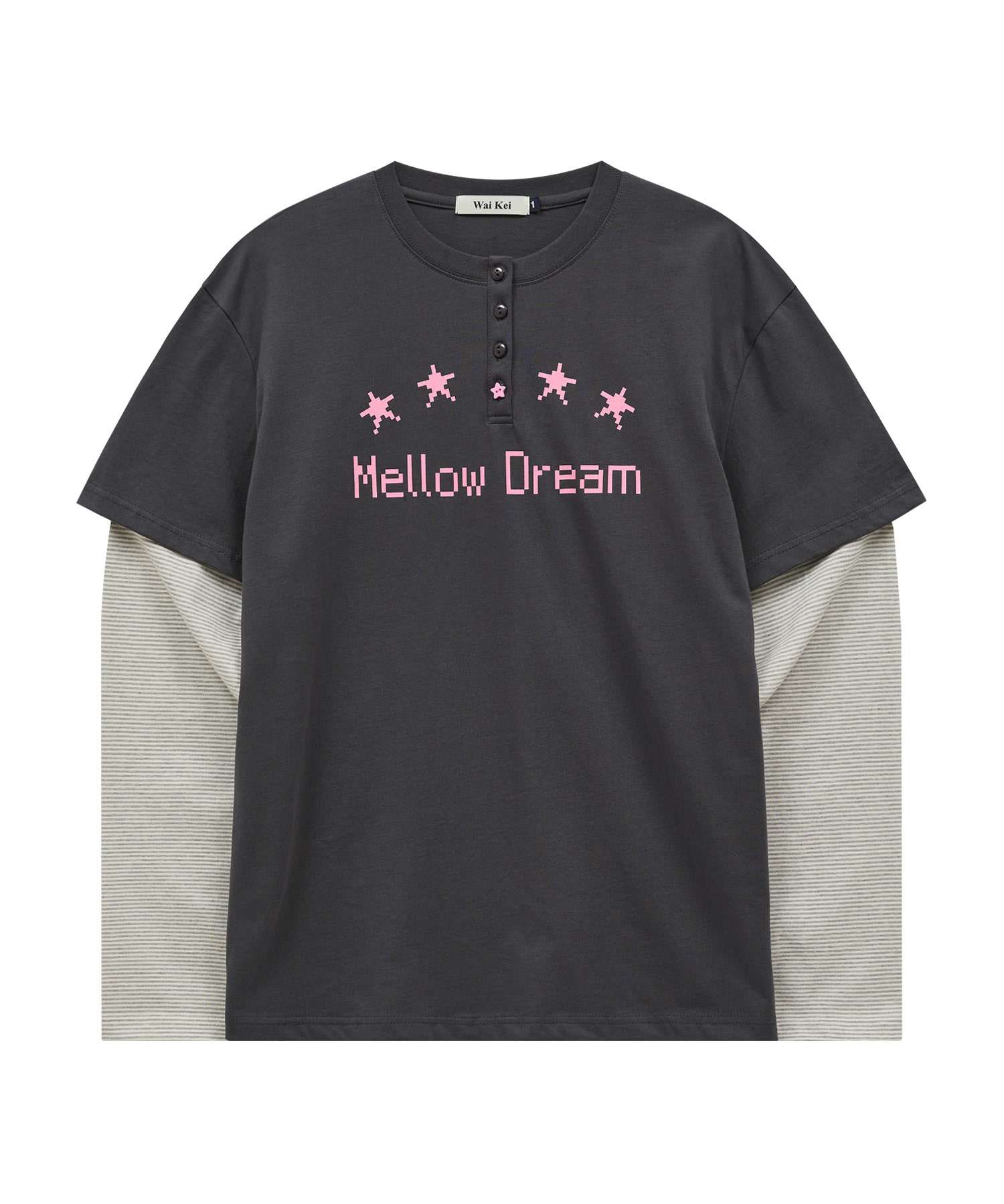 MELLOW DREAM Stripe Layerd T-shirt CHARCOAL
