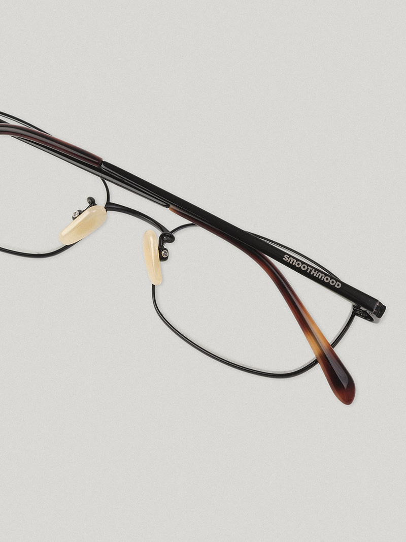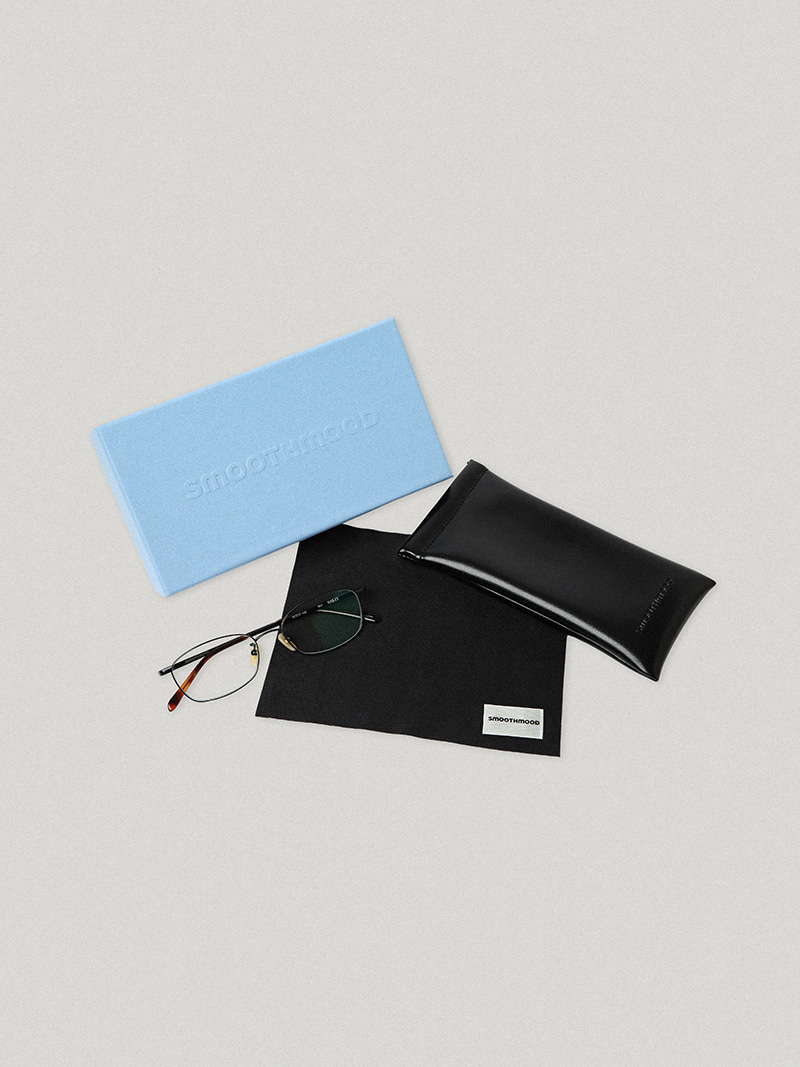 Smoothmoodの3つ目のエッセンシャル・アイウェアアイテム、「ヘイリー グラス」です。ミニマルでクリーンなソフトスクエアシェイプが知的でモダンな印象を演出し、90年-00年代ムードの感覚的な魅力が感じられるアイウェアです。優れた品質と技術力を備えた日本製チタンフレームで、薄く軽く着用感に優れています。テンプルチップにはイタリア マツケリ(Mazzucchelli)のアセテートで作ったトータス柄のテンプルチップをハンドポリッシュし、クラシックで上質に仕上げました。サイドにはSmoothmood Bold Logoをあしらい、所蔵価値を高めました。ルーバーパッキングのヒンジネジを使用して緩みを最小化し完成度を高め、UV領域を99%以上カットし短波長領域を部分的にカットする1.56ブルーライトカットレンズを採用しました。度を入れない場合は基本レンズのまま着用いただけます。製品の完成度のため、眼鏡士経験15年以上の国内業者と協業しました。ミニマルなブラックカラーで、デイリーにスマートなムードでお楽しみください。ㆍソフトスクエアシェイプㆍサイド Smoothmood Bold Logoㆍ日本製チタンフレームㆍイタリア マツケリ(Mazzucchelli 1849 S.p.A.) アセテート テンプルチップㆍ1.56 ブルーライトカットレンズ