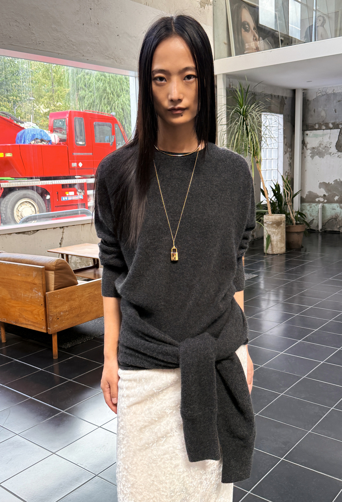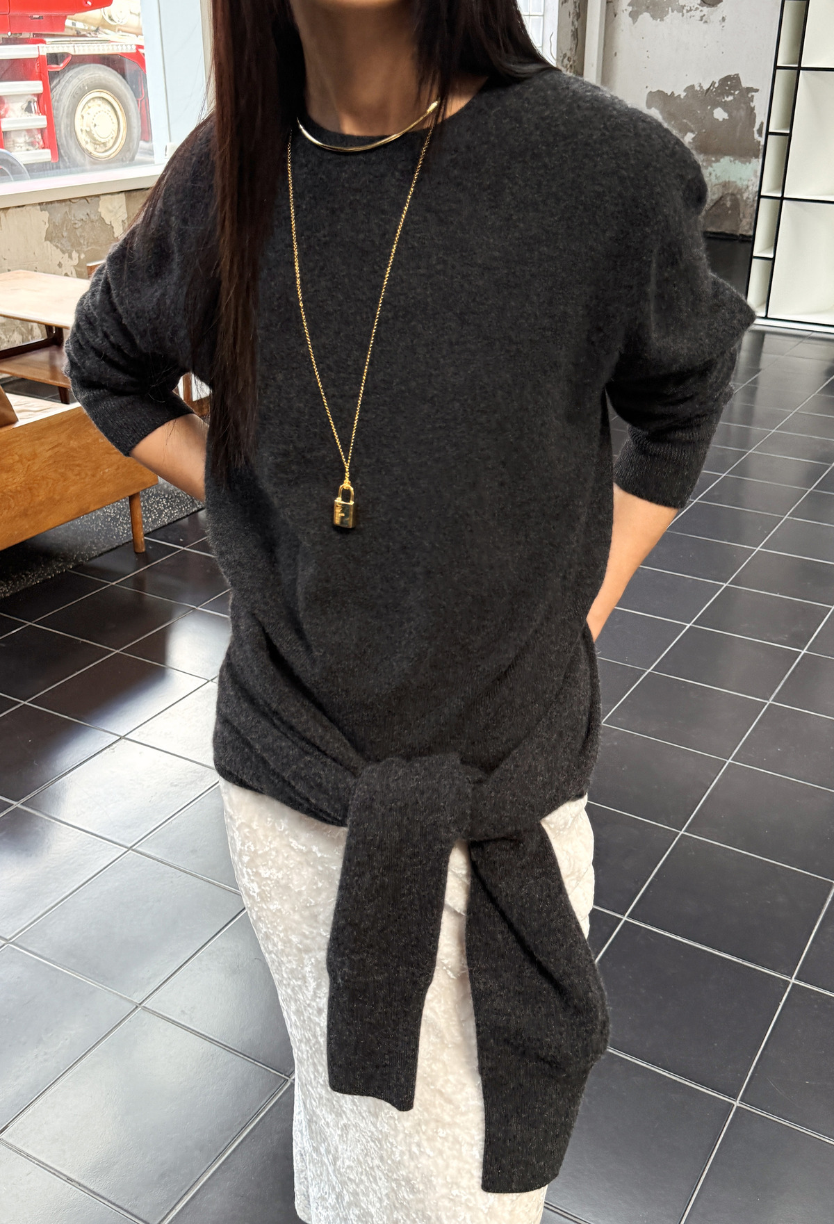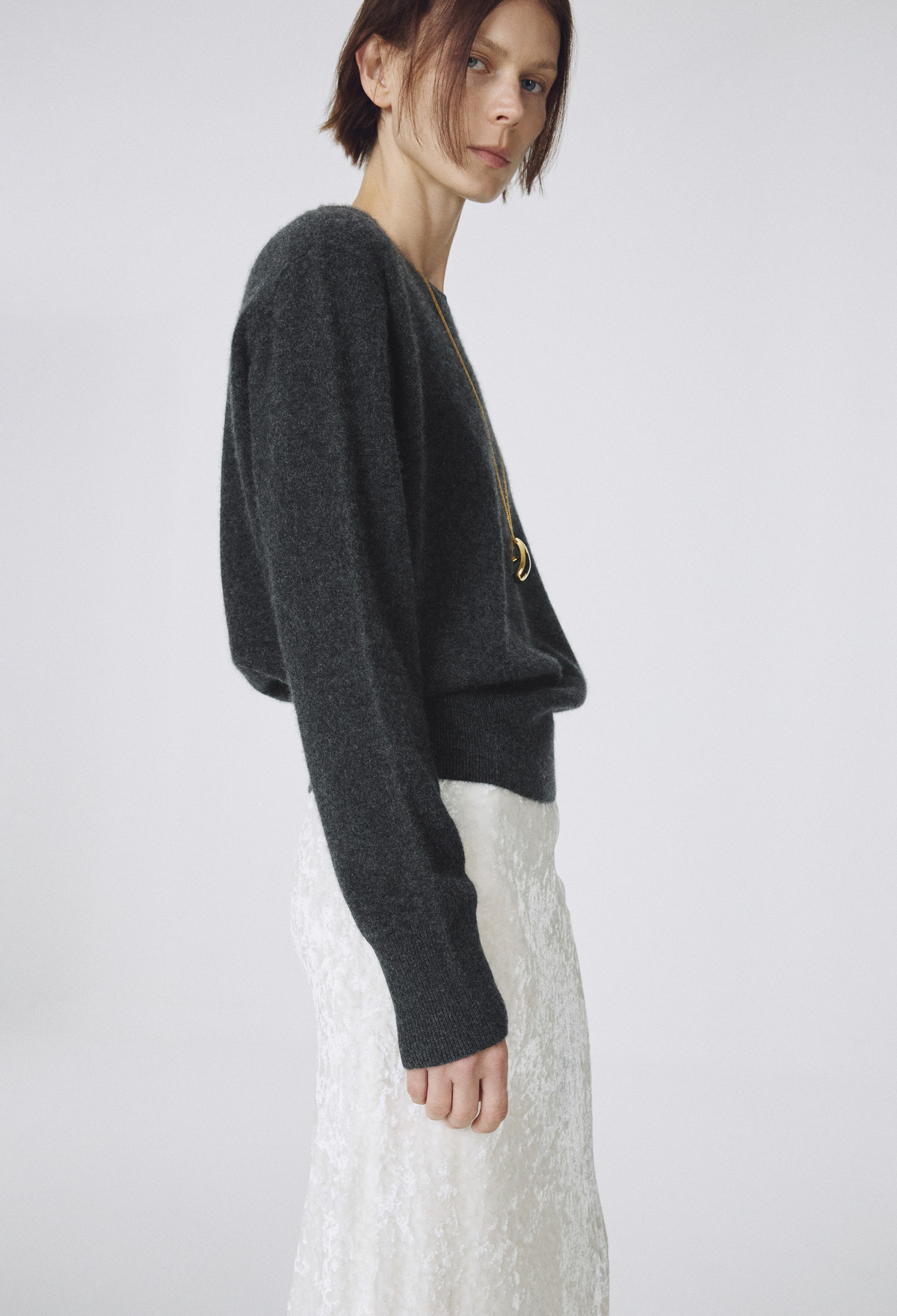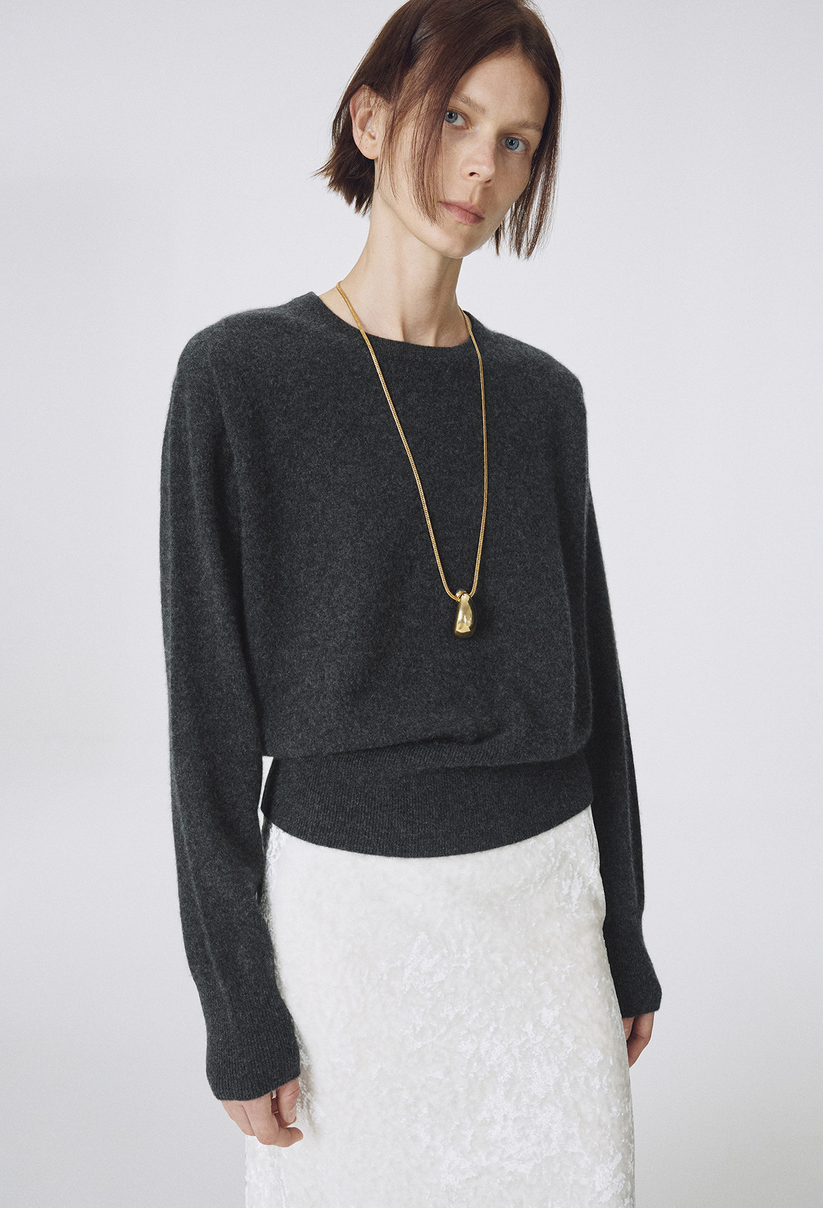 Cashmere 100% Crewneck Knit - Charcoal