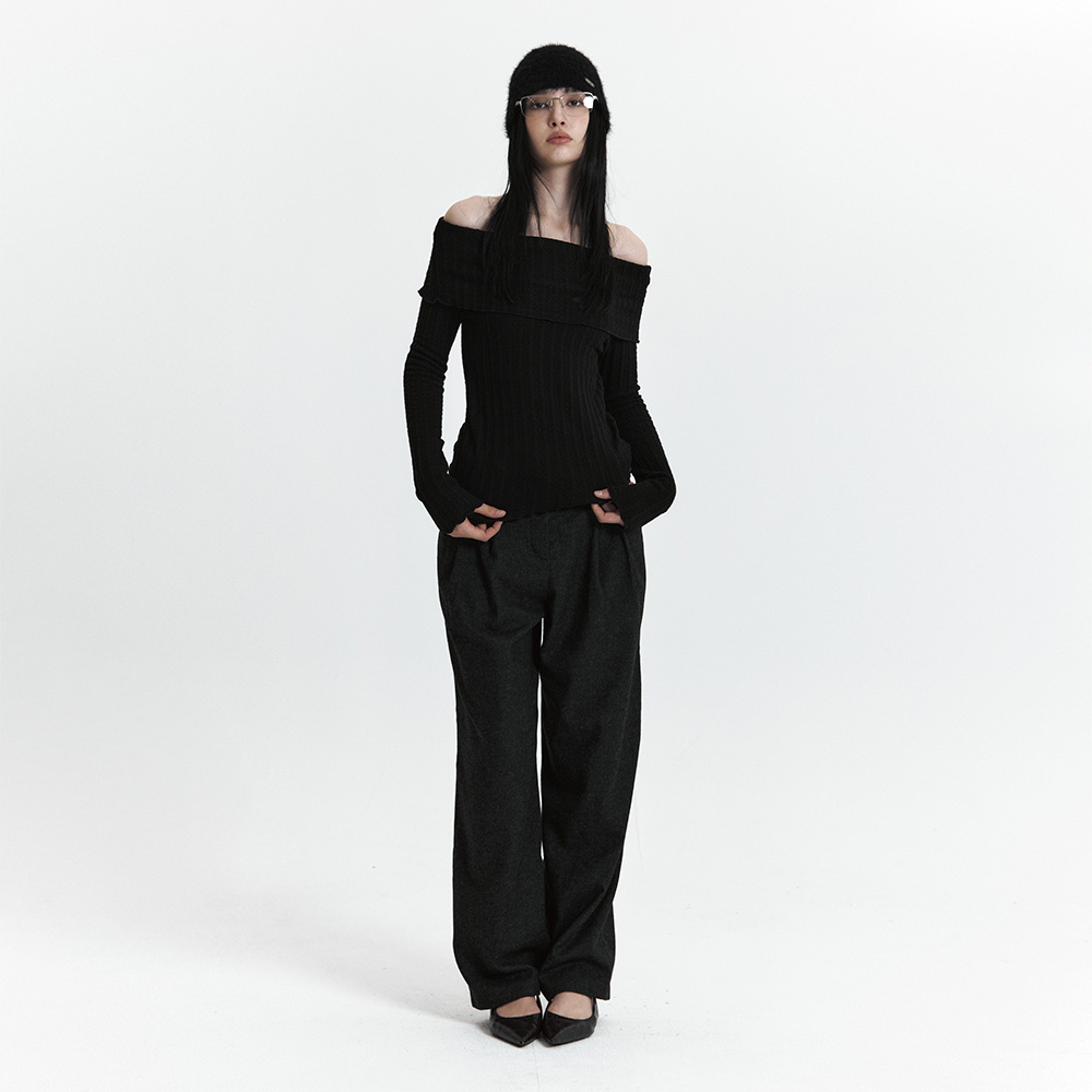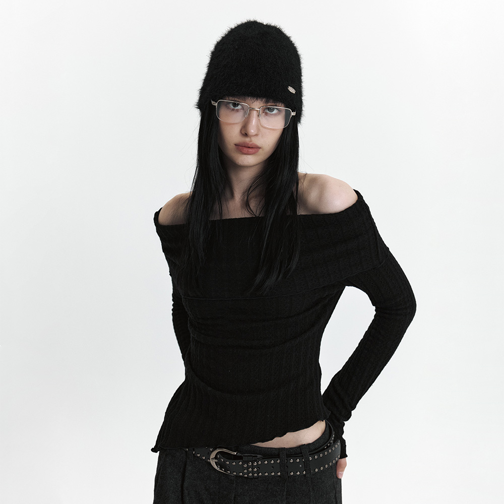 C ASYMMETRIC OFF-SHOULDER KNIT TOP_BLACK