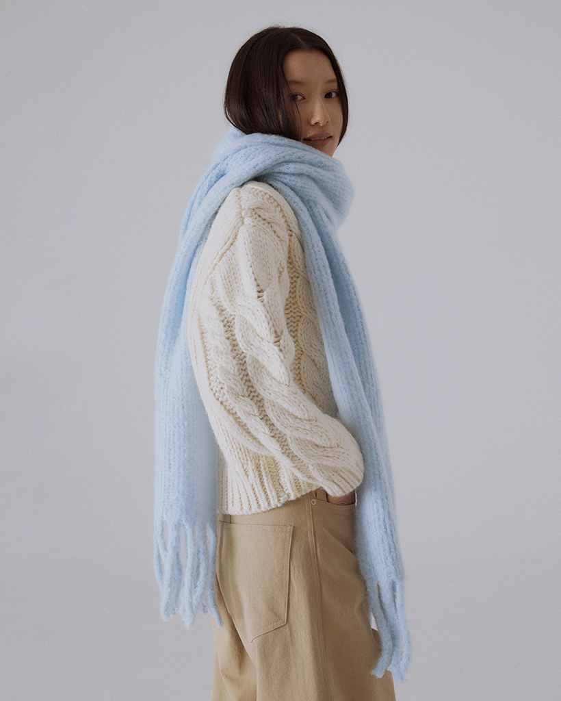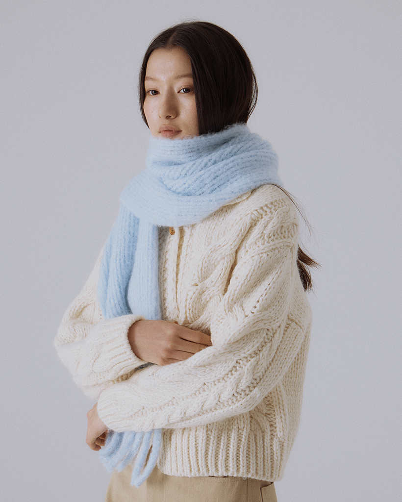 ゆるやかな編み目が生み出す柔らかなボリュームと心地よいタッチが調和し、自然に流れるようなシルエットを演出します。