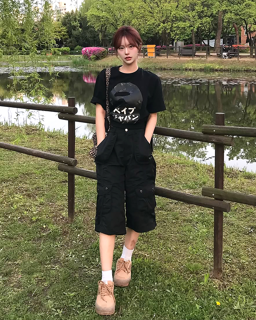 [Influencer pick] Shirring Pocket Bermuda Pants-BLACK