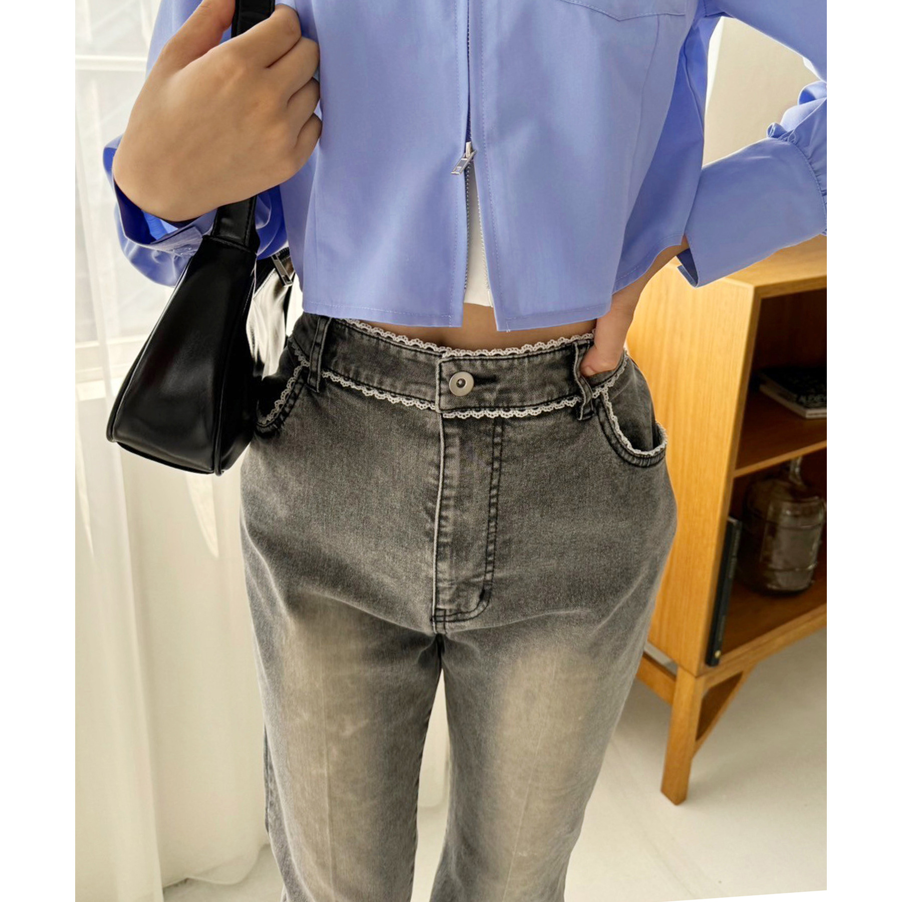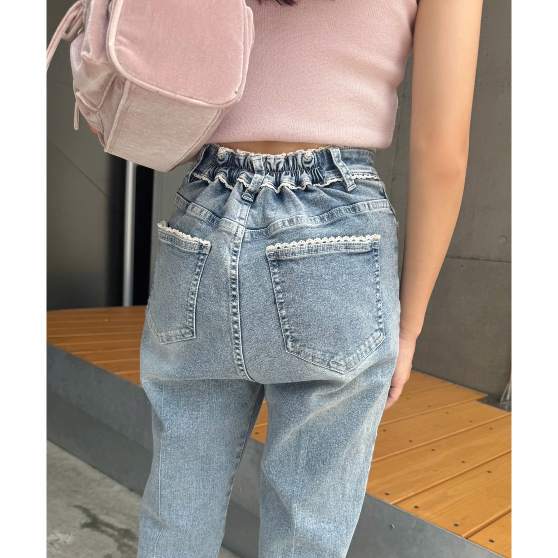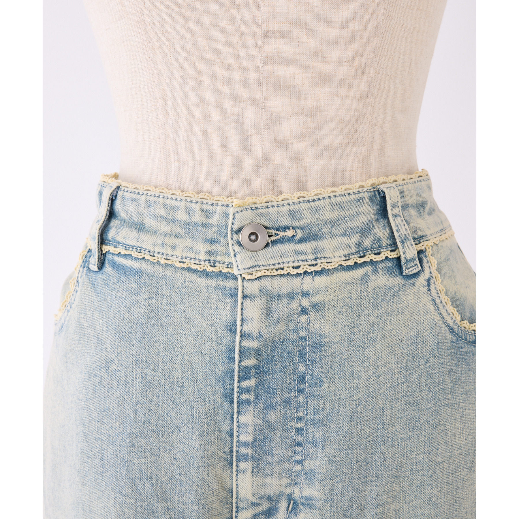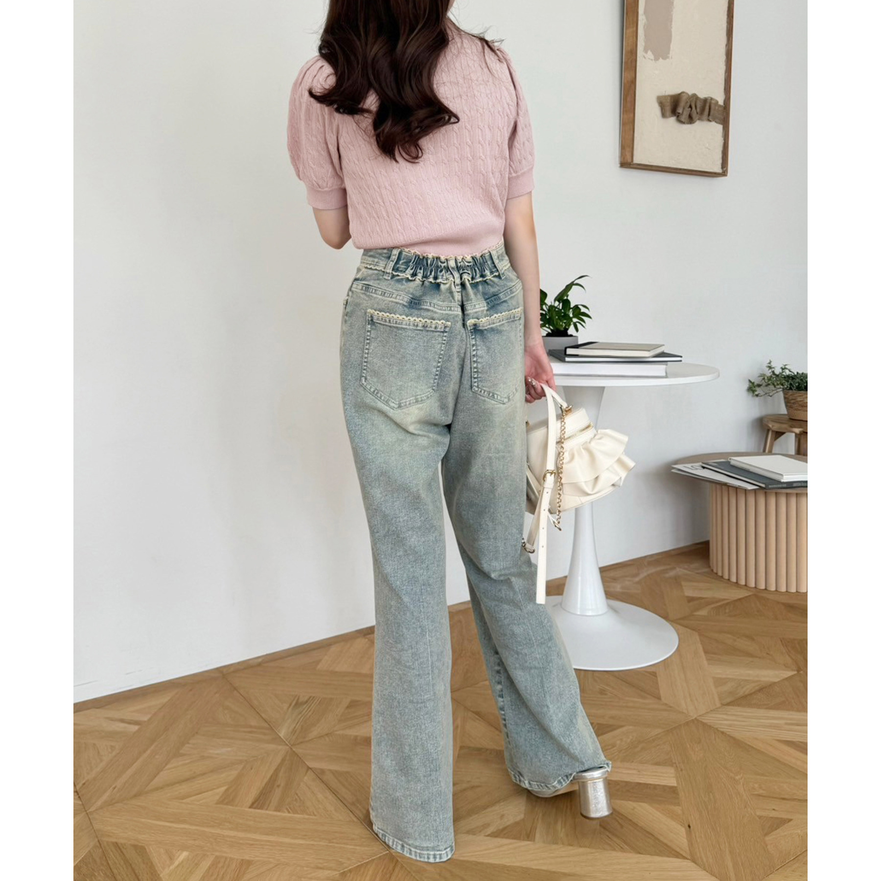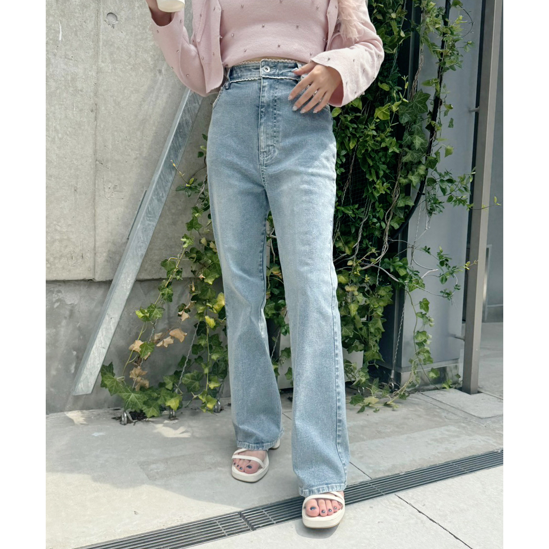 ピコレースがフレンチガーリーさを演出してくれるフレアデニムパンツ
