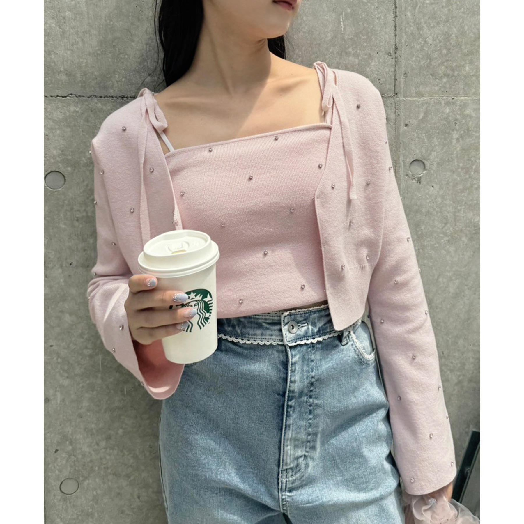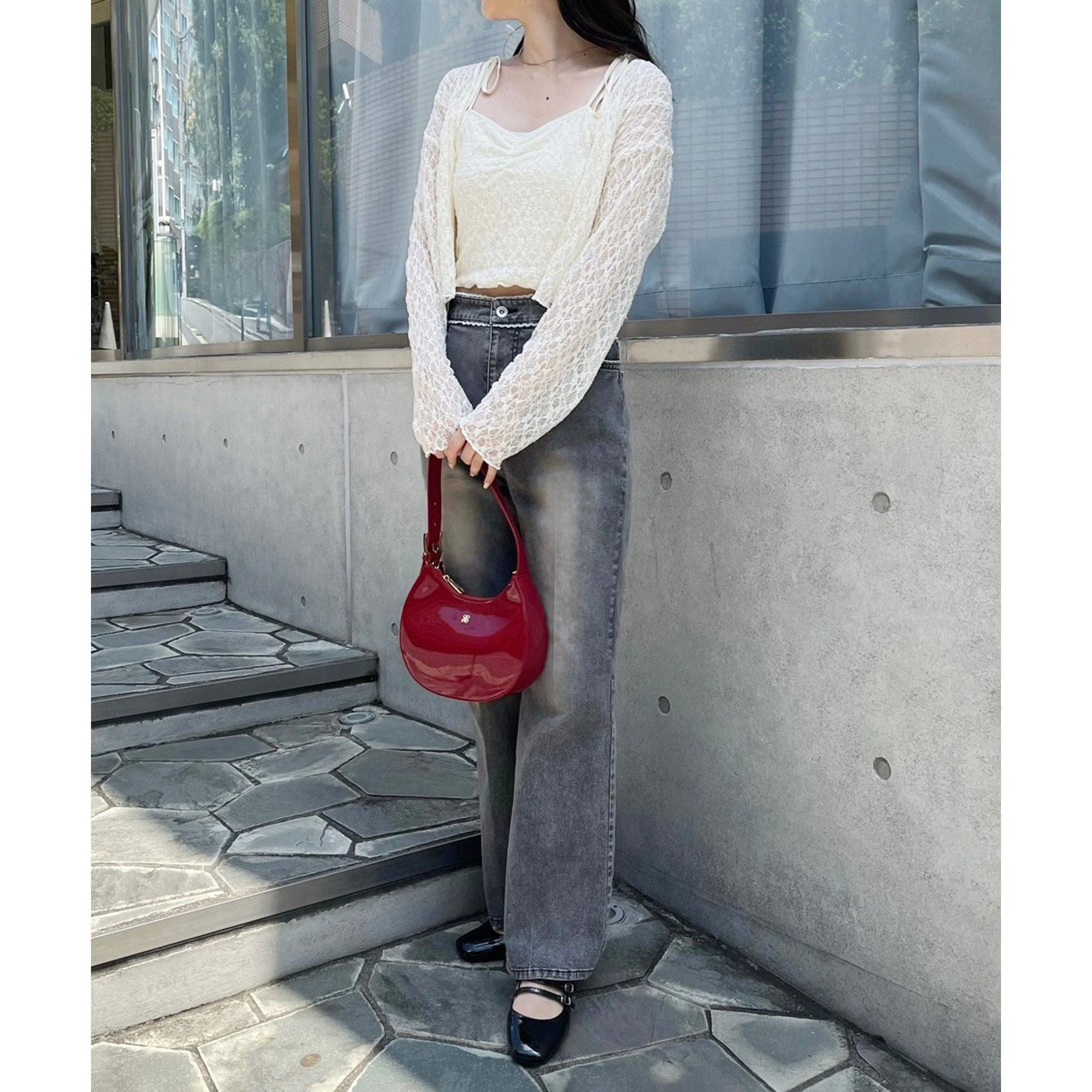 甘さの中にカジュアルなデニムを入れることによってフレンチカジュアルなコーデになります。