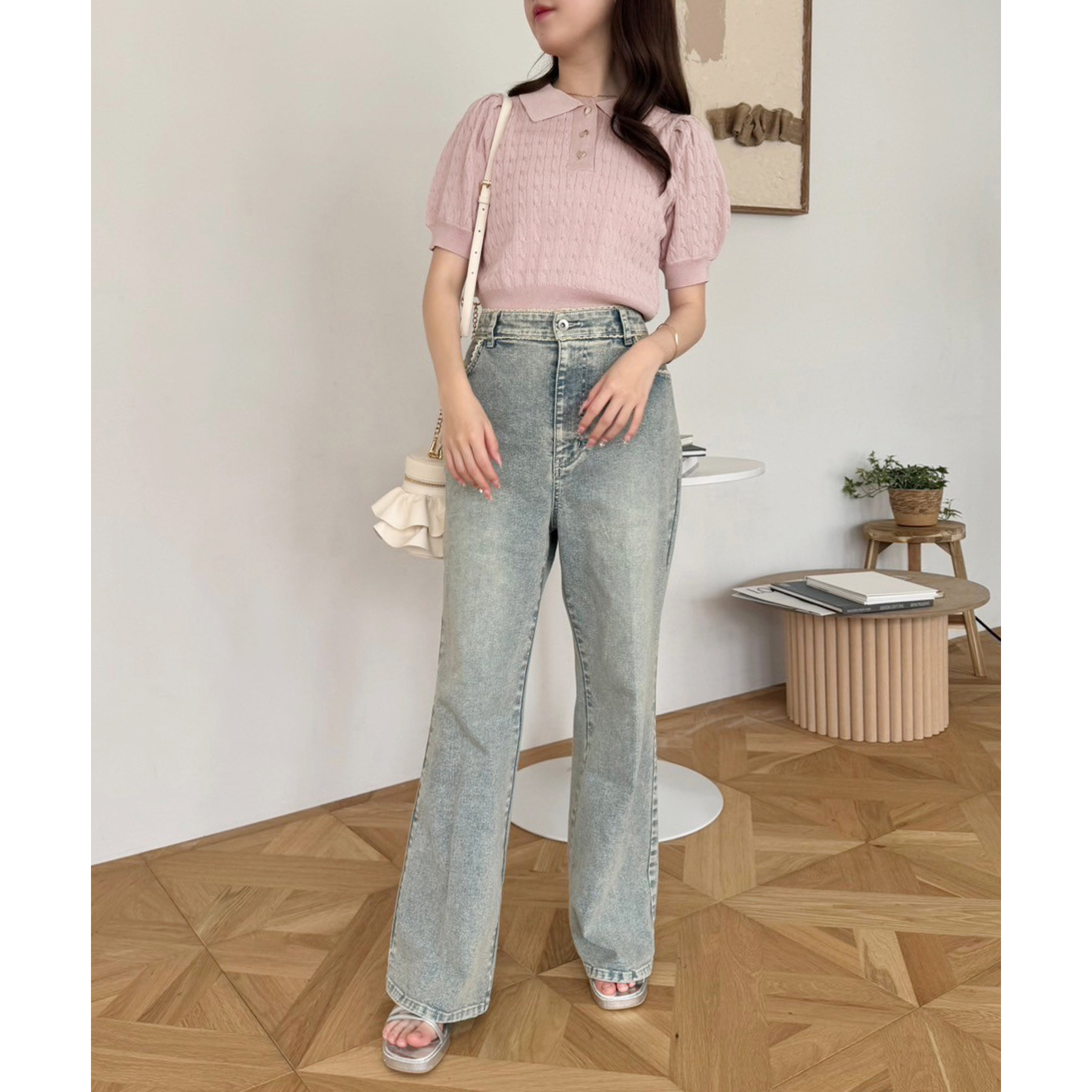ハイウエスト×フレアシルエットで脚長な美スタイルへと導きます。