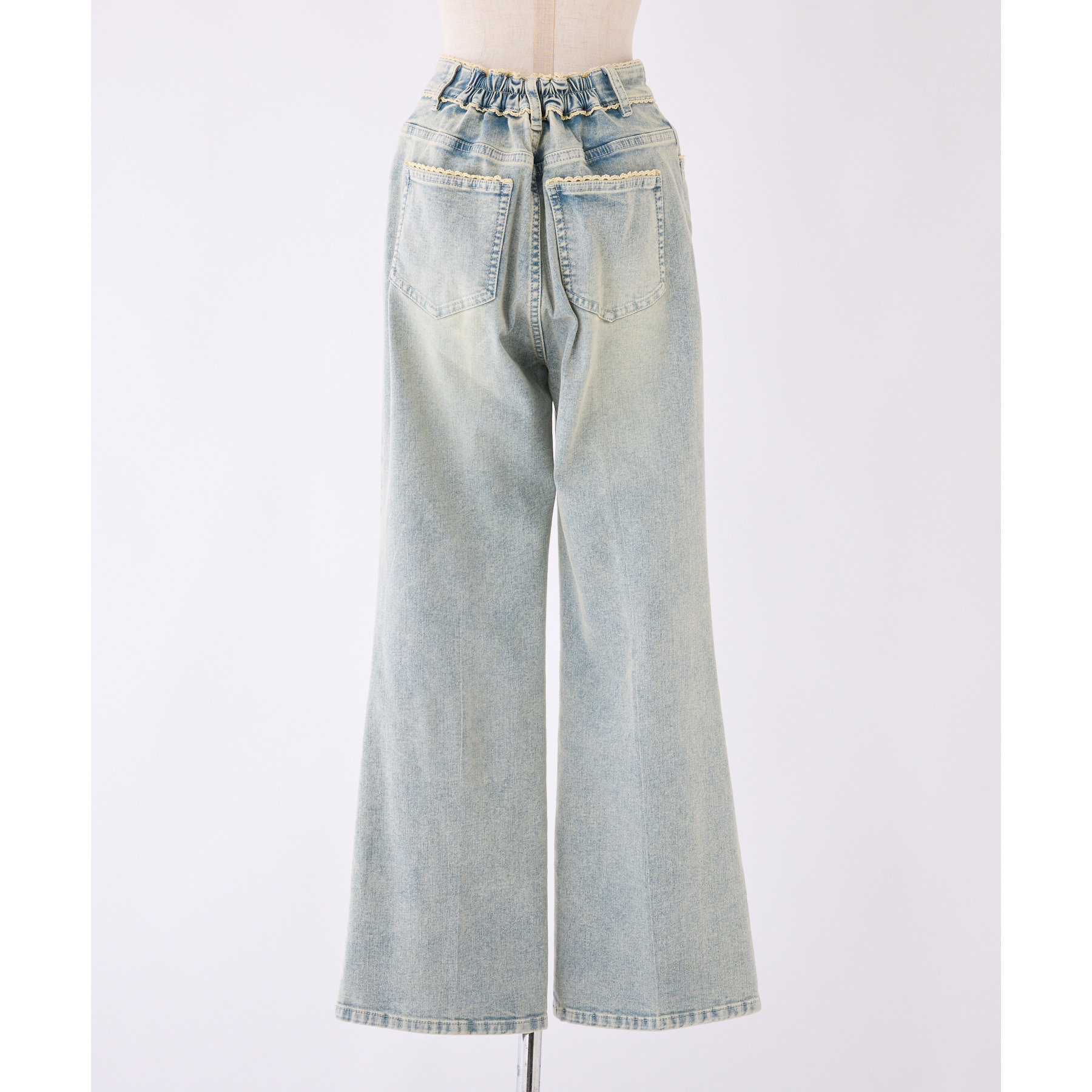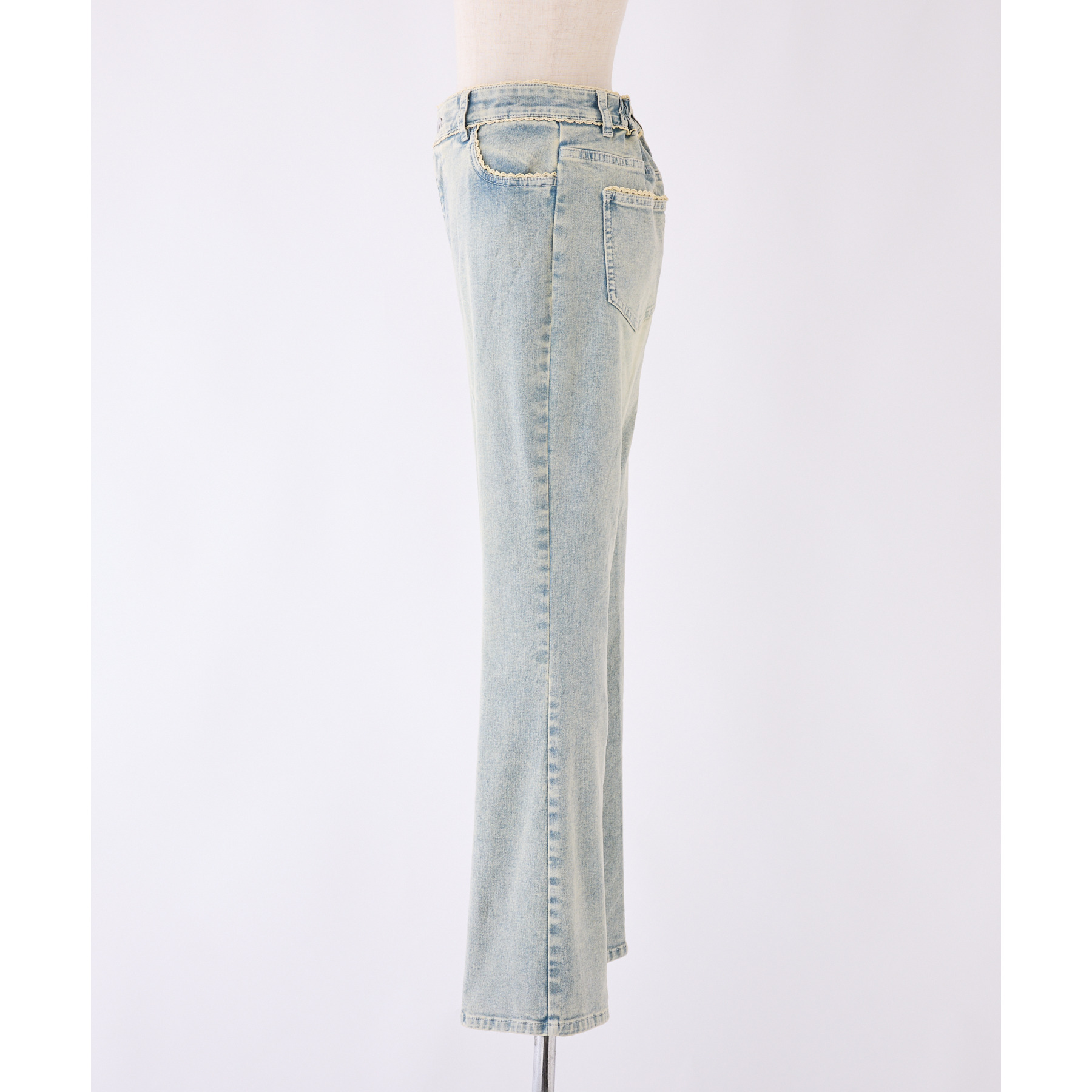 ピコレース付きデニムフレアパンツ