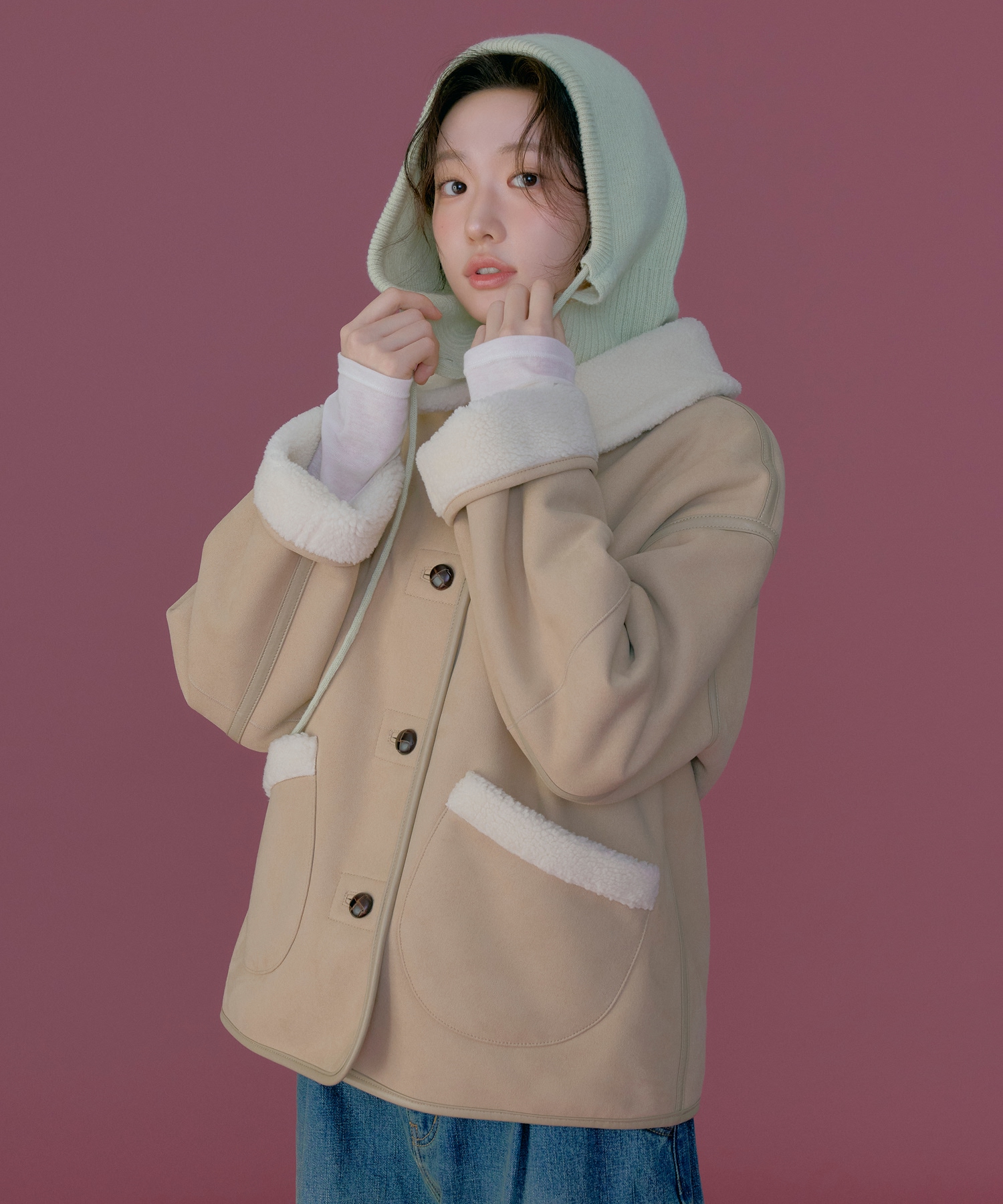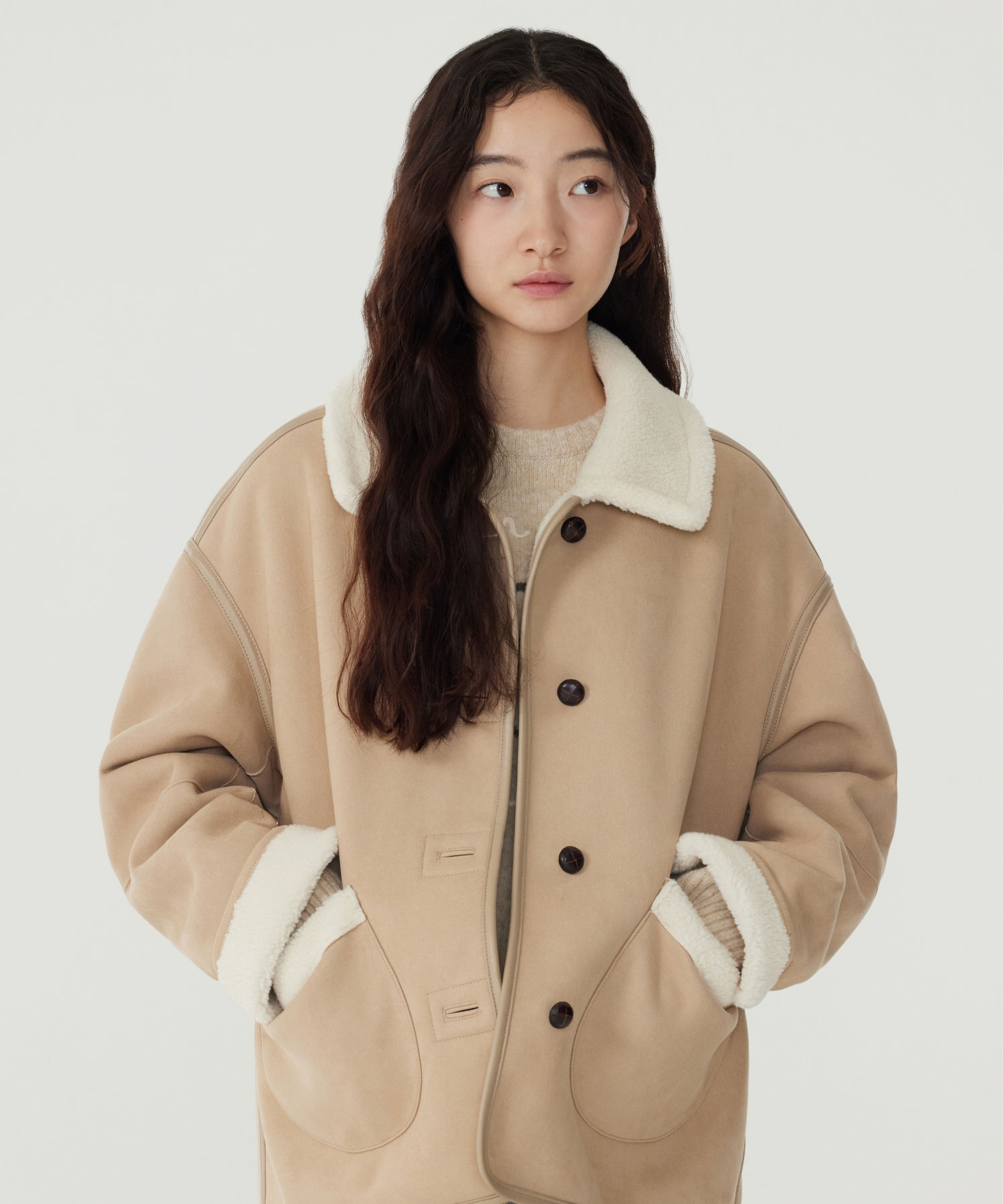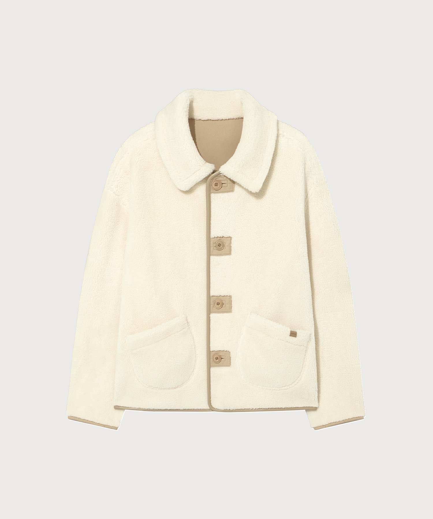 - 両面で着用可能なリバーシブルジャケット(スエード綿、シェルパ綿)