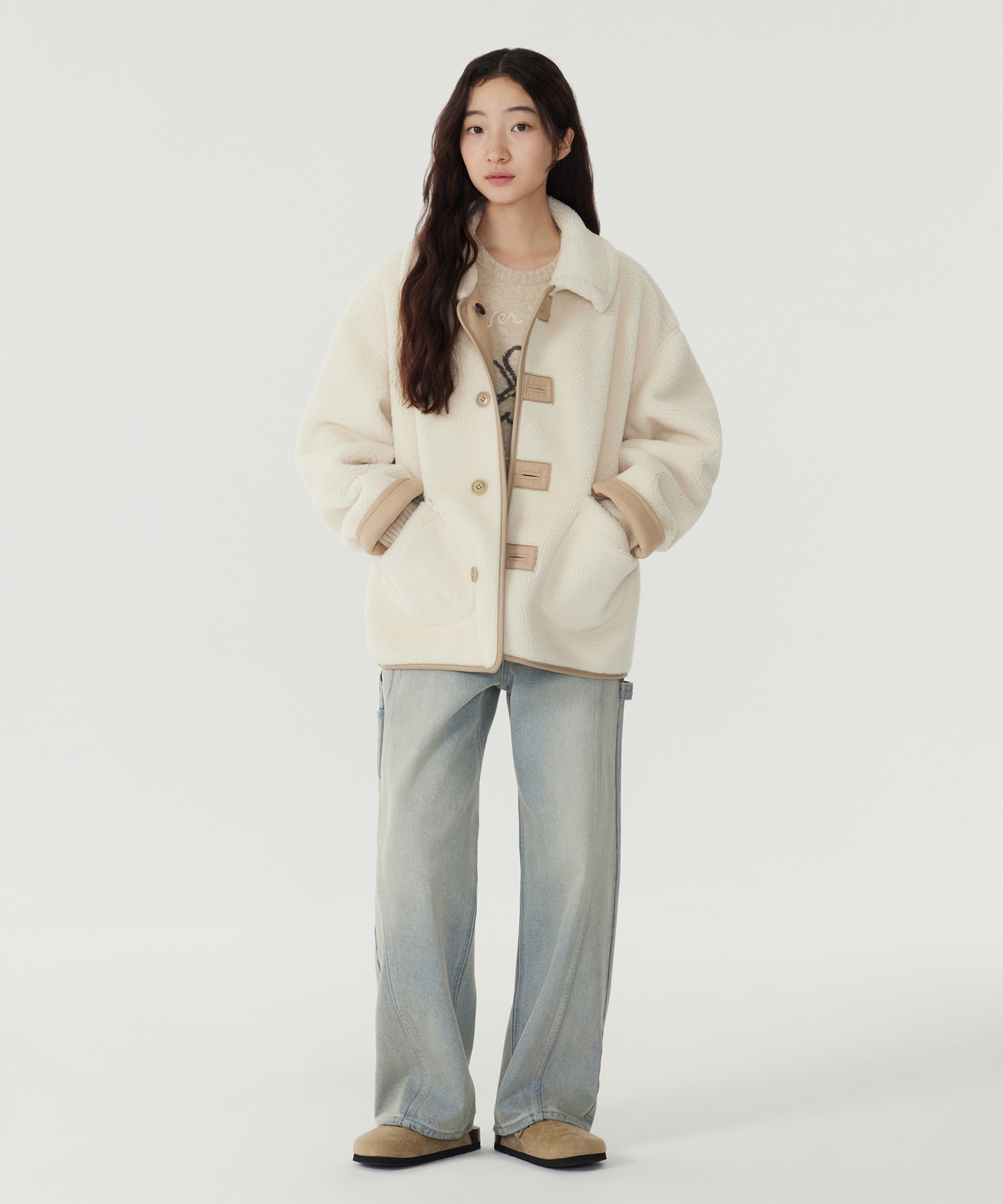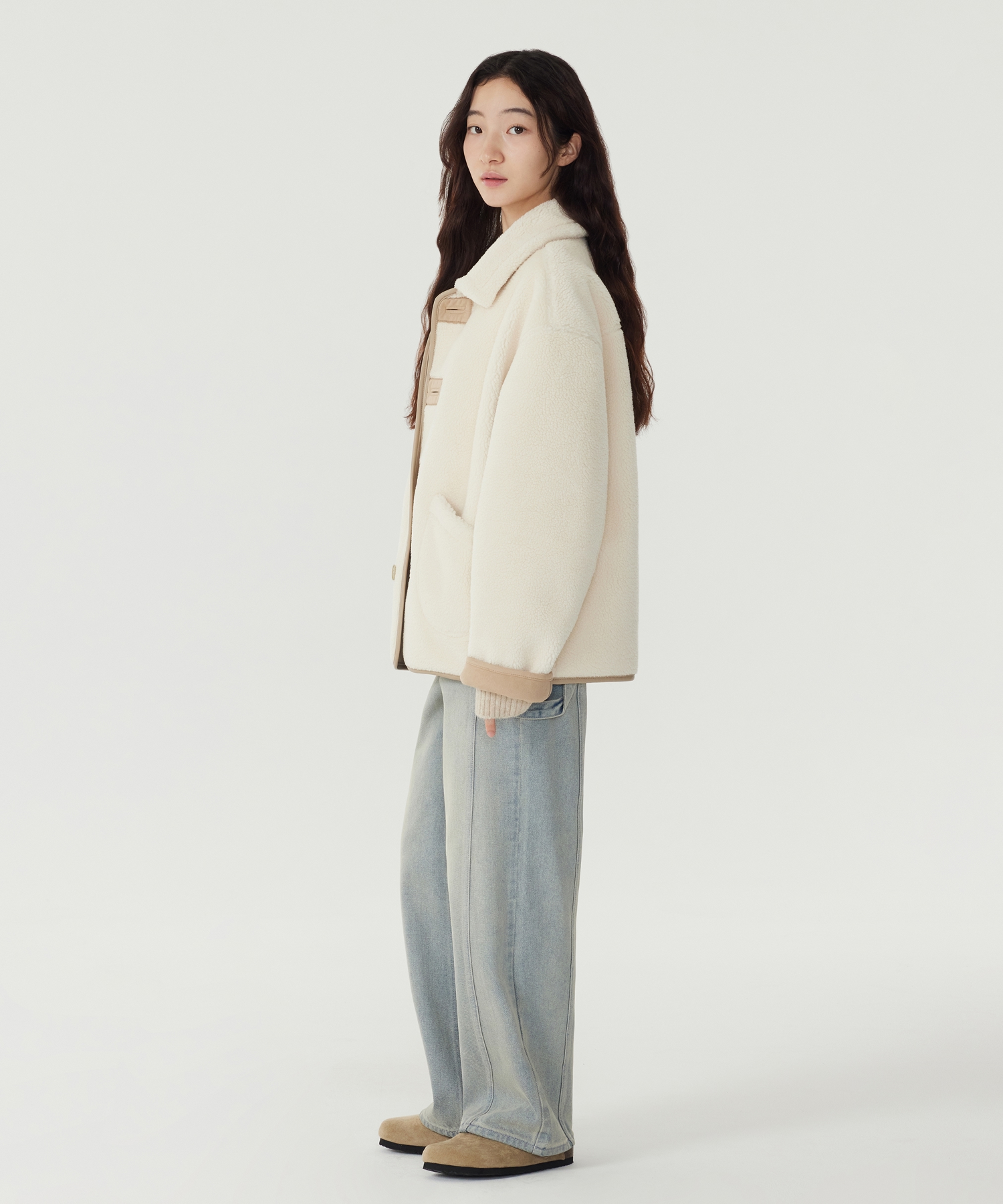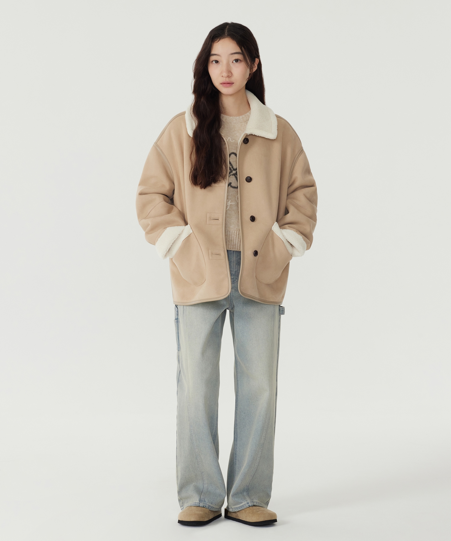 - 両面で着用可能なリバーシブルジャケット(スエード綿、シェルパ綿)