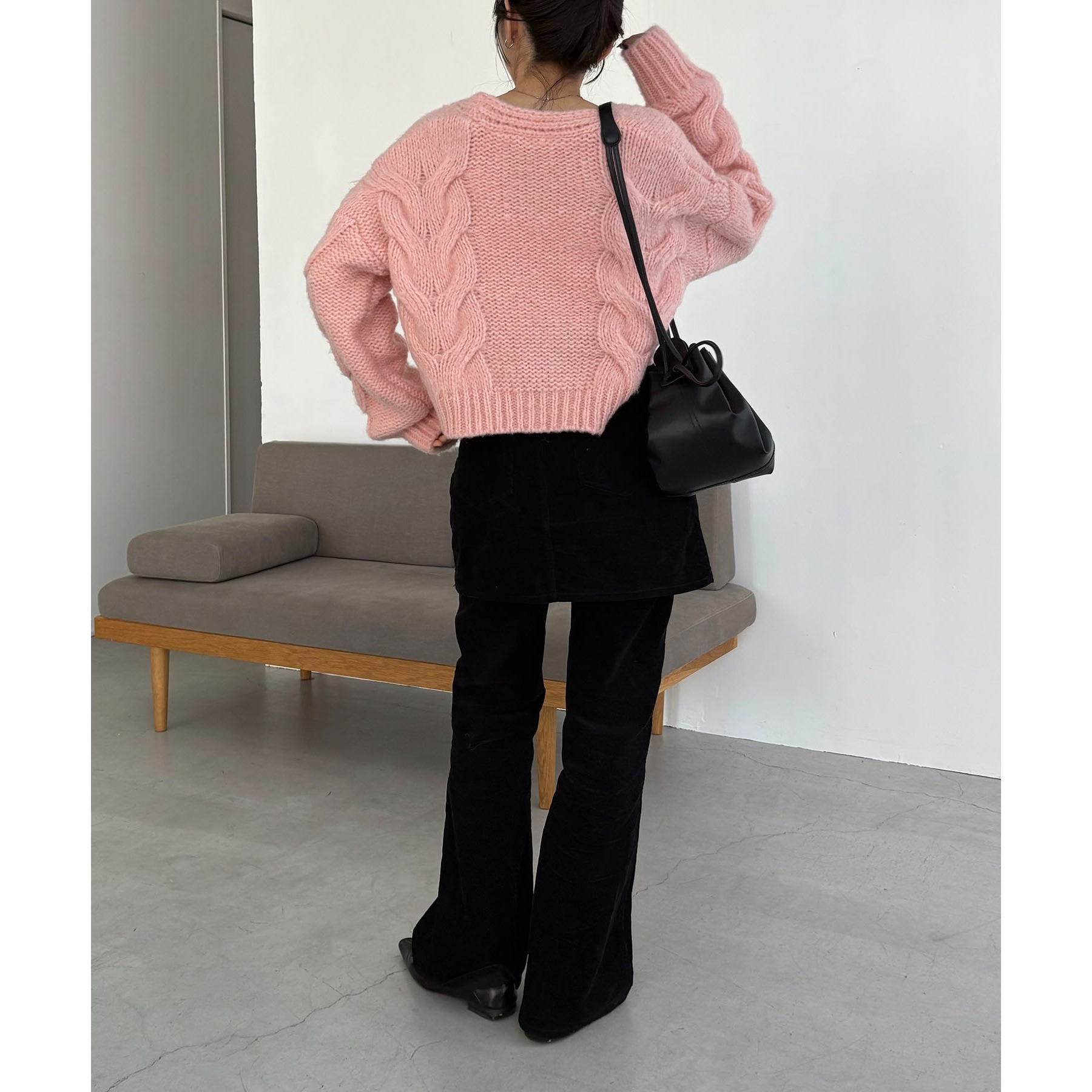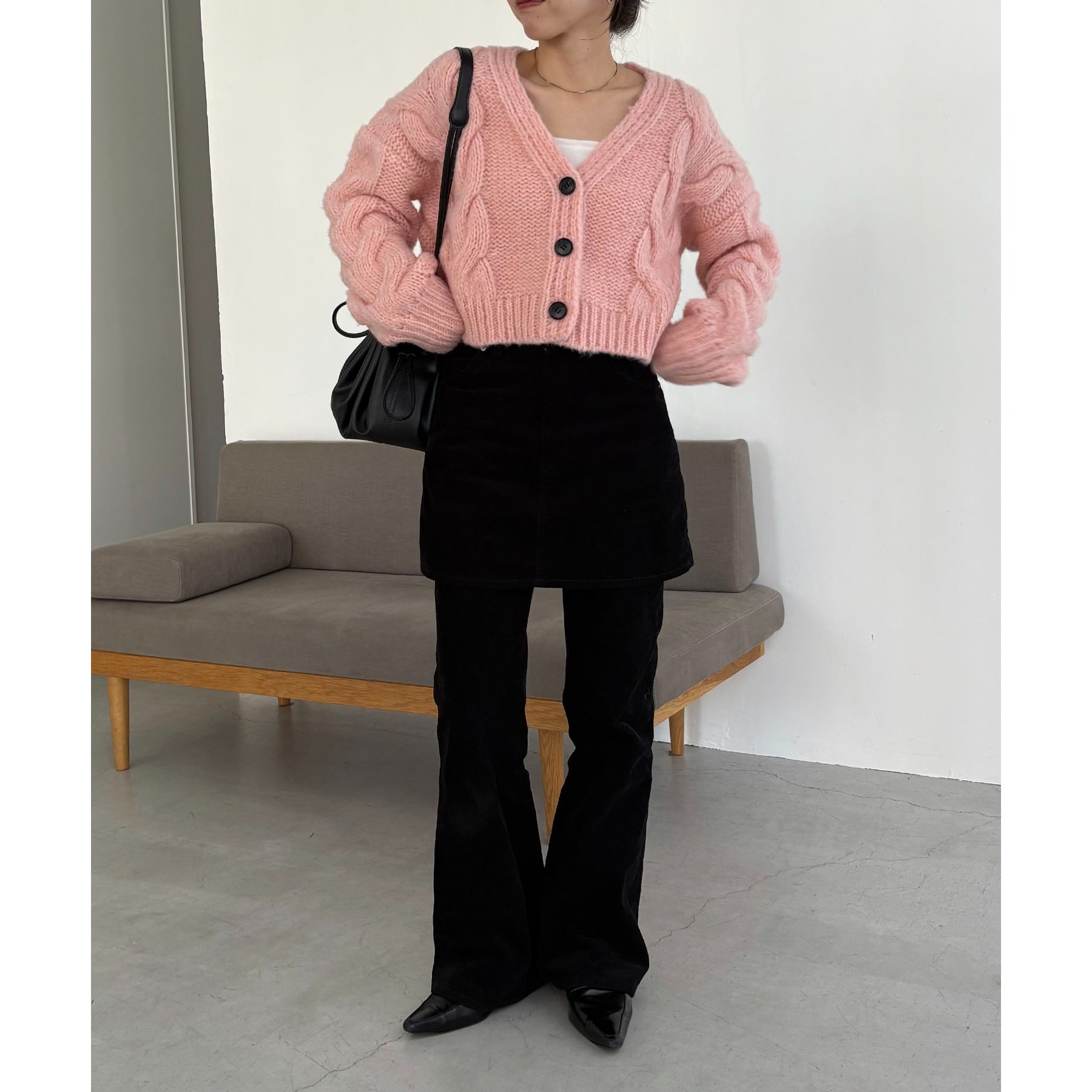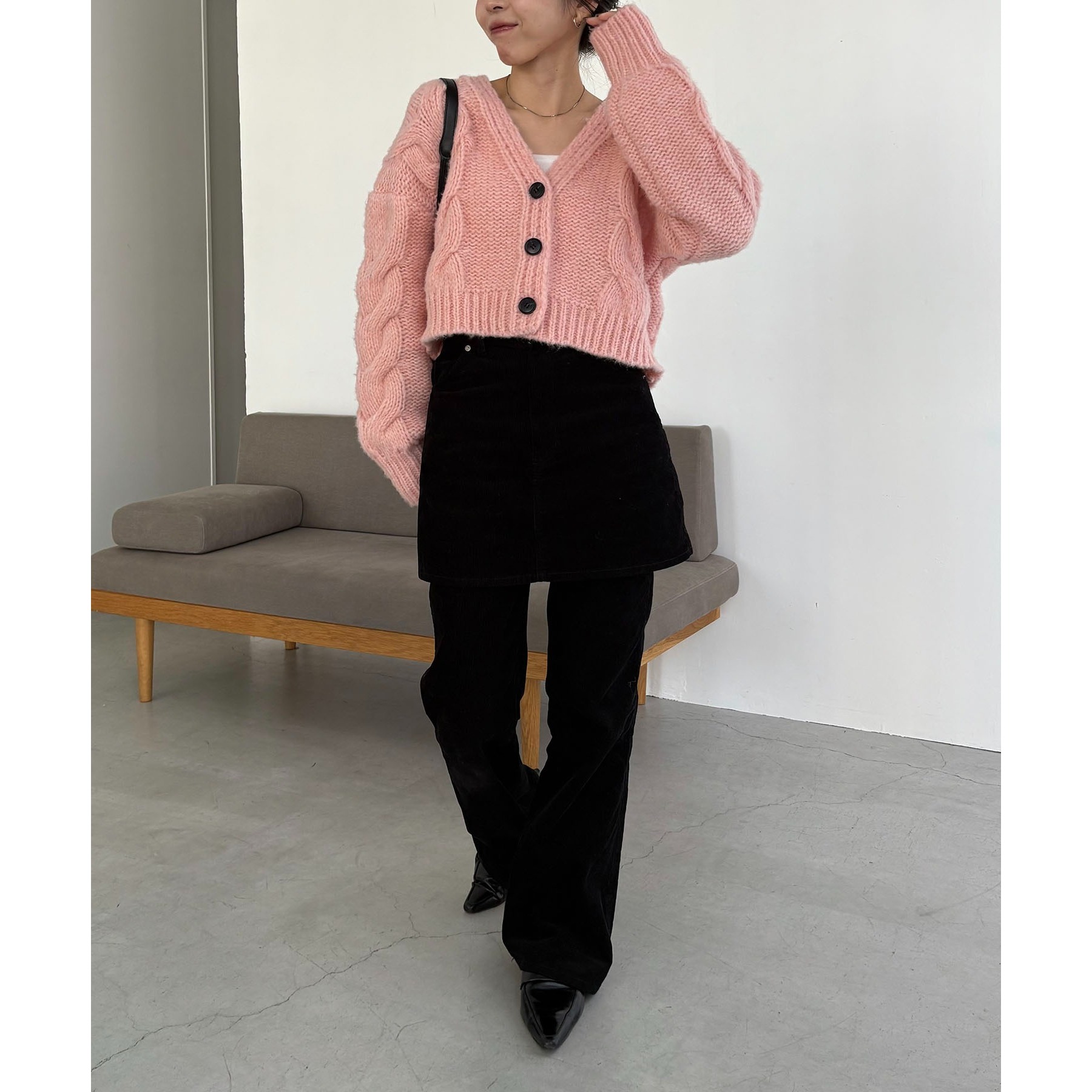 【ピンク着用アイテム】skirt:コーデュロイ台形スカート、pants:コーデュロイフレアパンツ