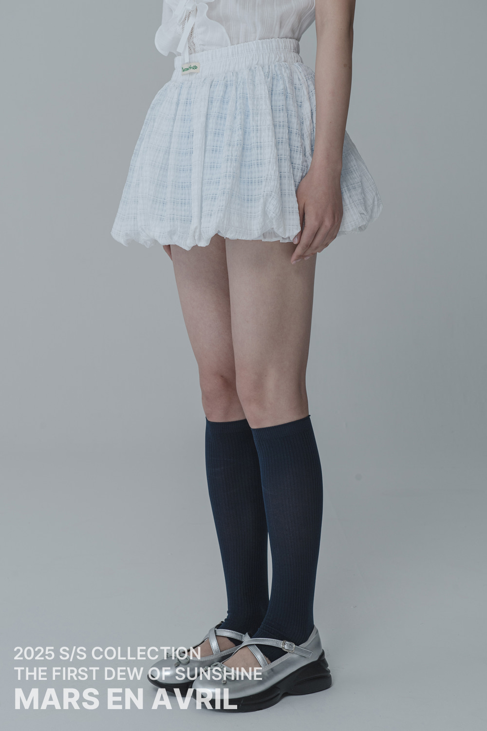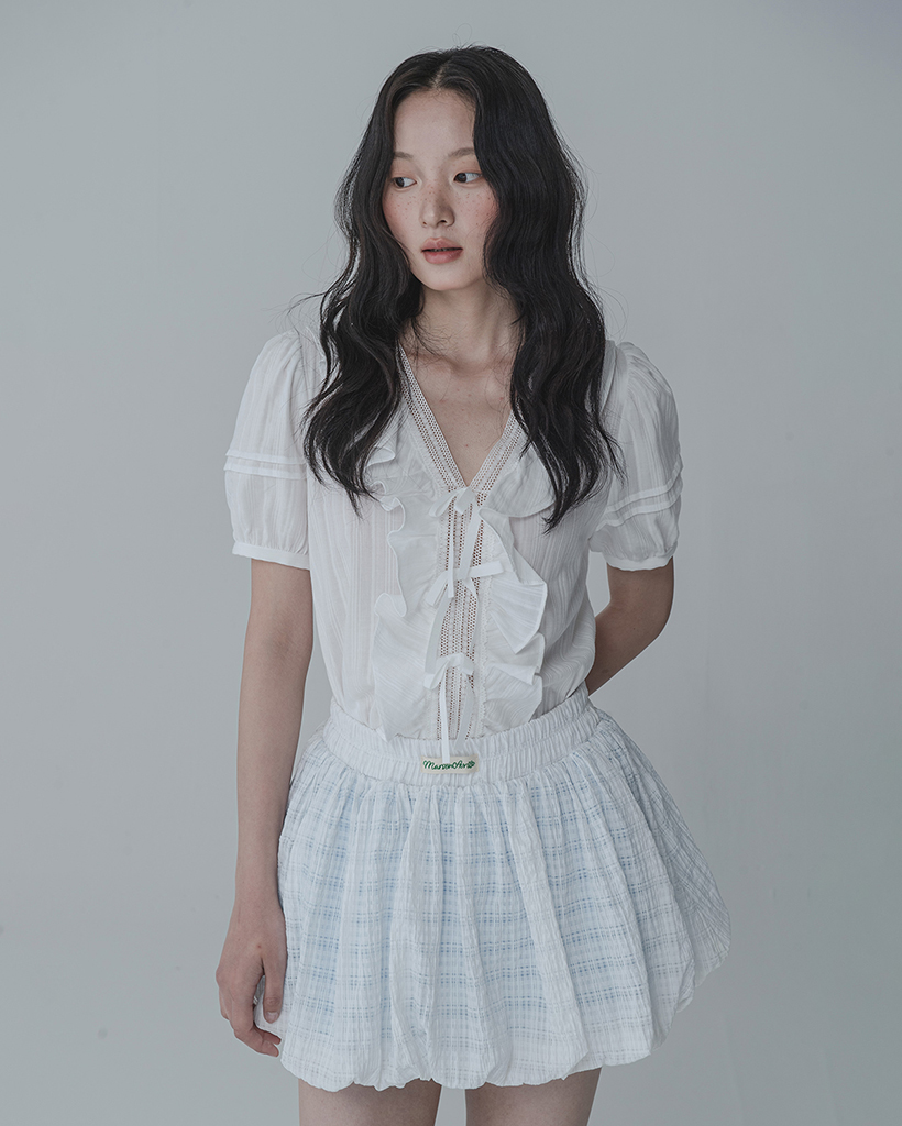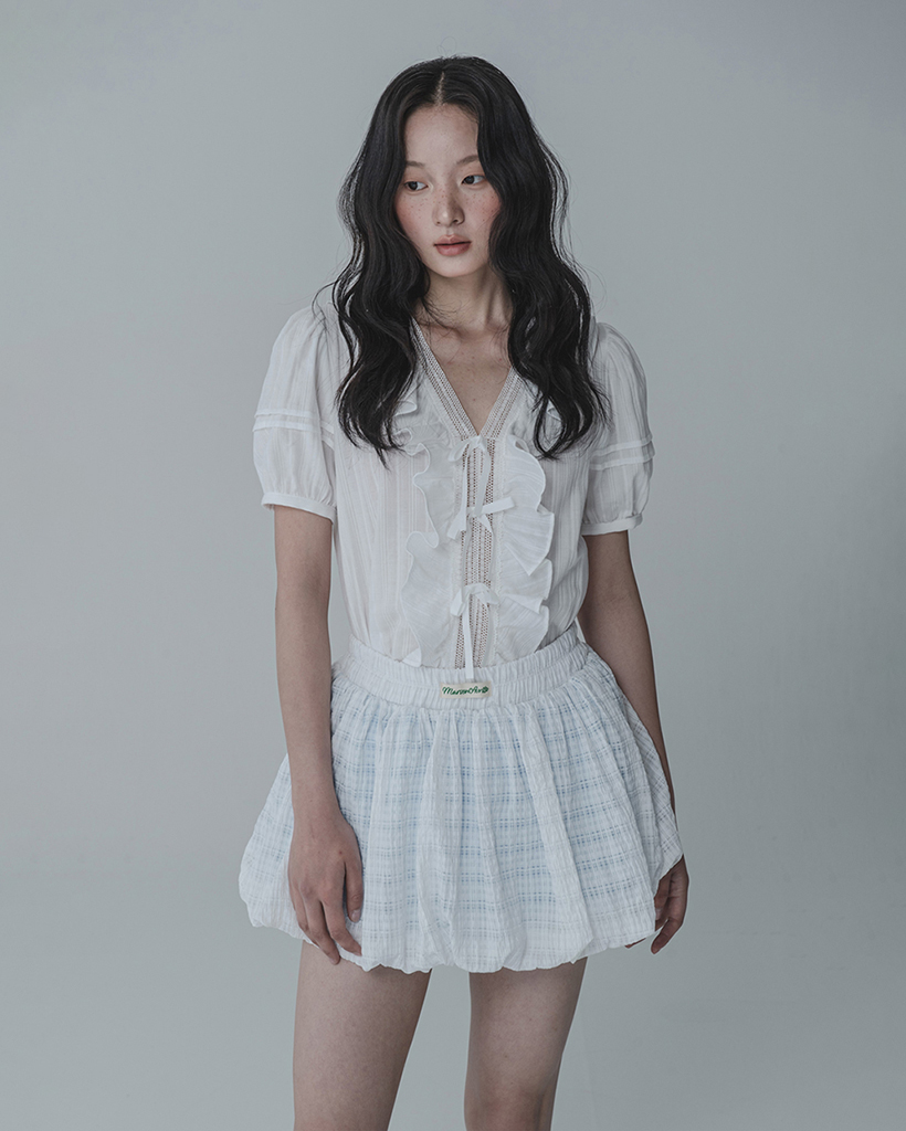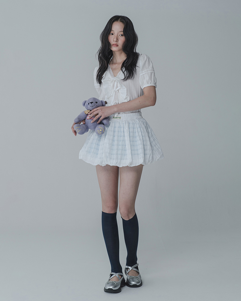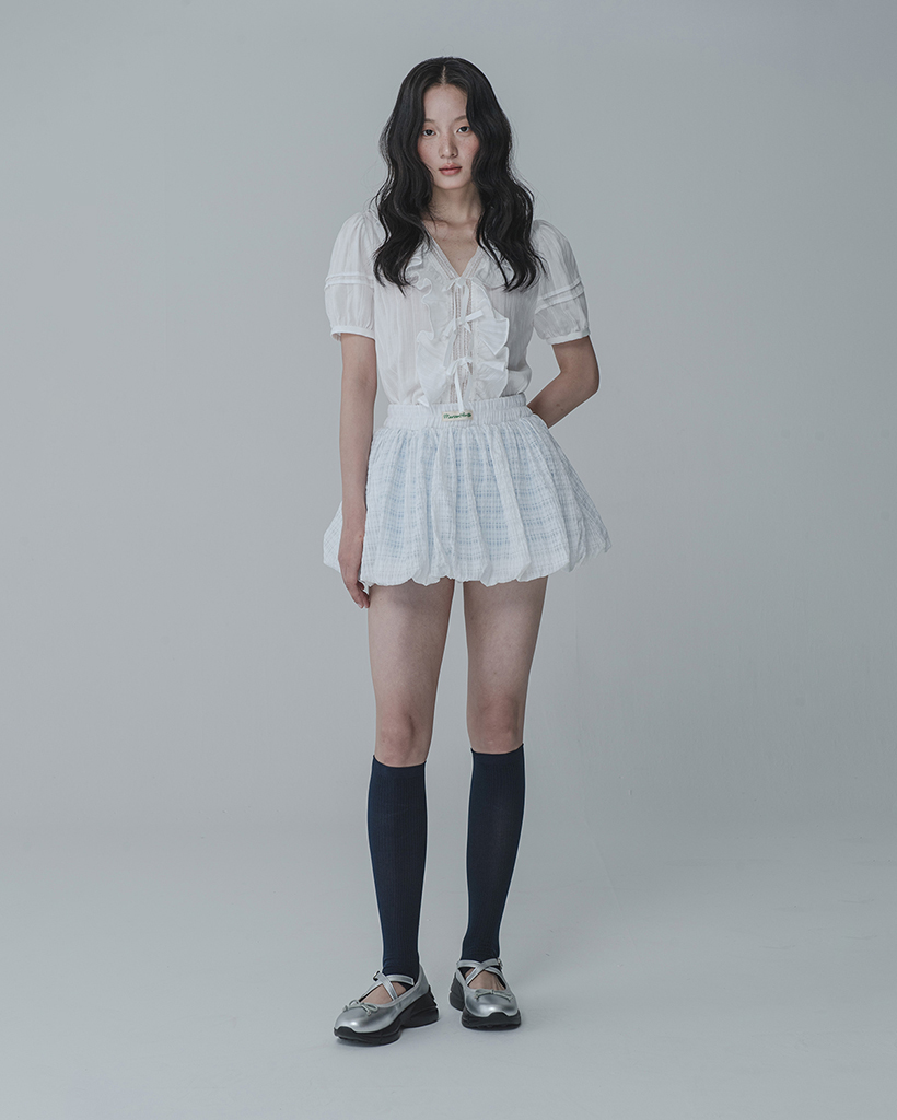 WAFFLE BALLOON SKIRT PANTS_WHITE BLUE