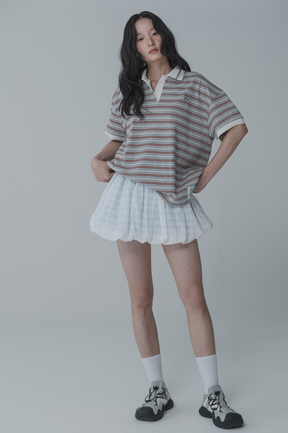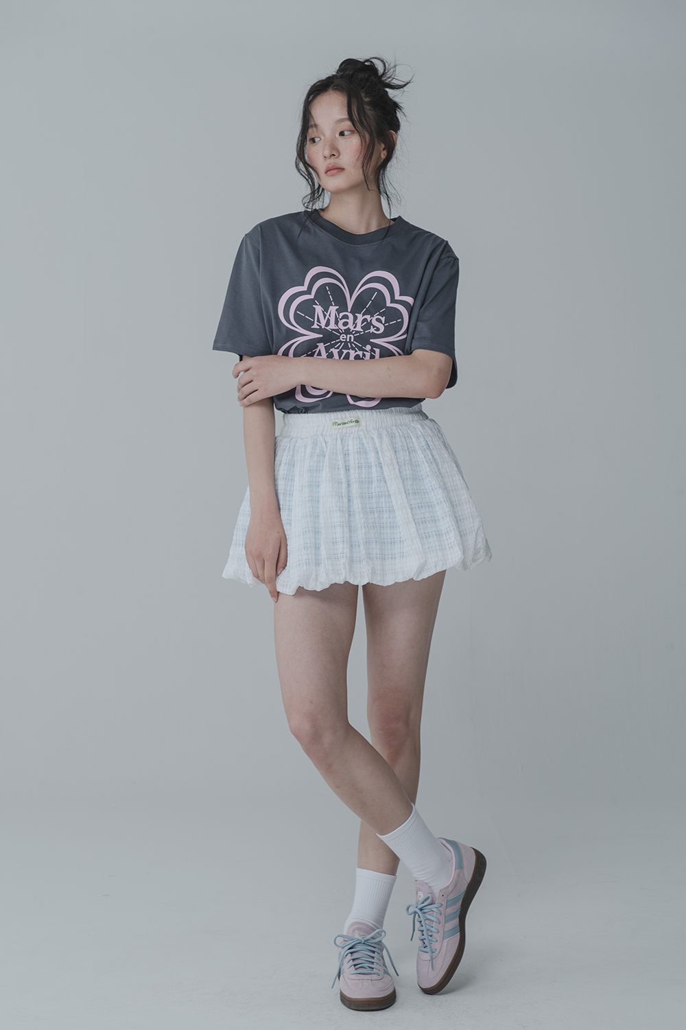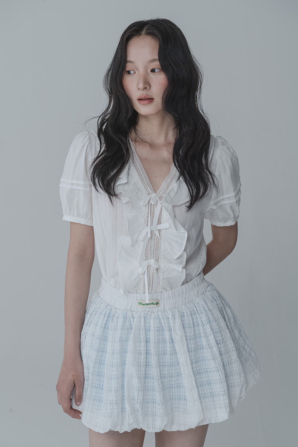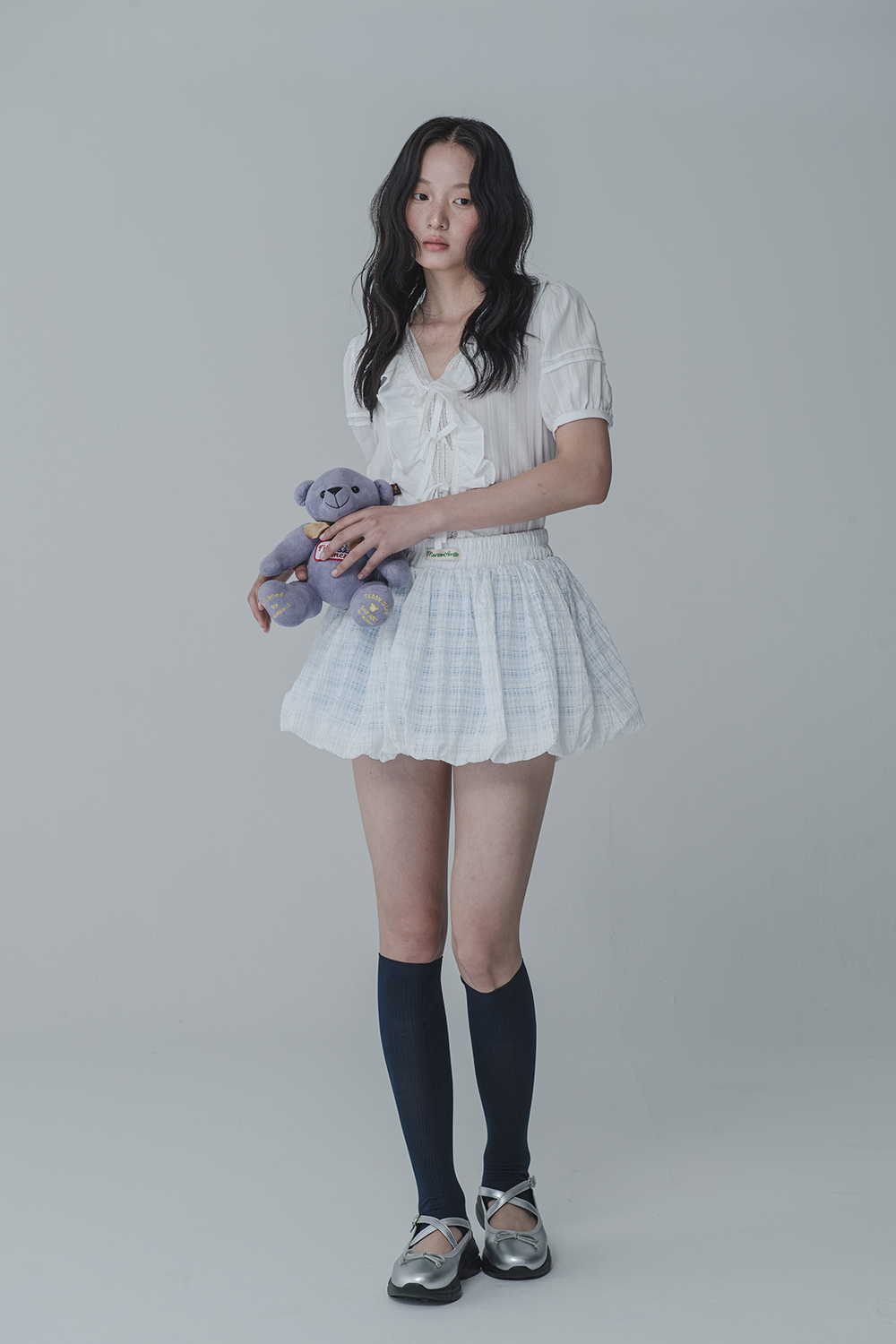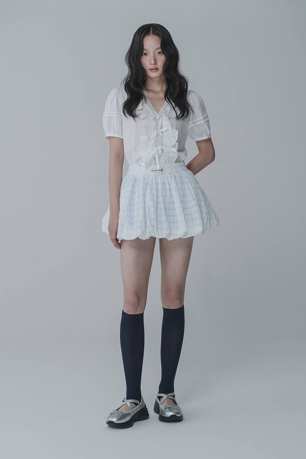 WAFFLE BALLOON SKIRT PANTS_WHITE BLUE