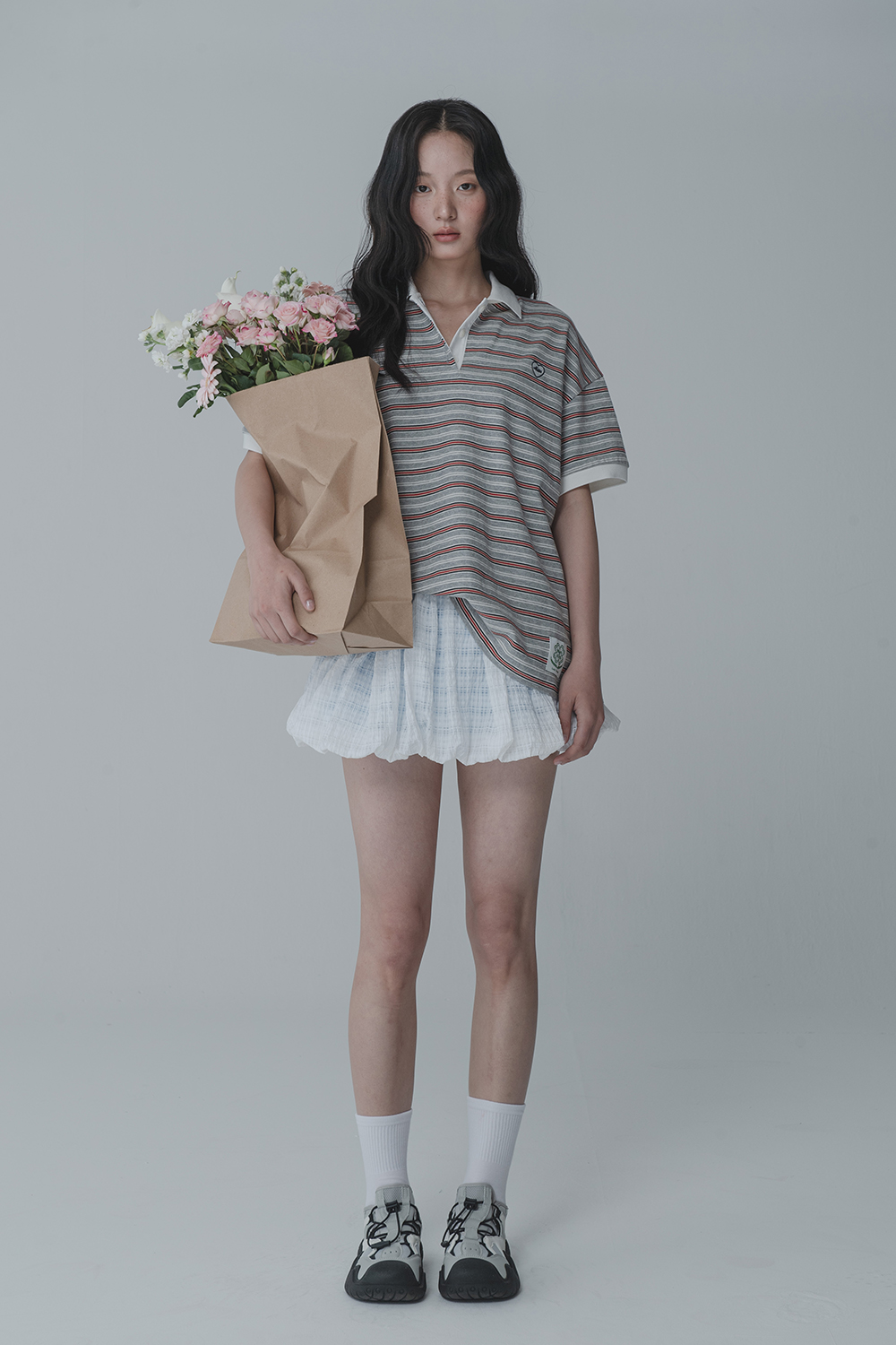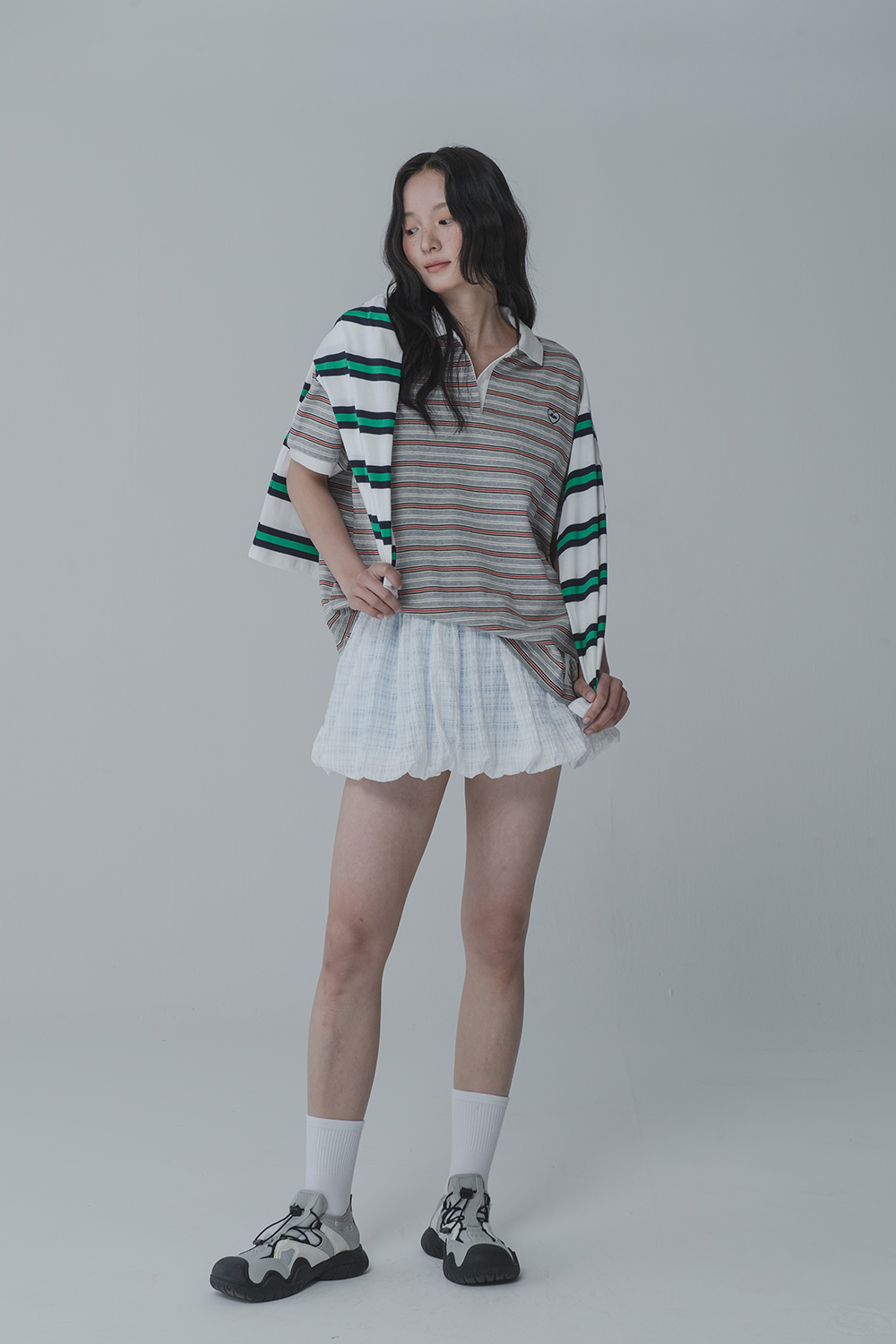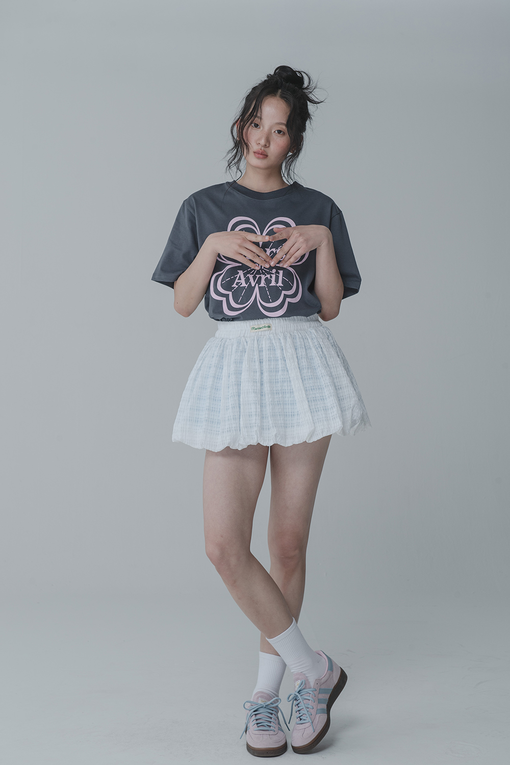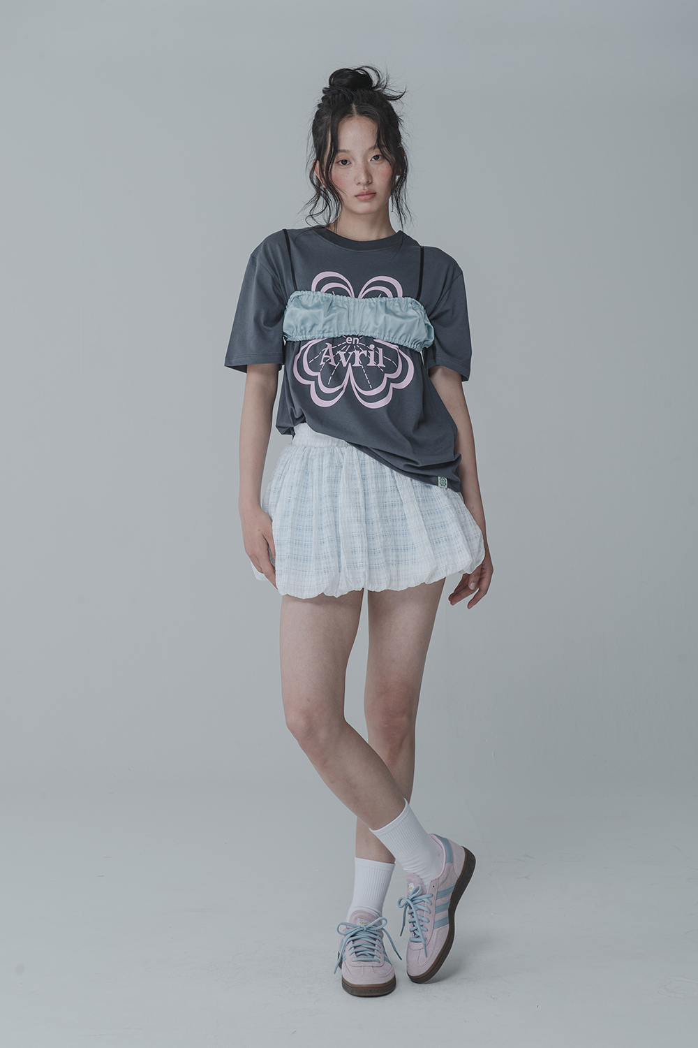 WAFFLE BALLOON SKIRT PANTS_WHITE BLUE