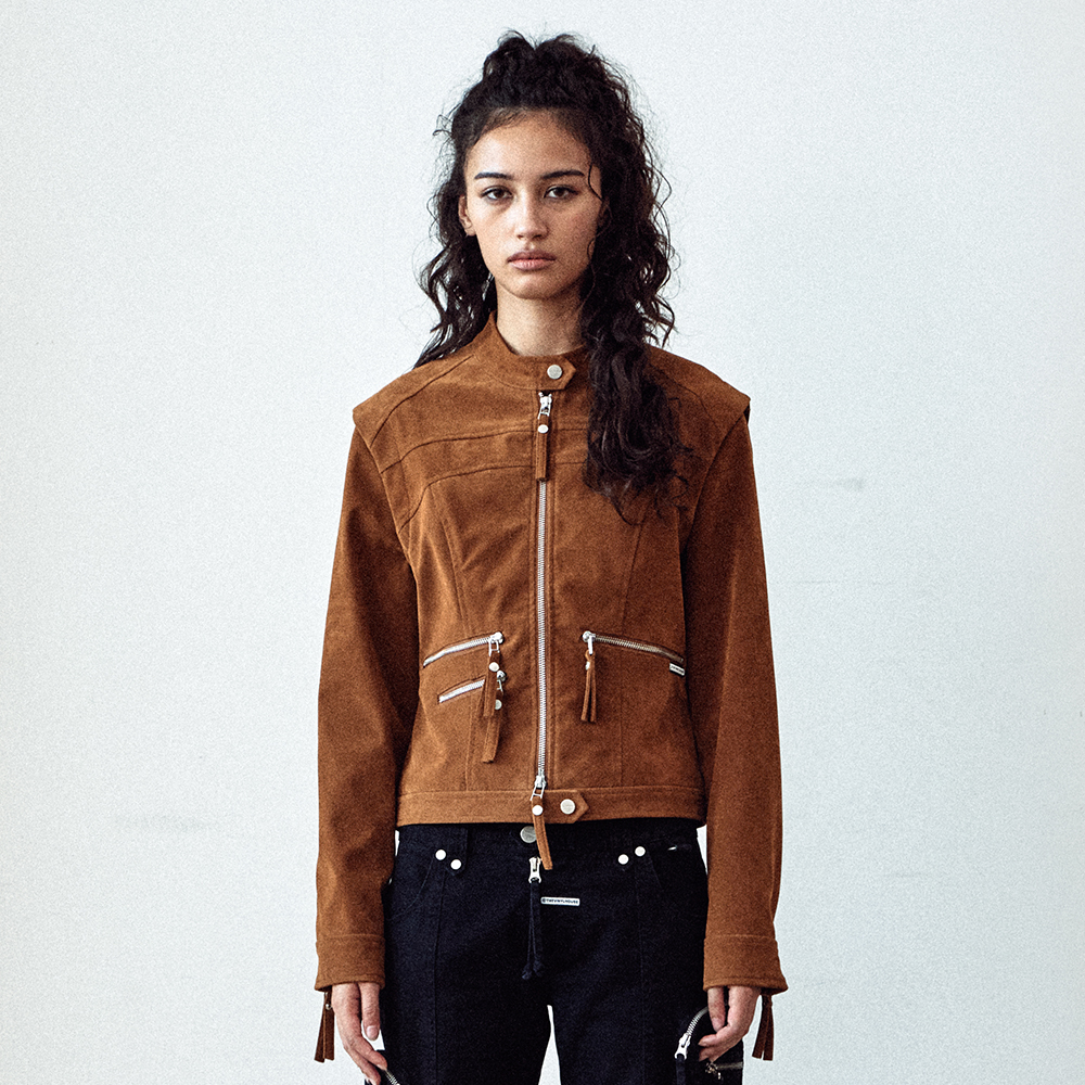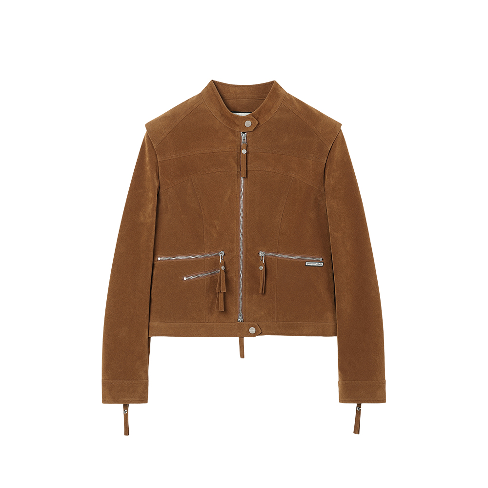 NON COLLAR SUEDE JACKET(W) BROWN