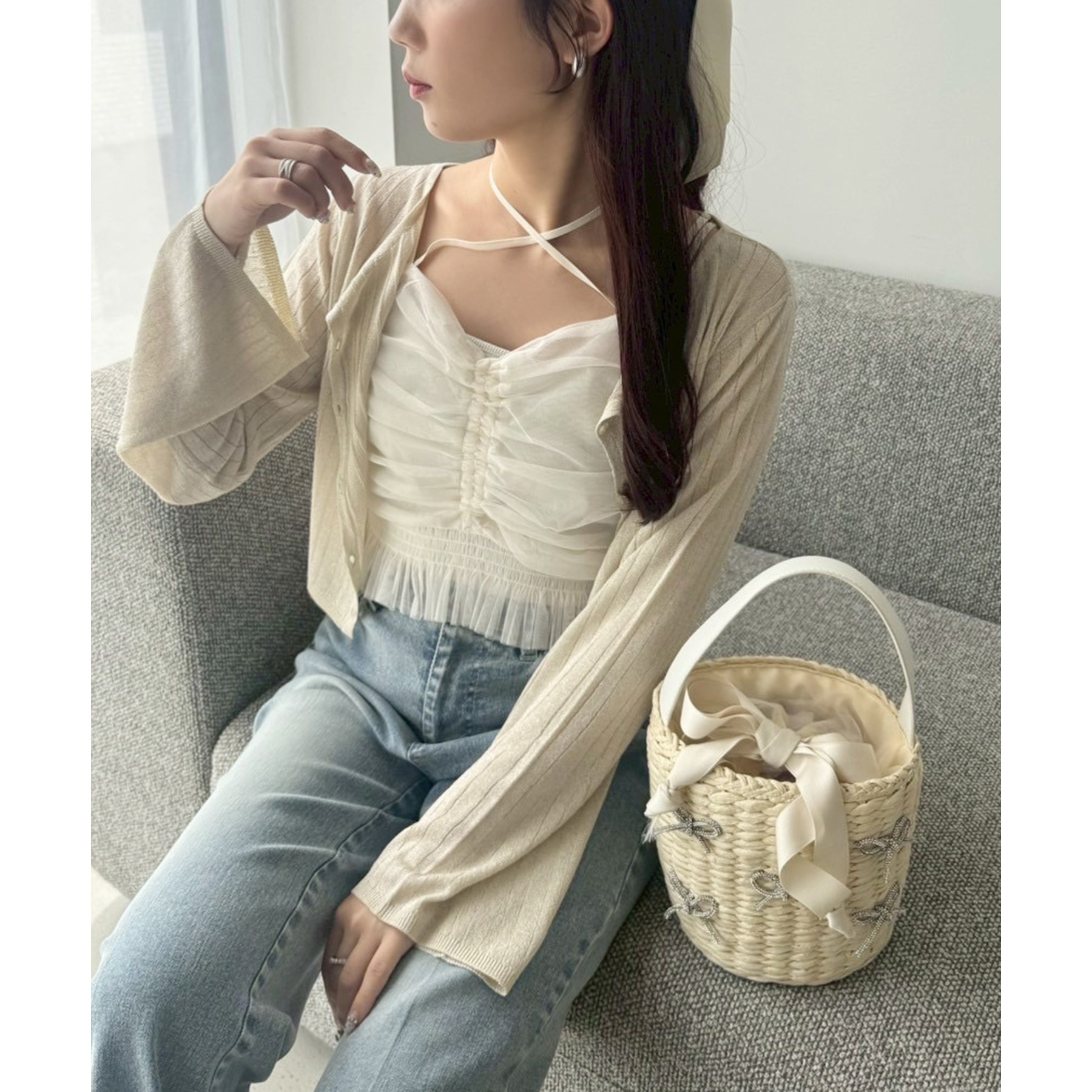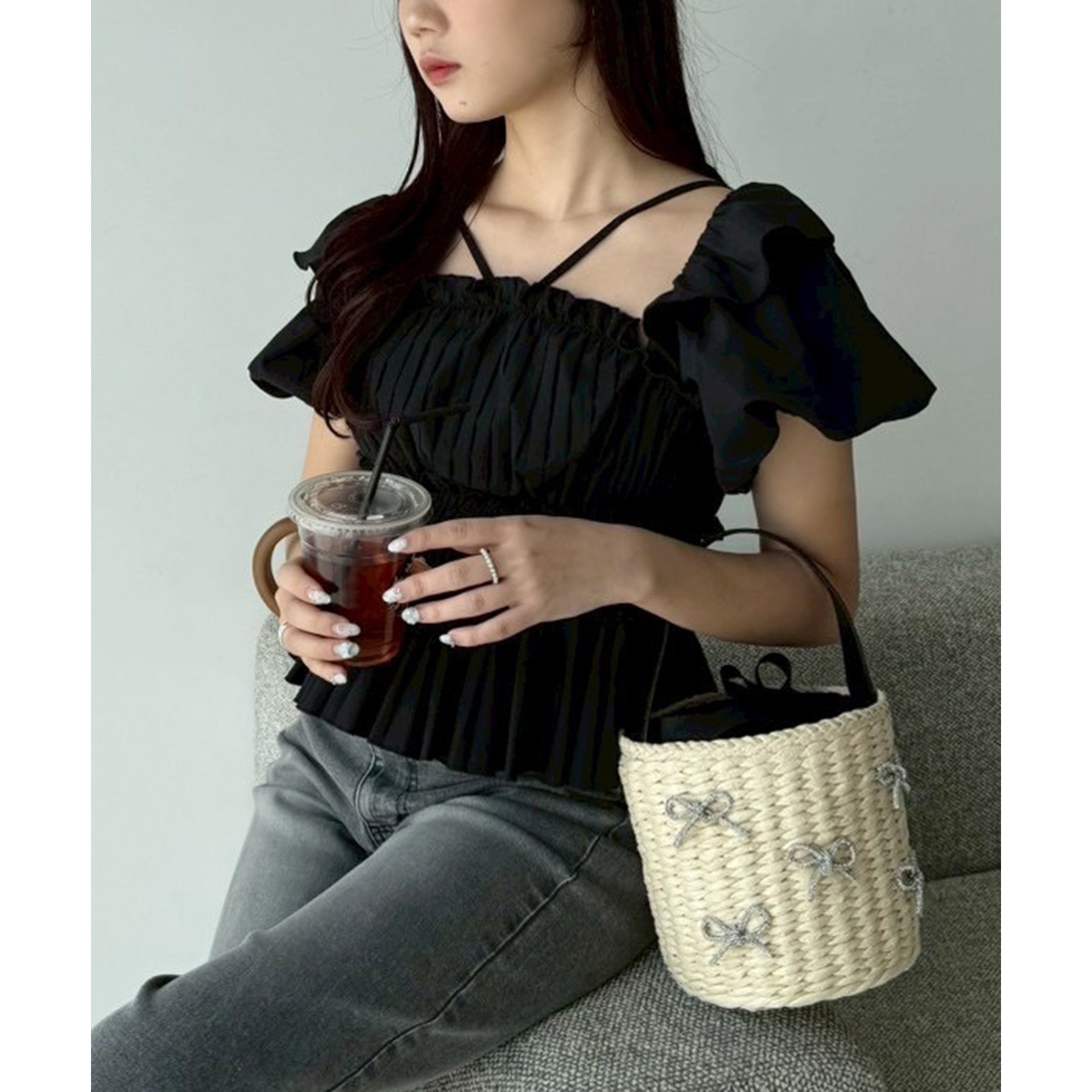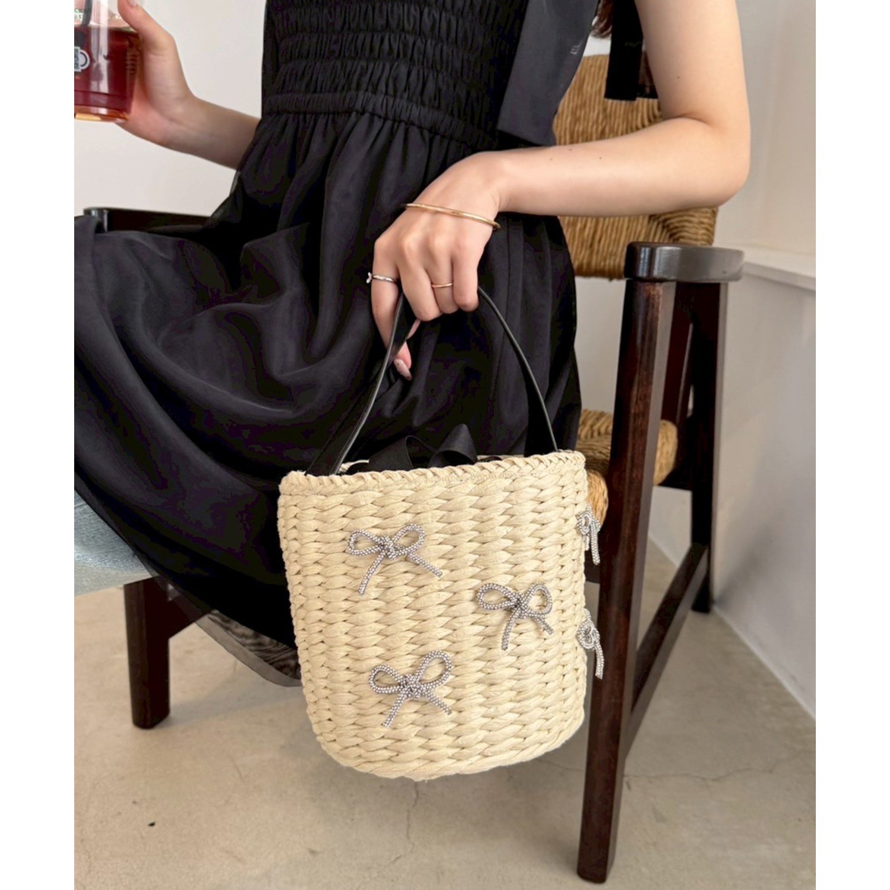 ころんとした円柱型シルエットが可愛らしく、持つだけで季節感のあるスタイリングが完成するカゴバッグです。
