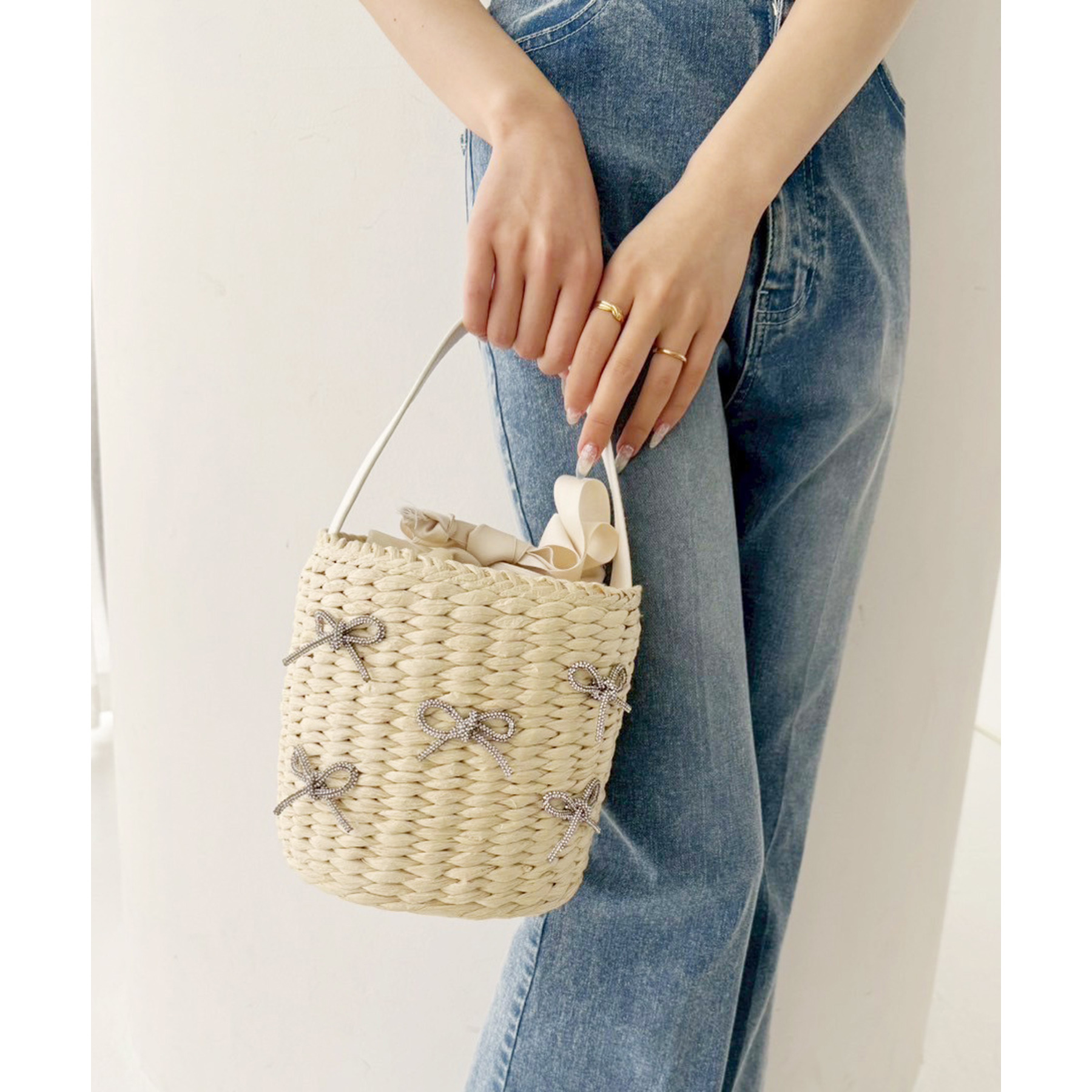 キラキラリボンがアクセントのカゴバッグ