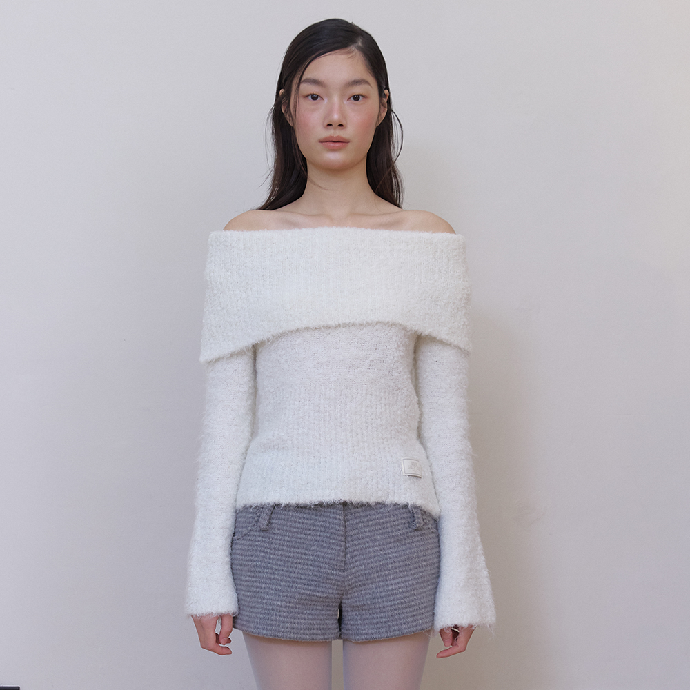 [K-POPアイドル着用] COZY WOOL OFF SHOULDER KNIT (IVORY)