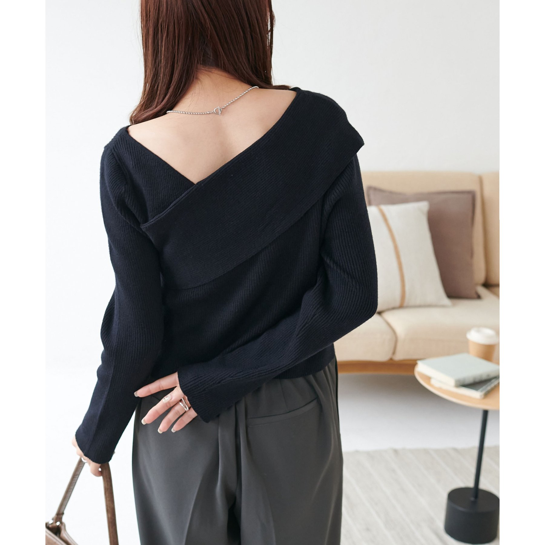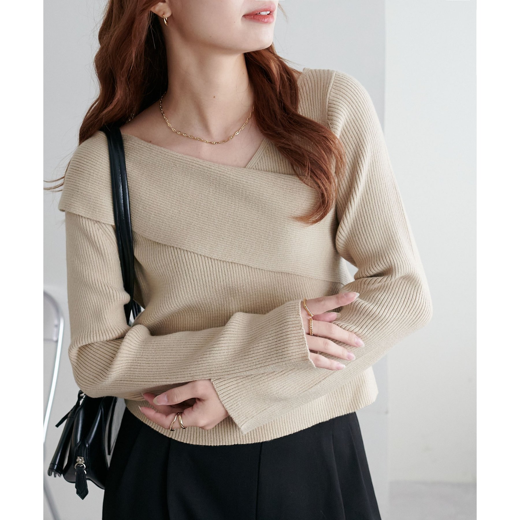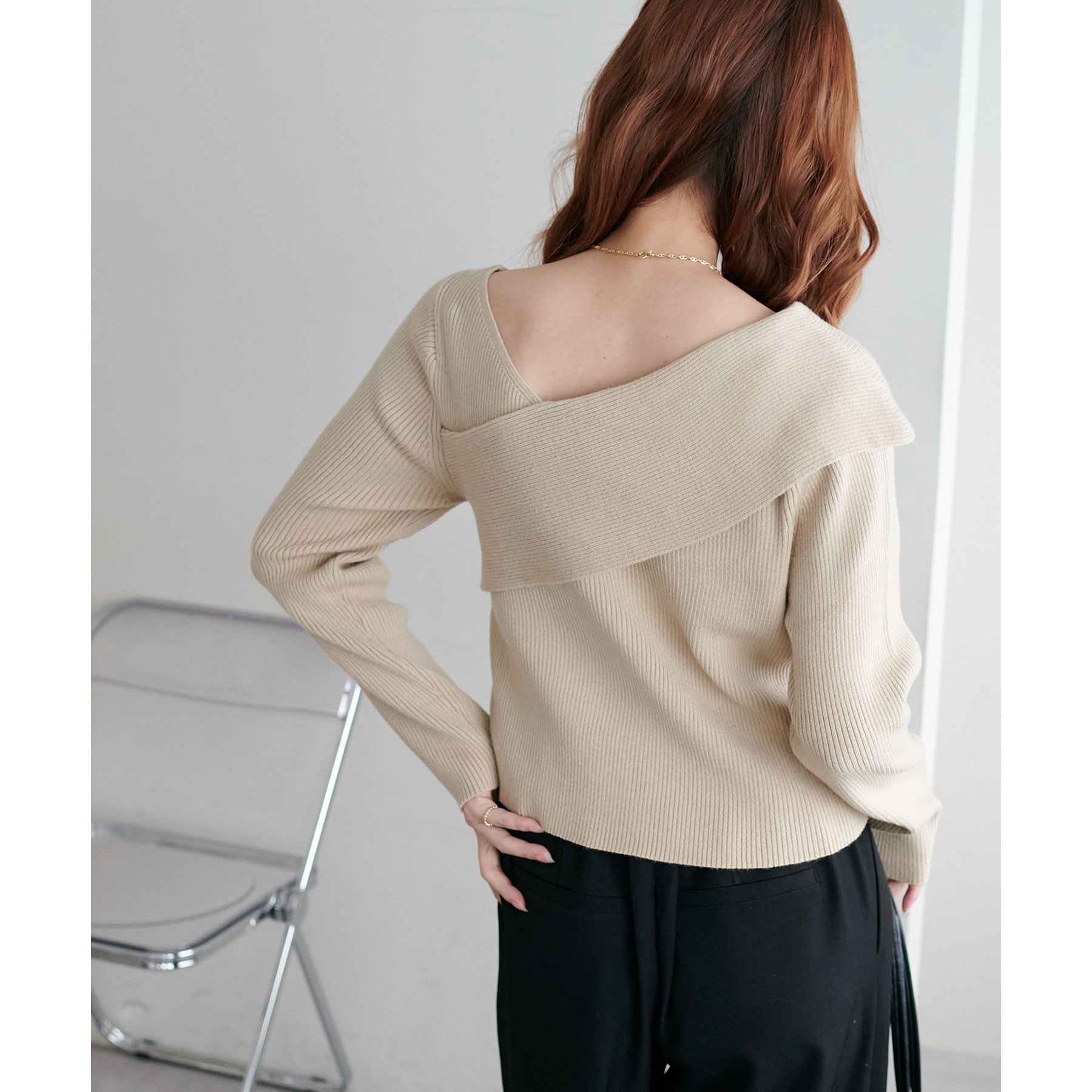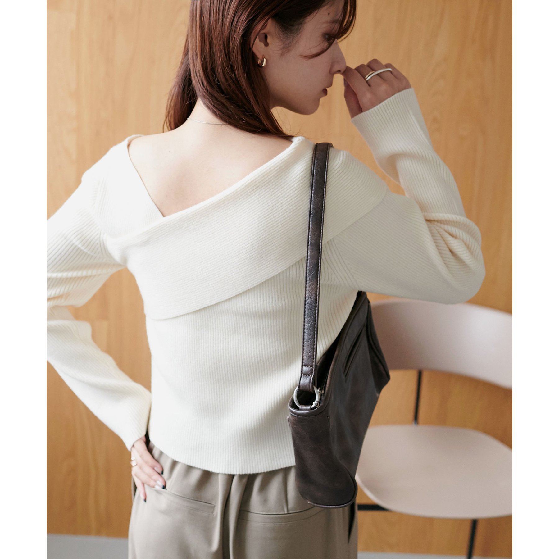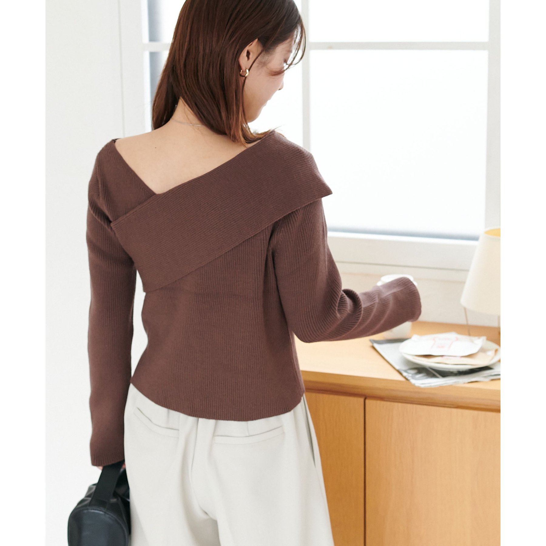・アシンメトリーな首元デザインでヘルシーな程よい肌見せ
