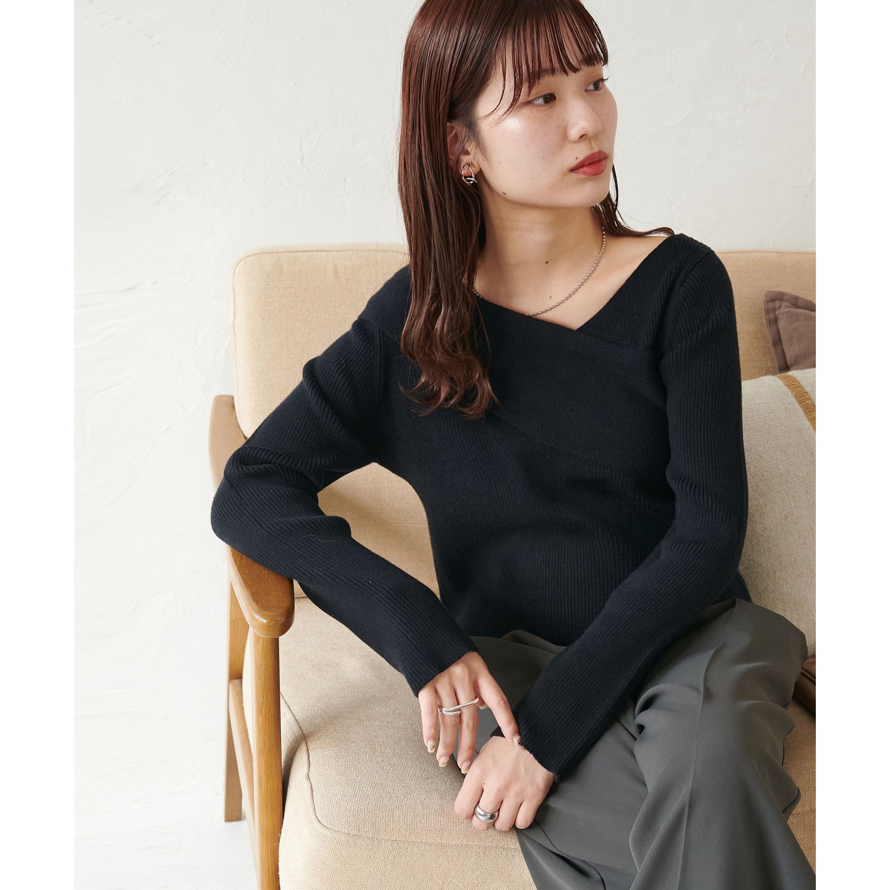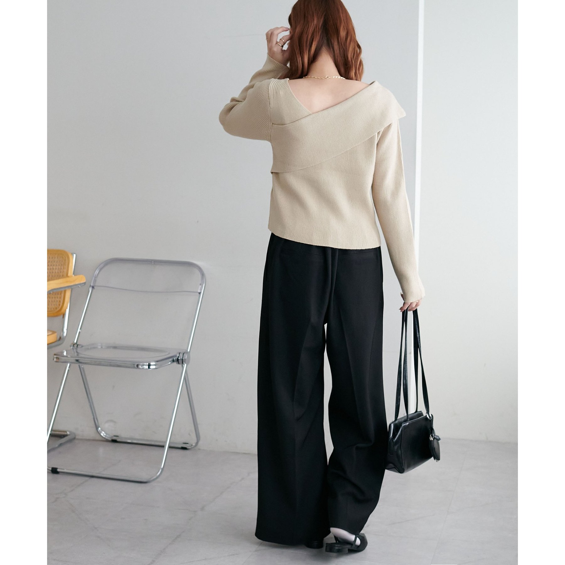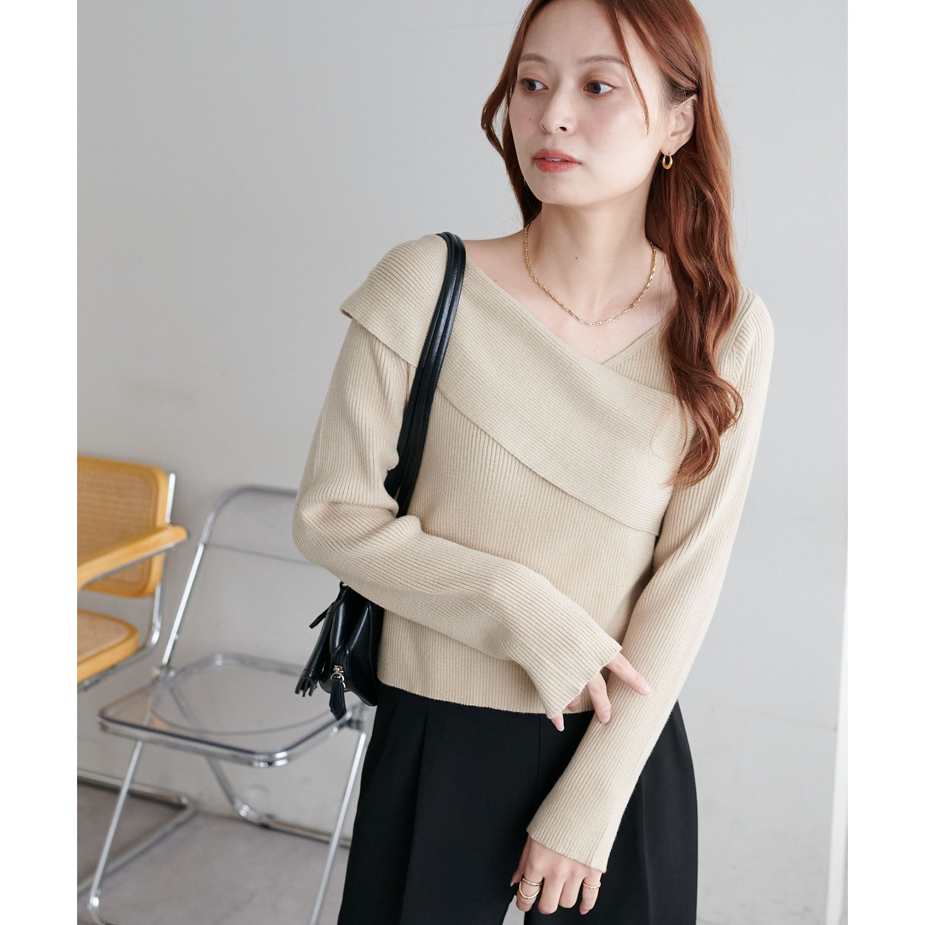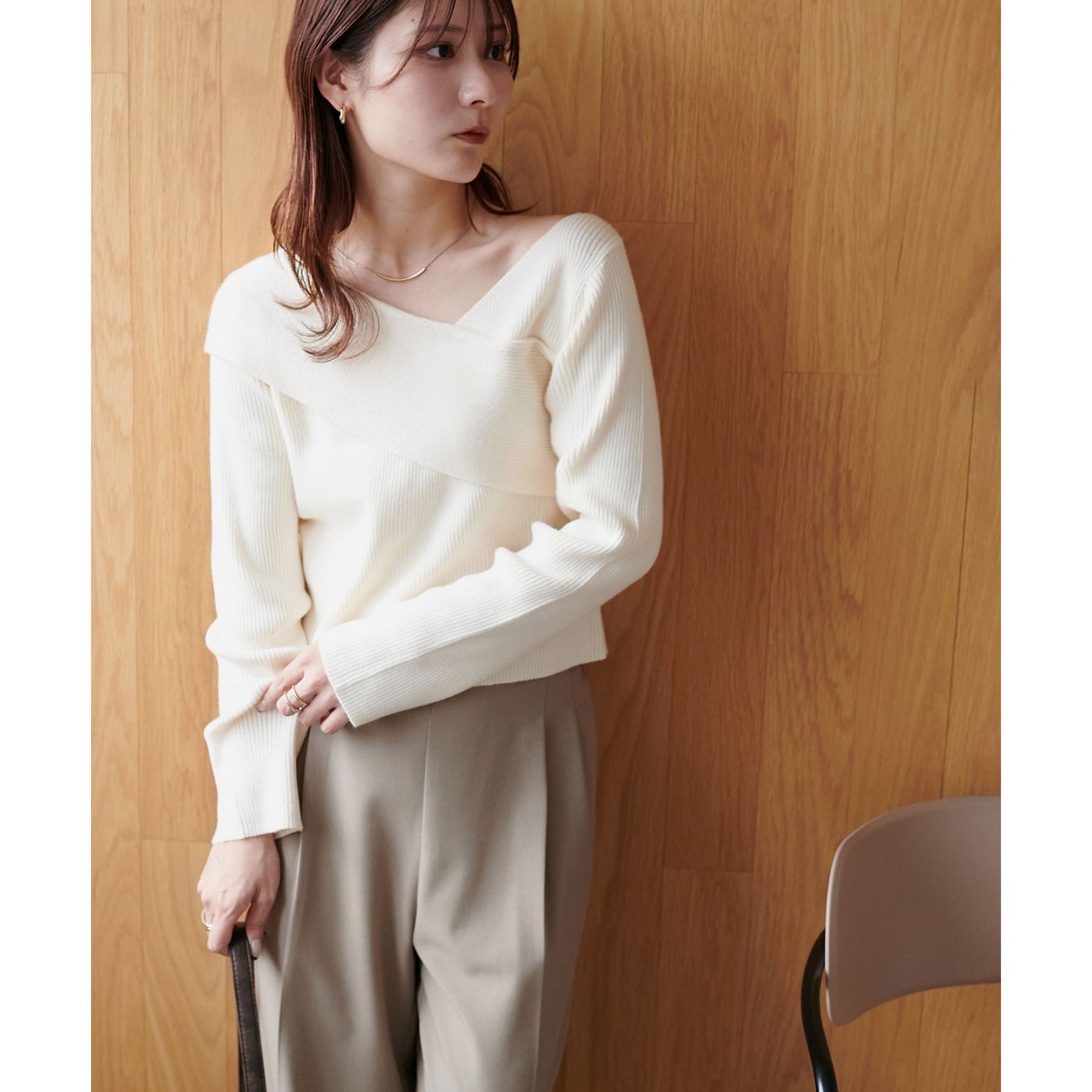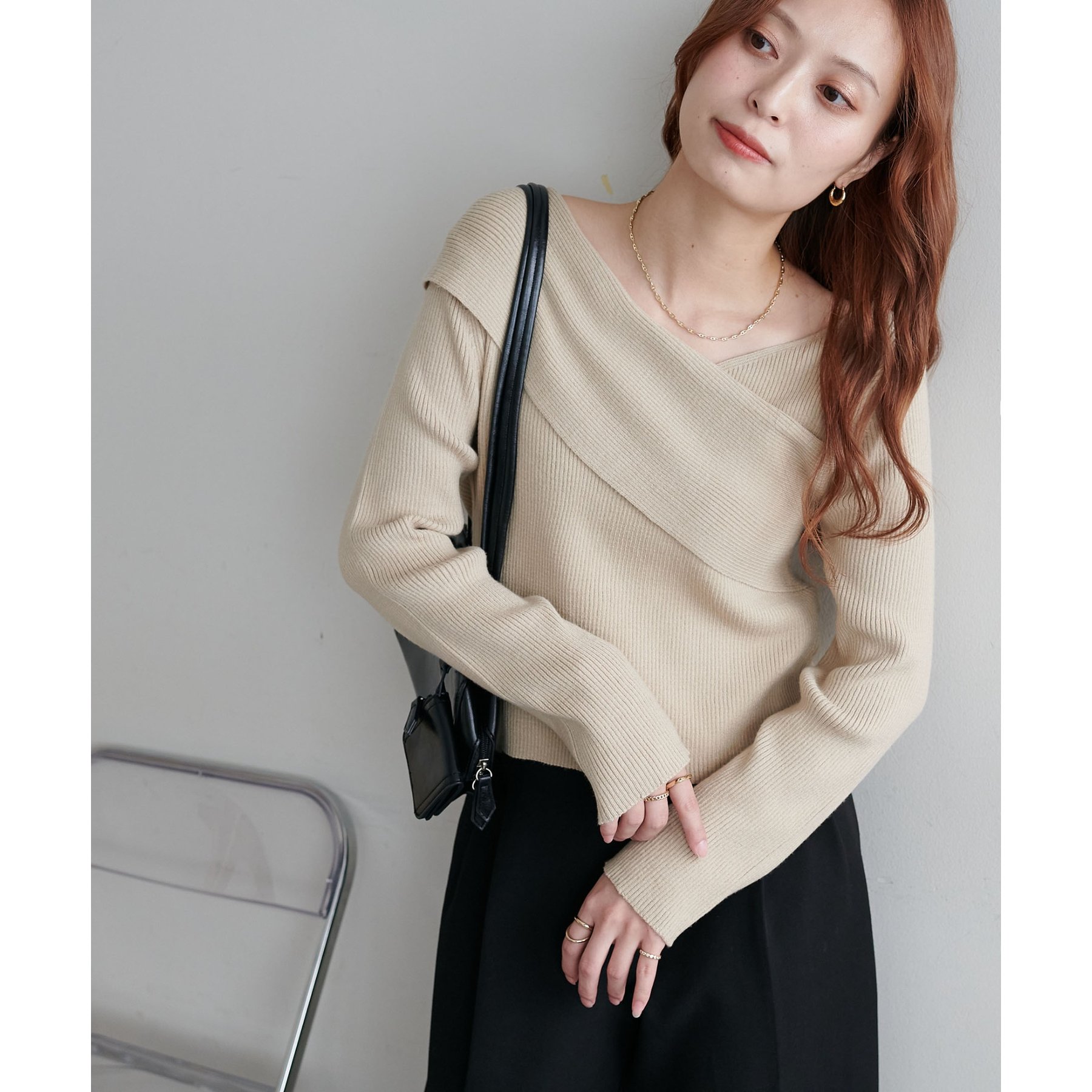 ・アシンメトリーな首元デザインでヘルシーな程よい肌見せ
