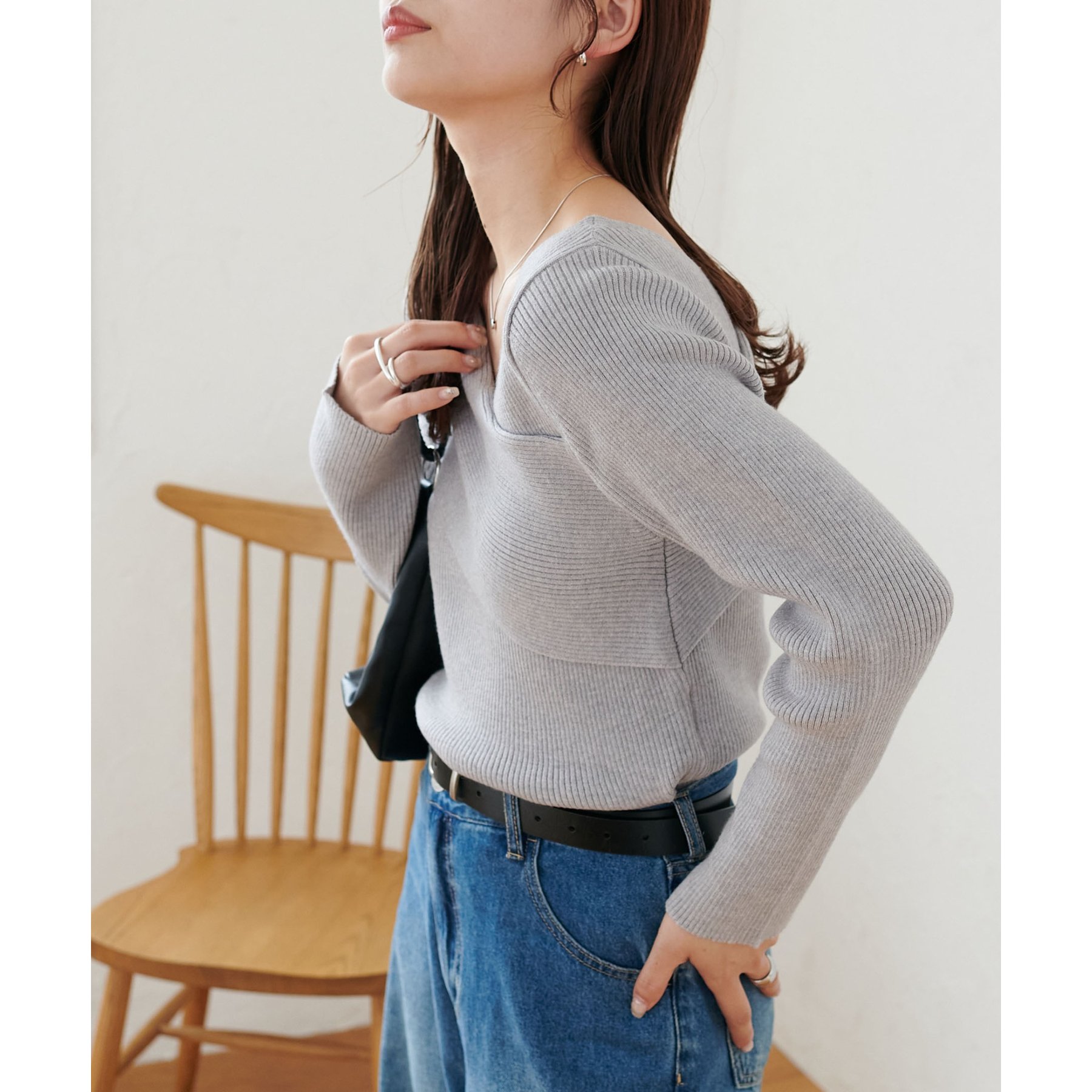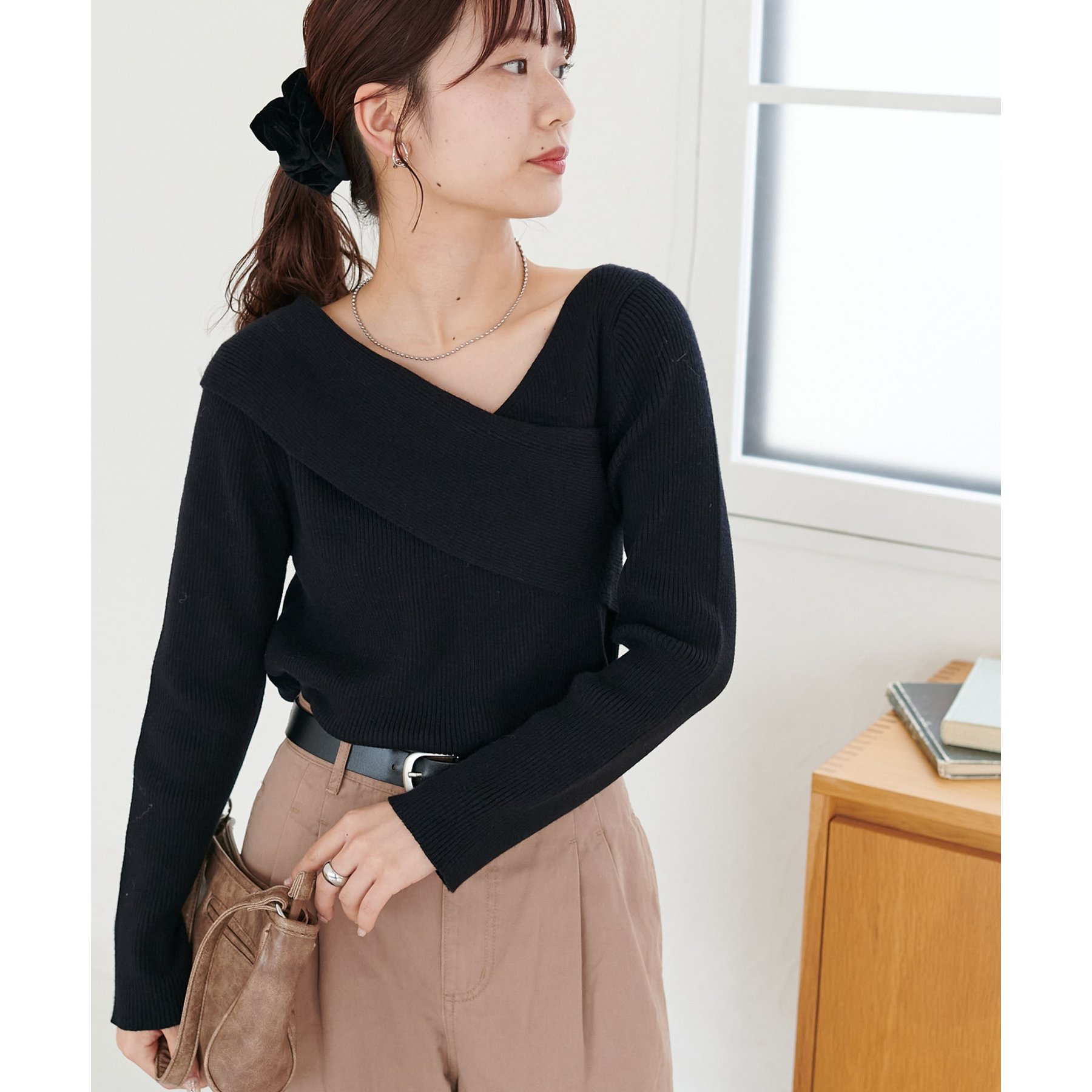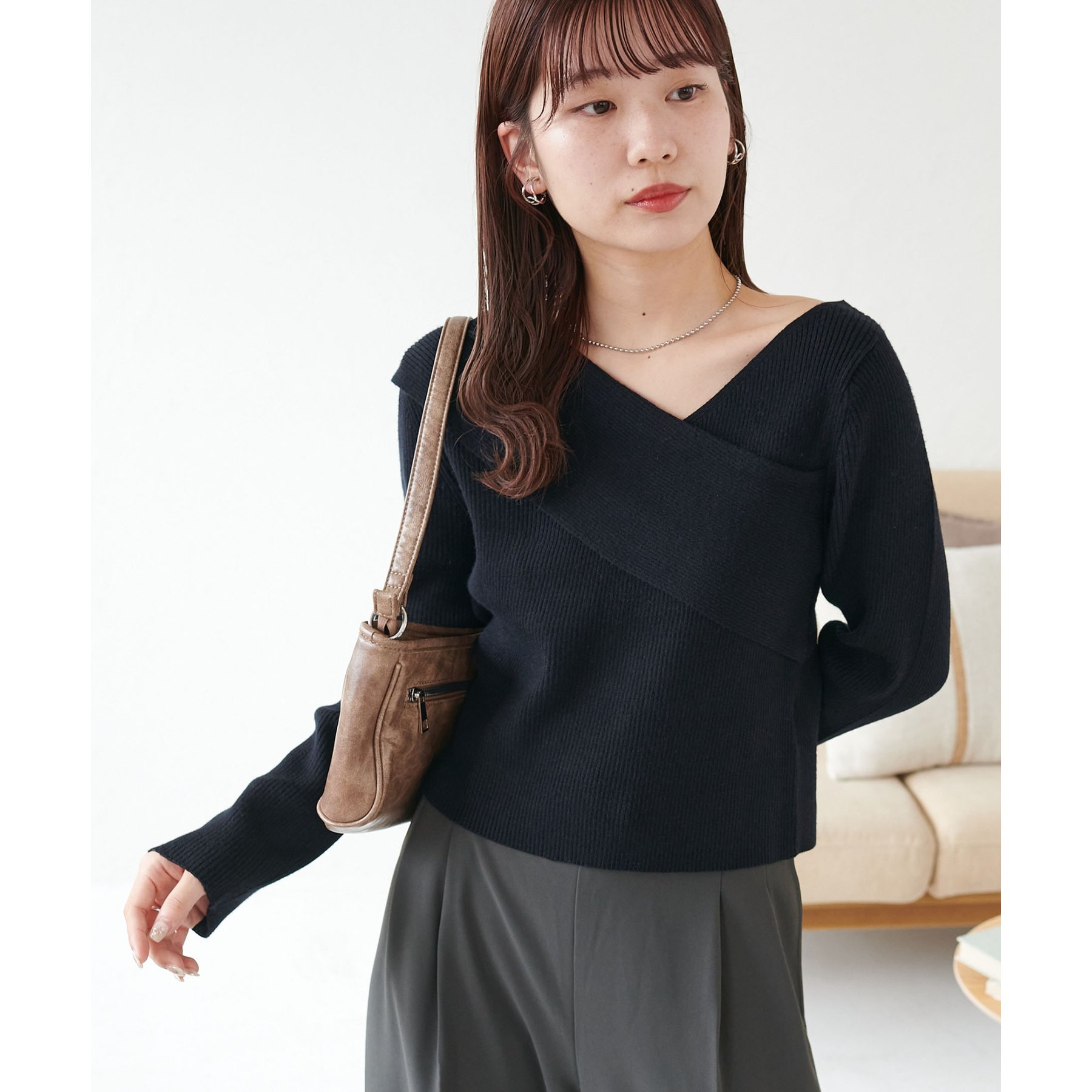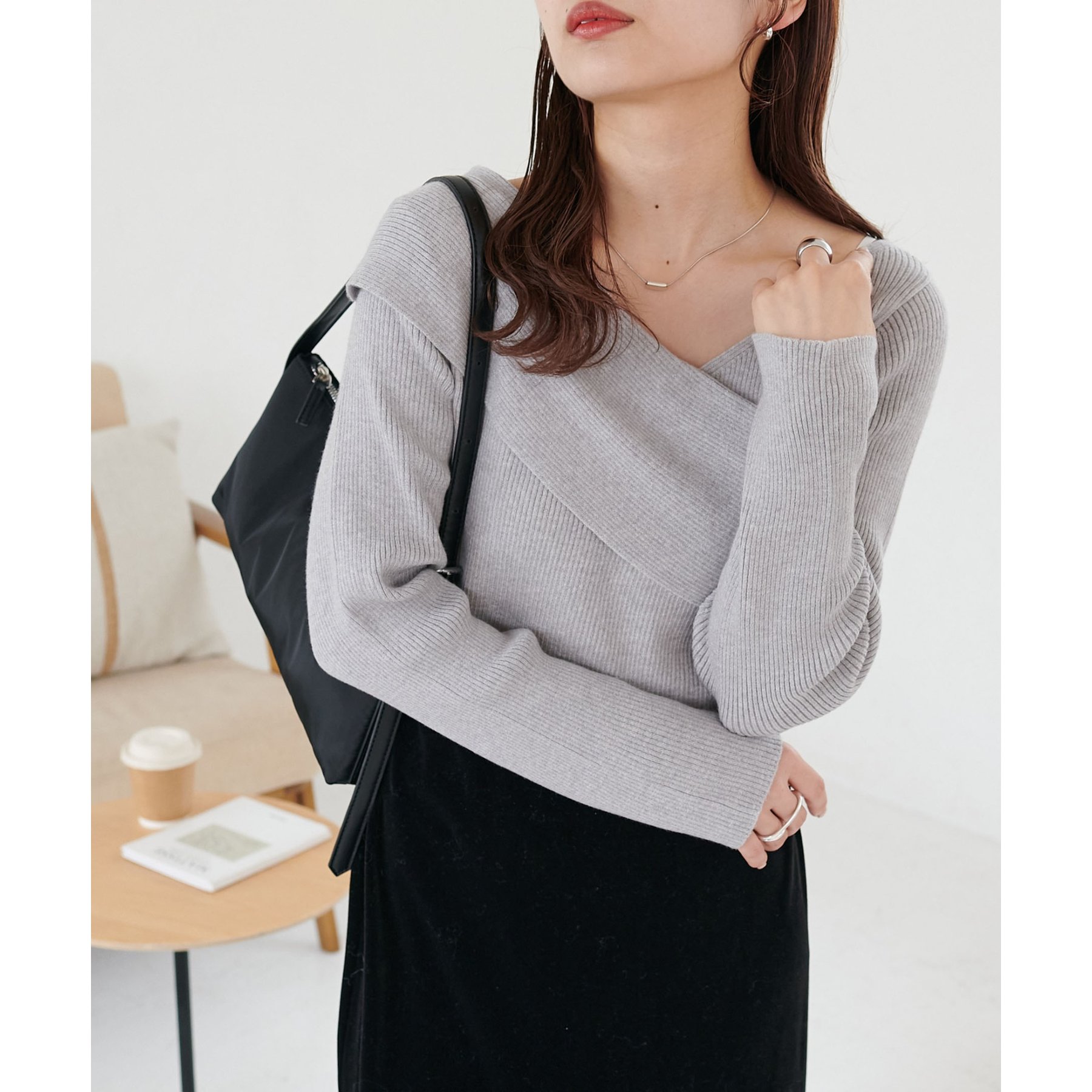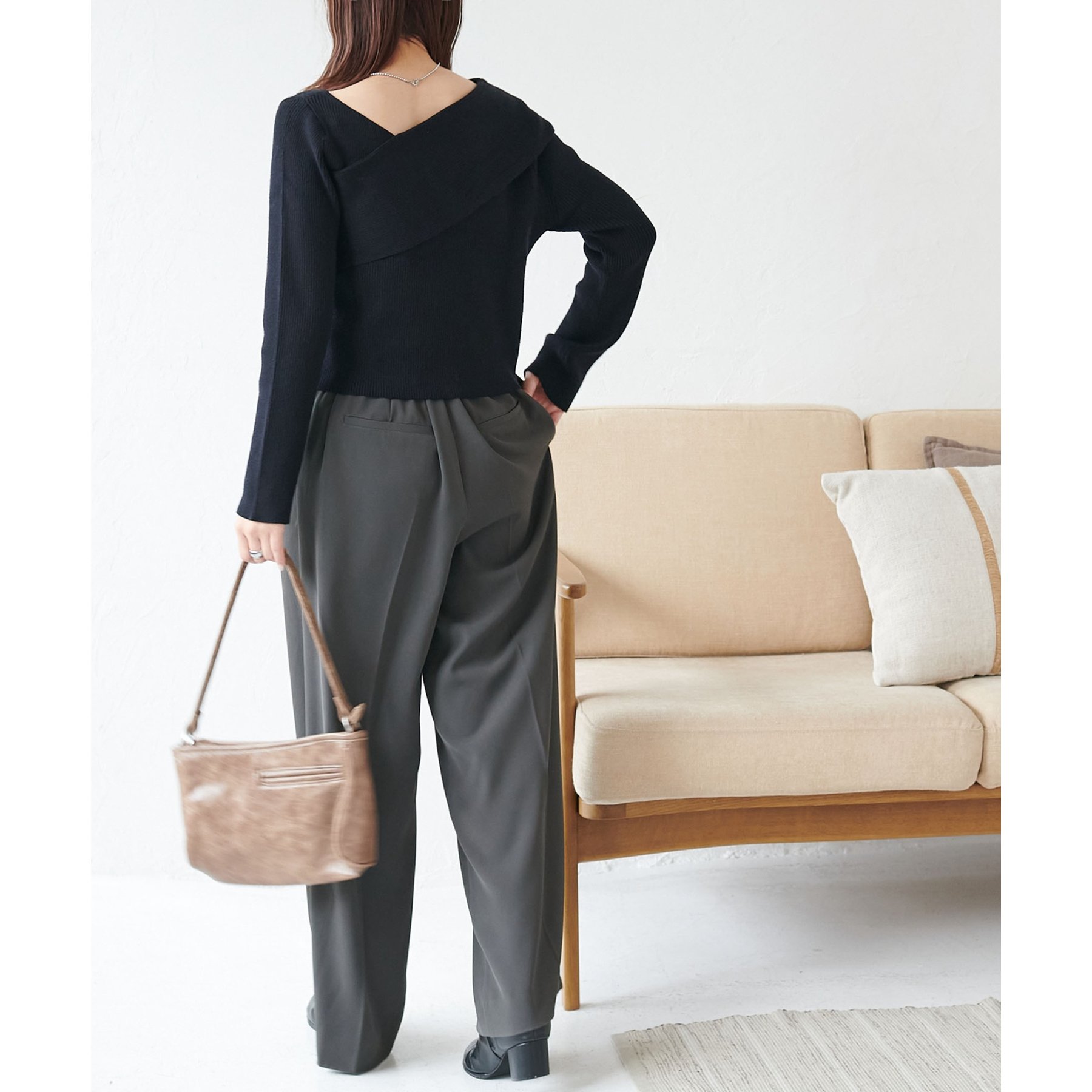 ・アシンメトリーな首元デザインでヘルシーな程よい肌見せ