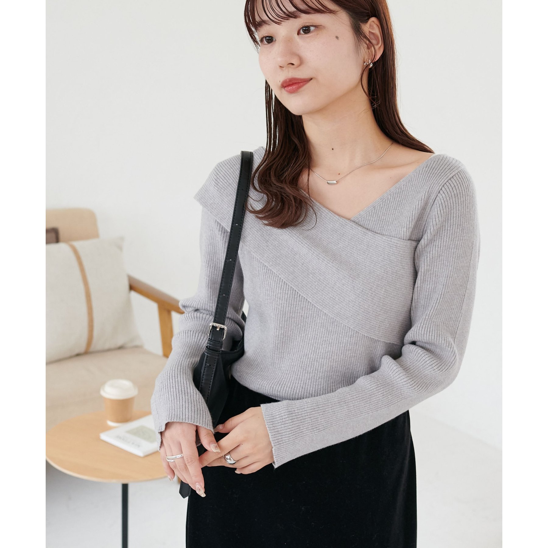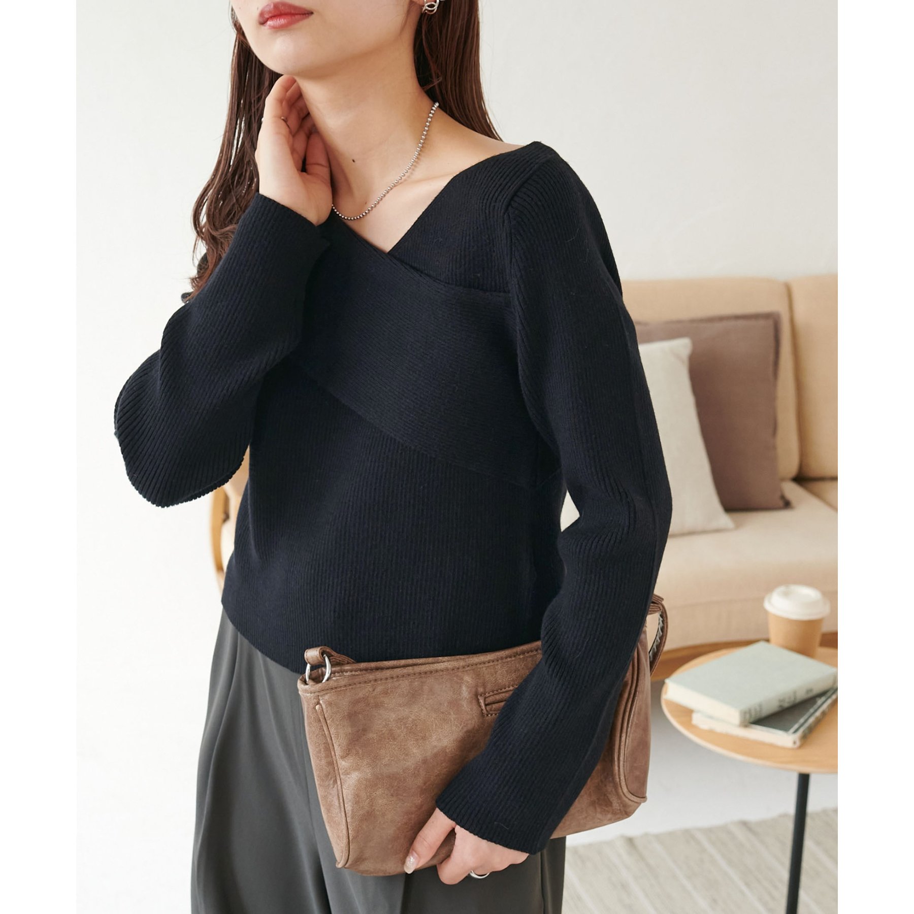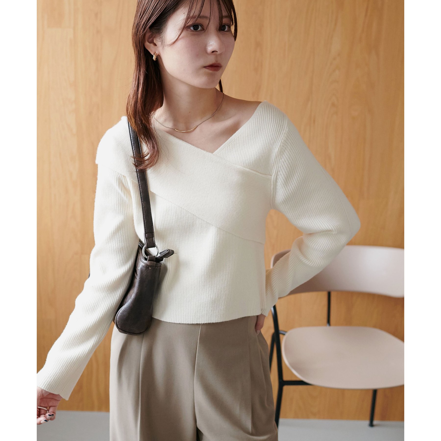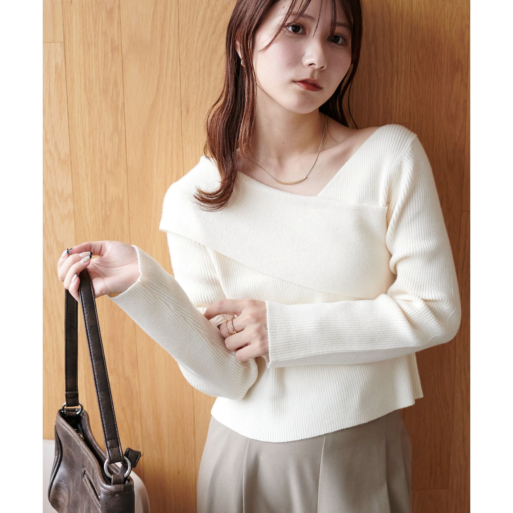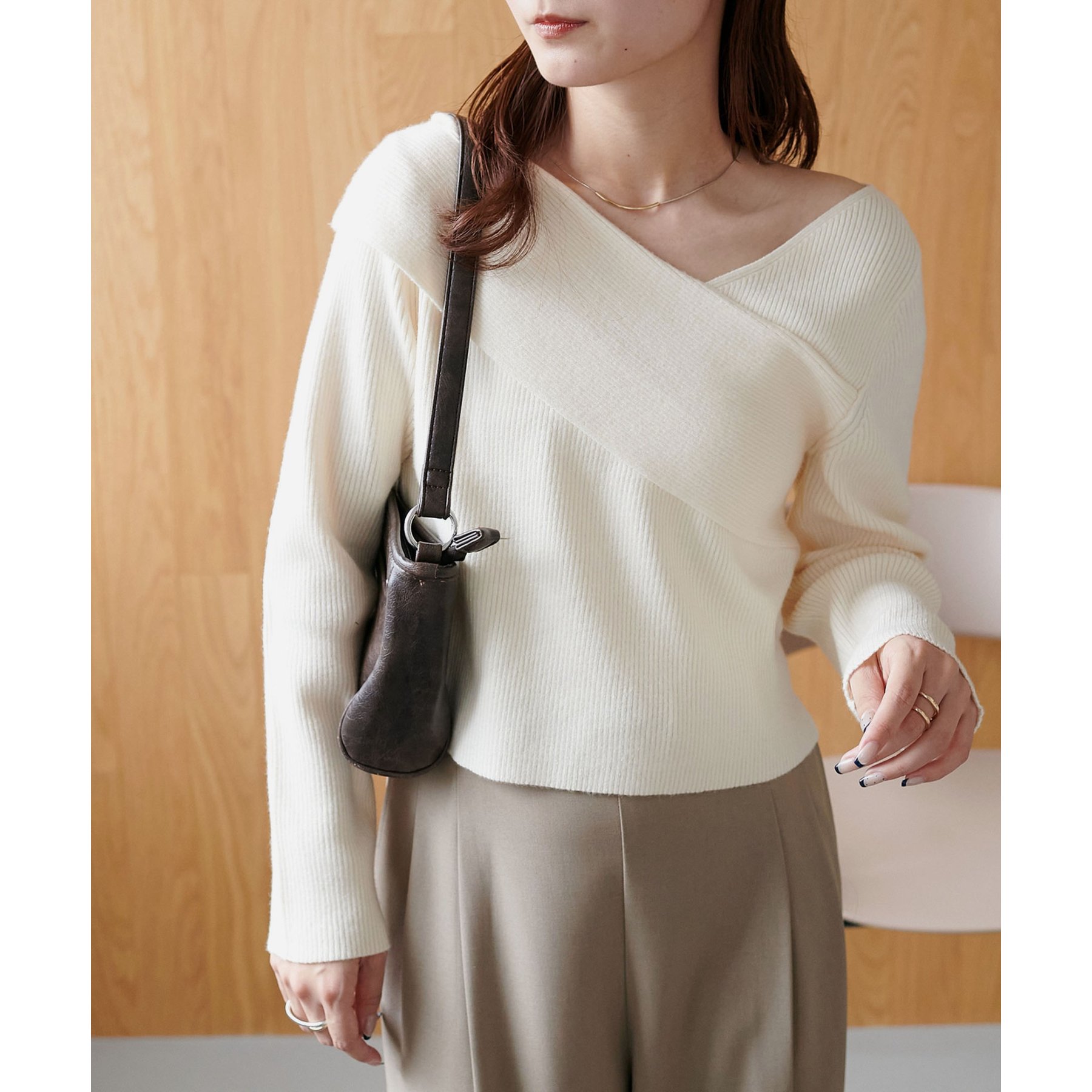 ・アシンメトリーな首元デザインでヘルシーな程よい肌見せ