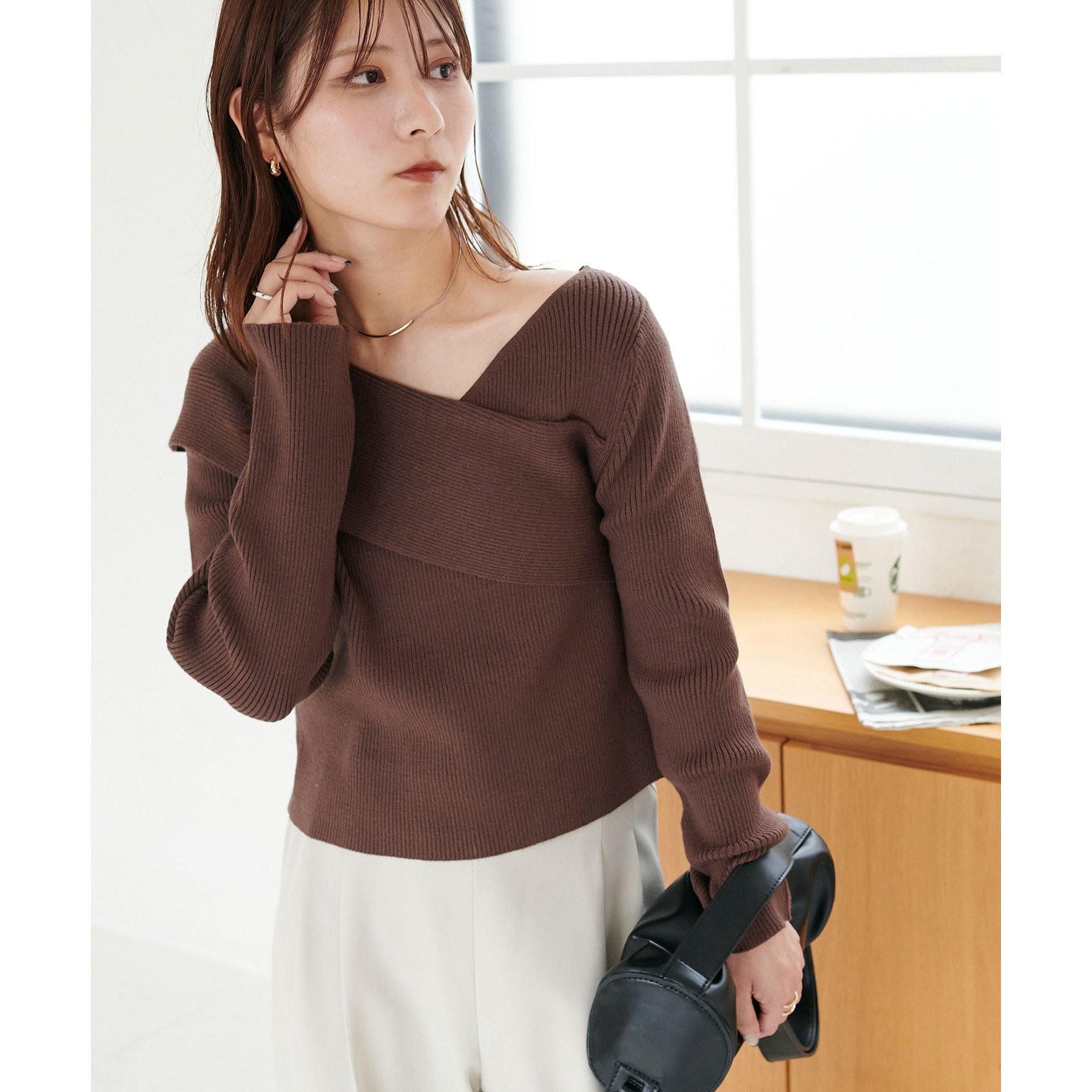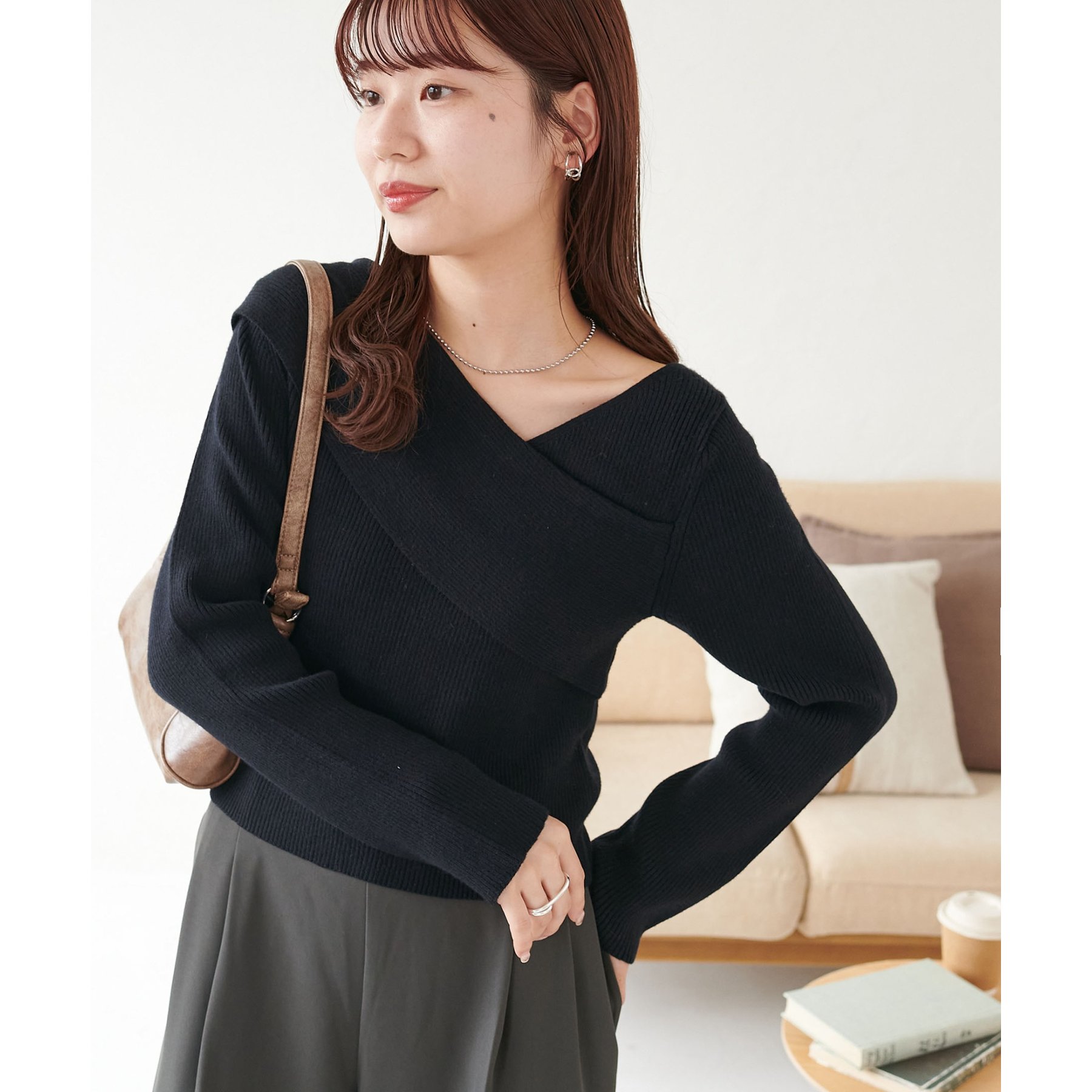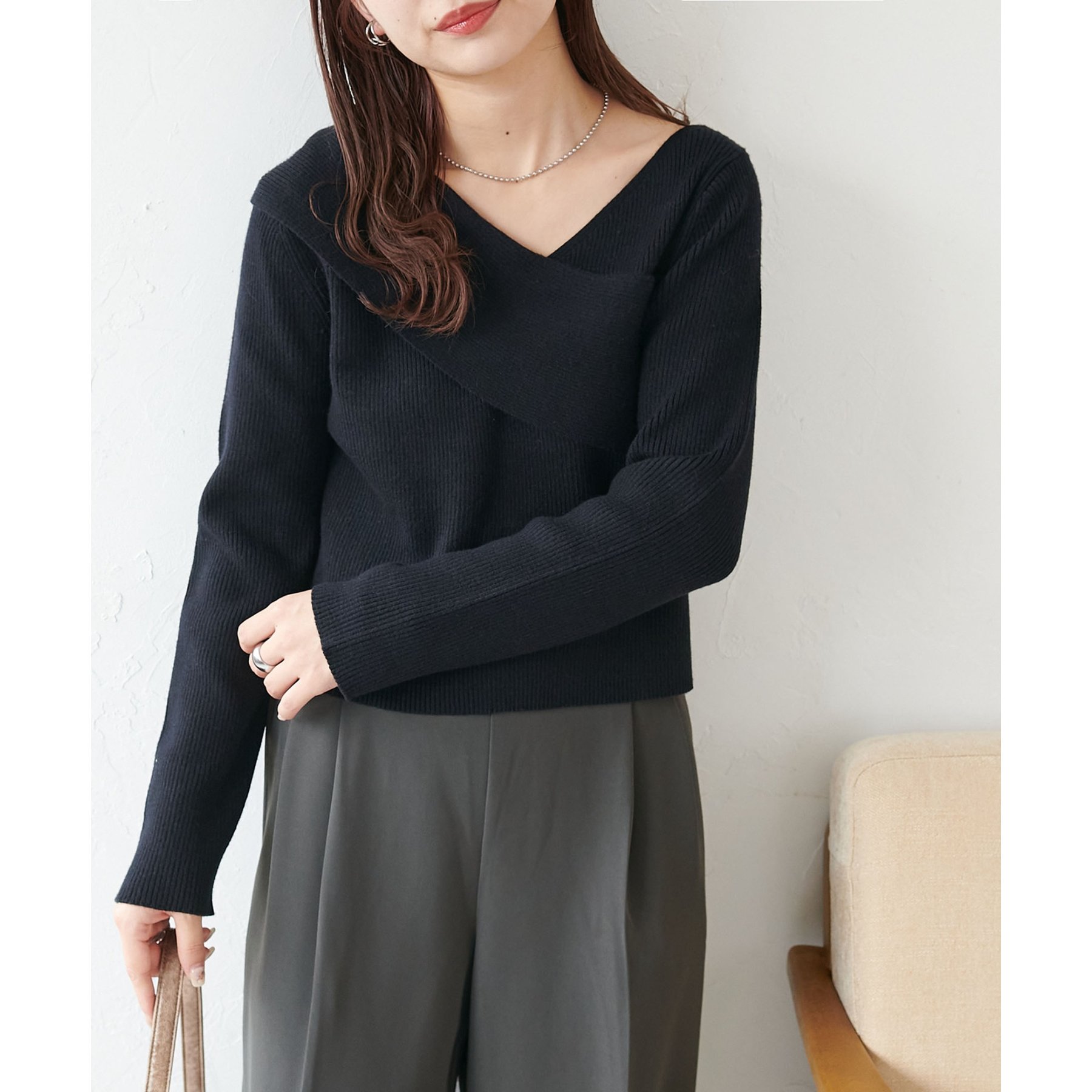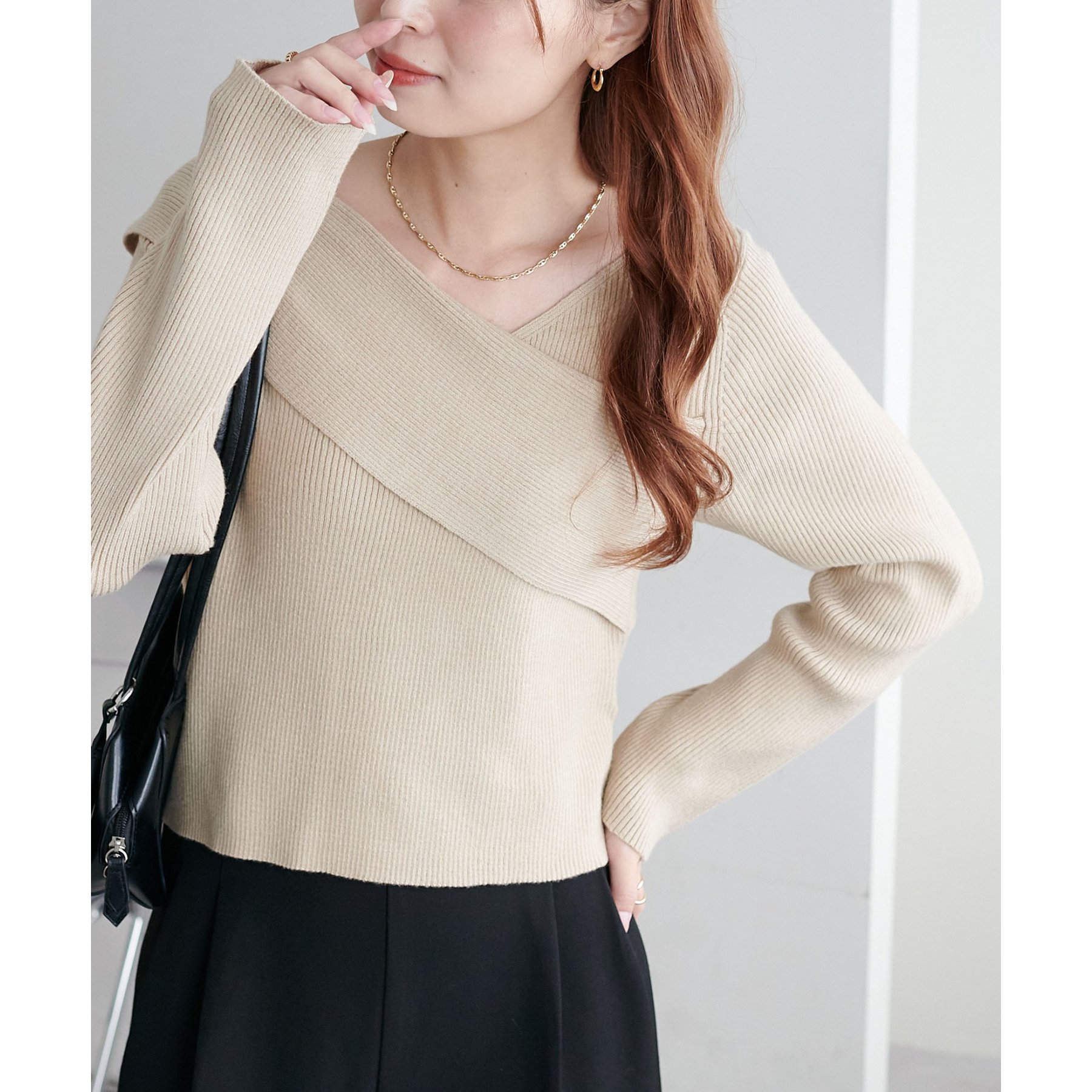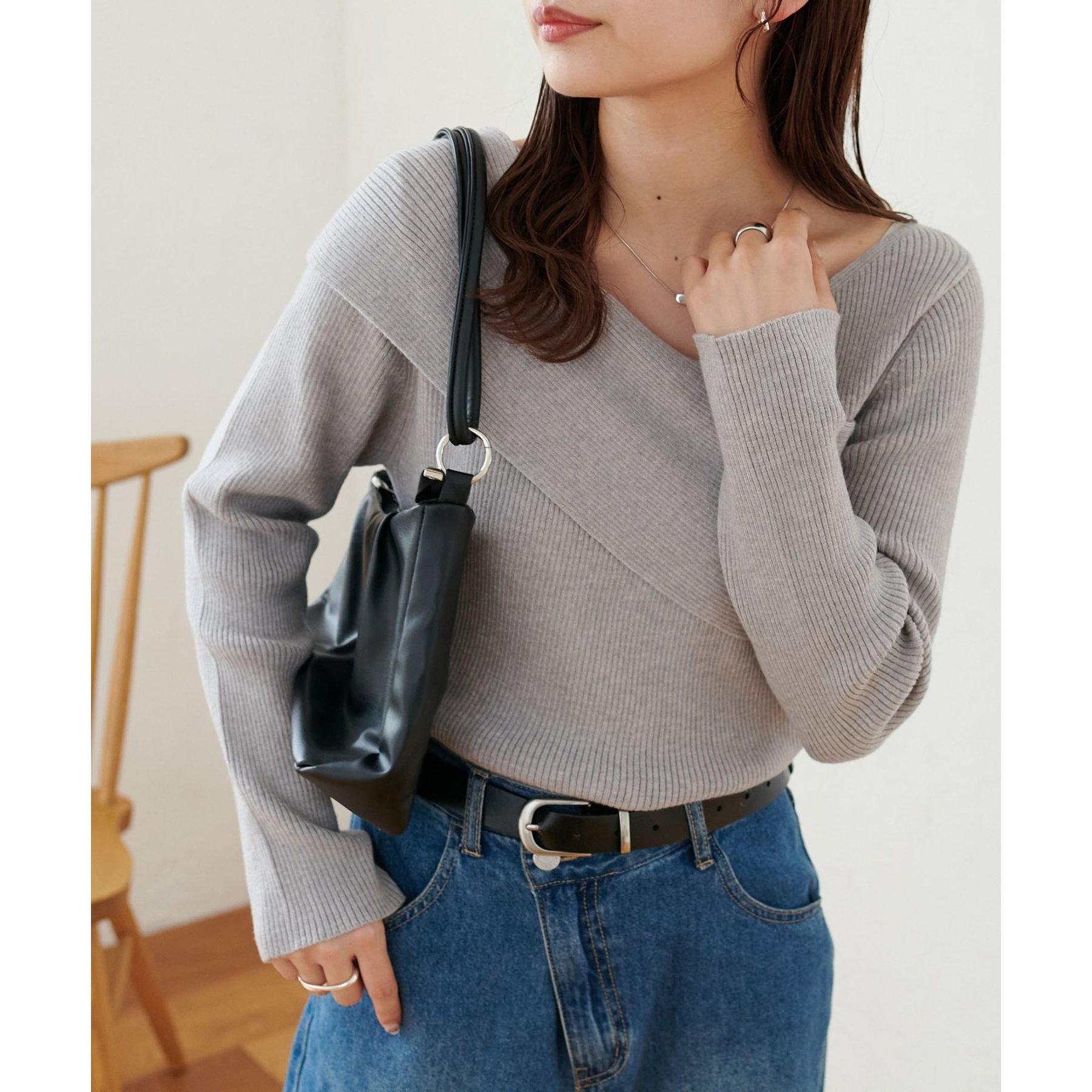 ・アシンメトリーな首元デザインでヘルシーな程よい肌見せ