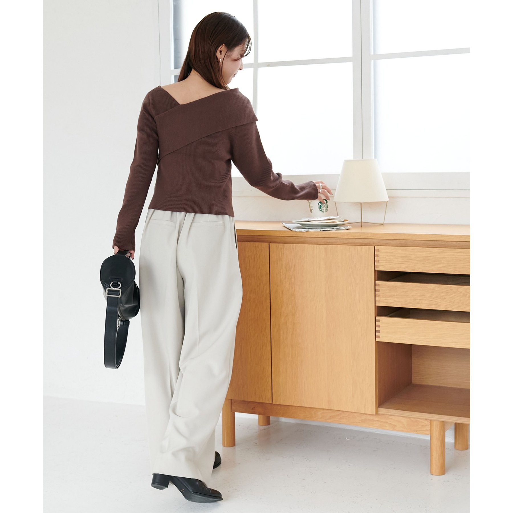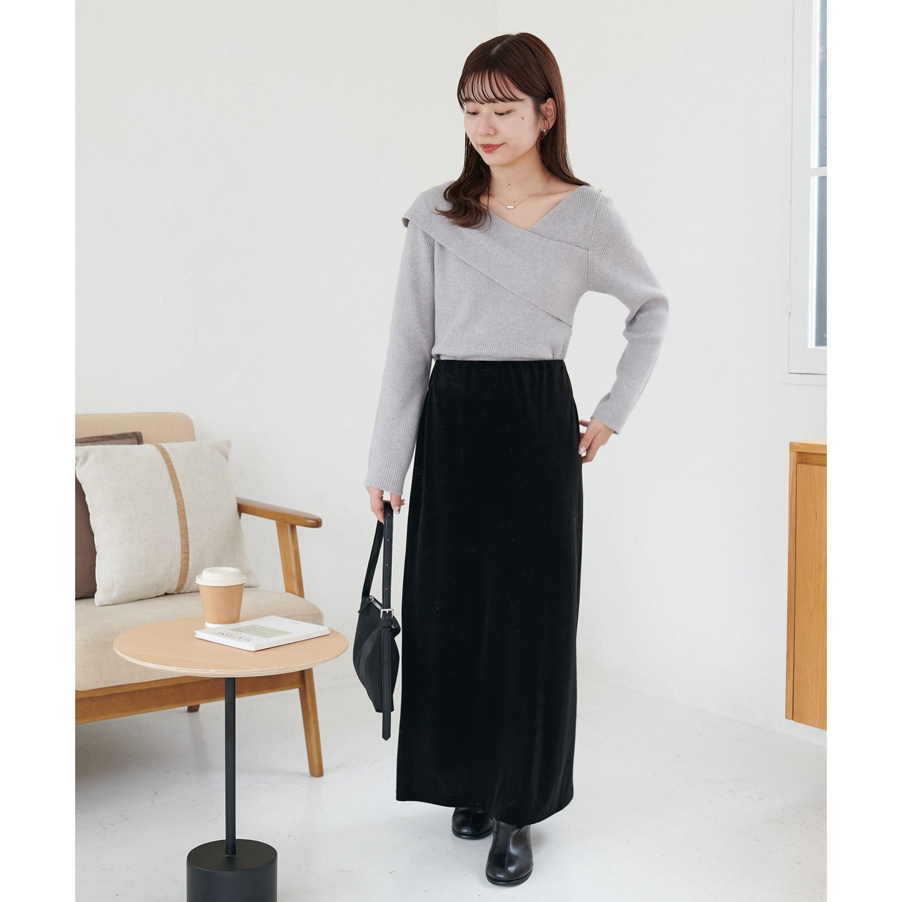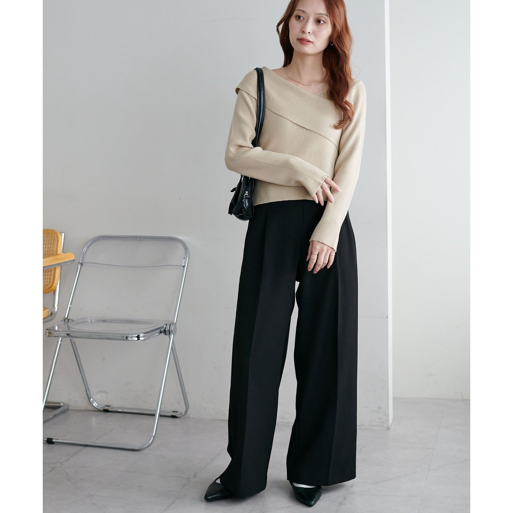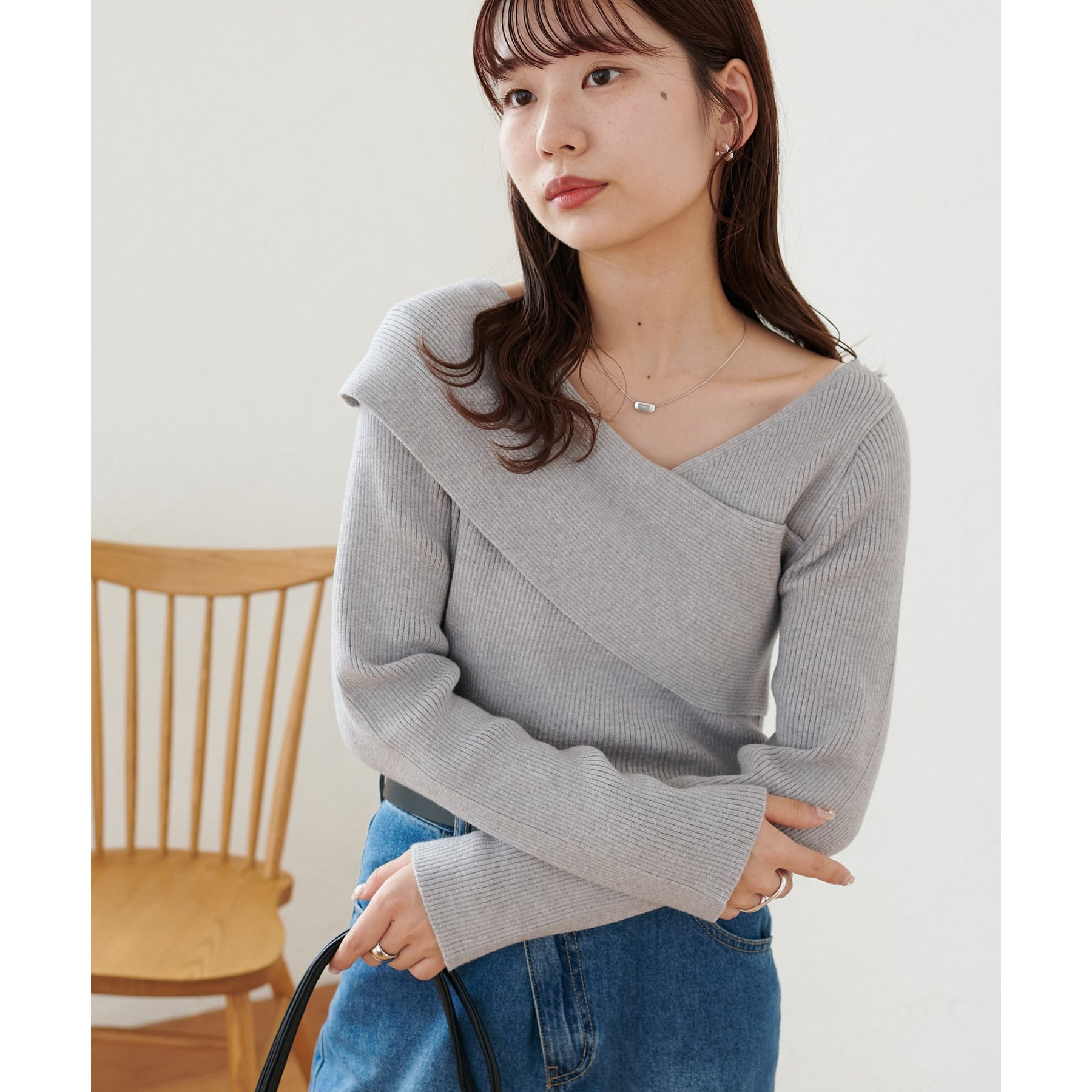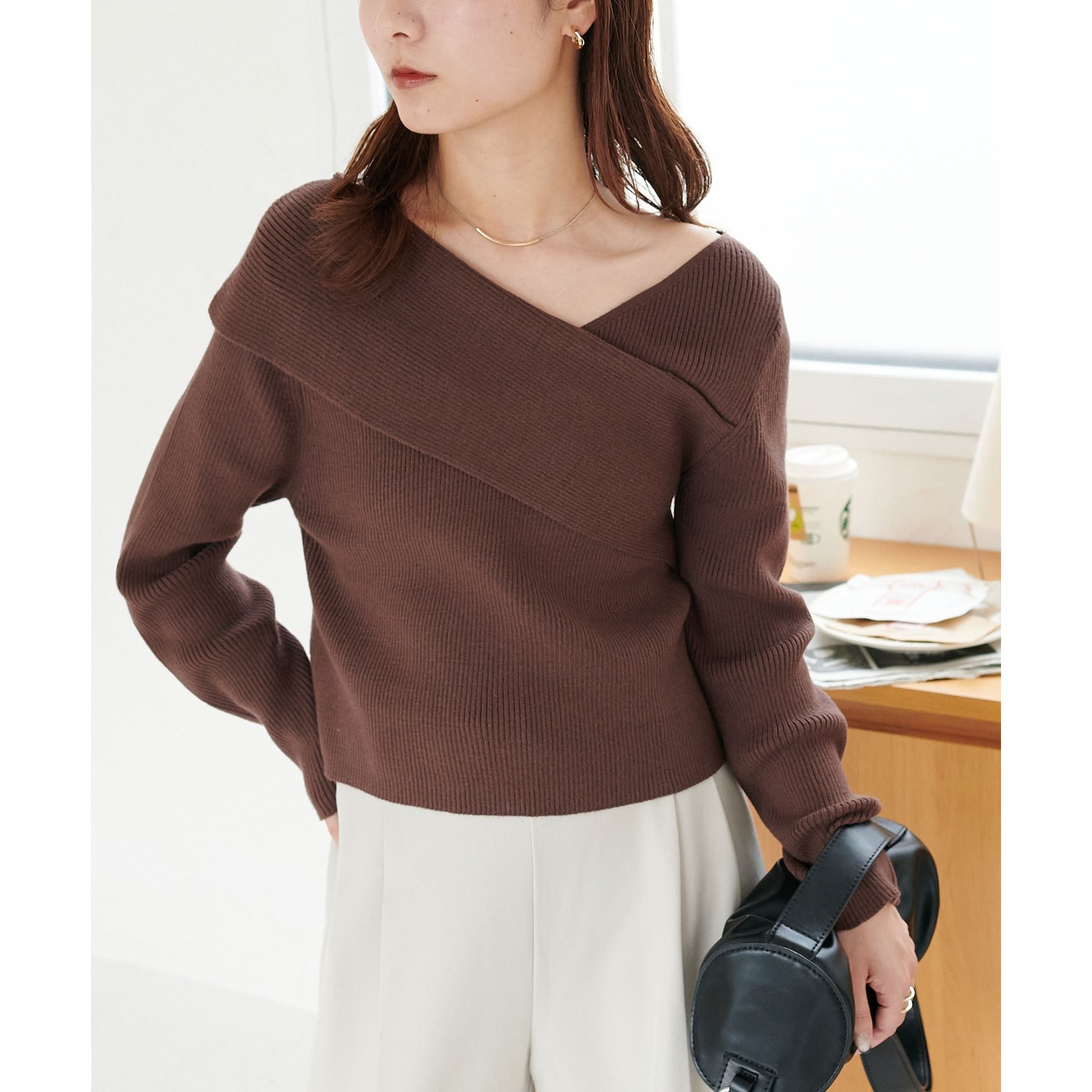 ・アシンメトリーな首元デザインでヘルシーな程よい肌見せ